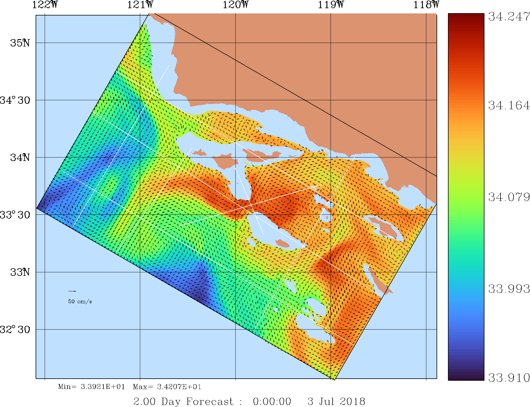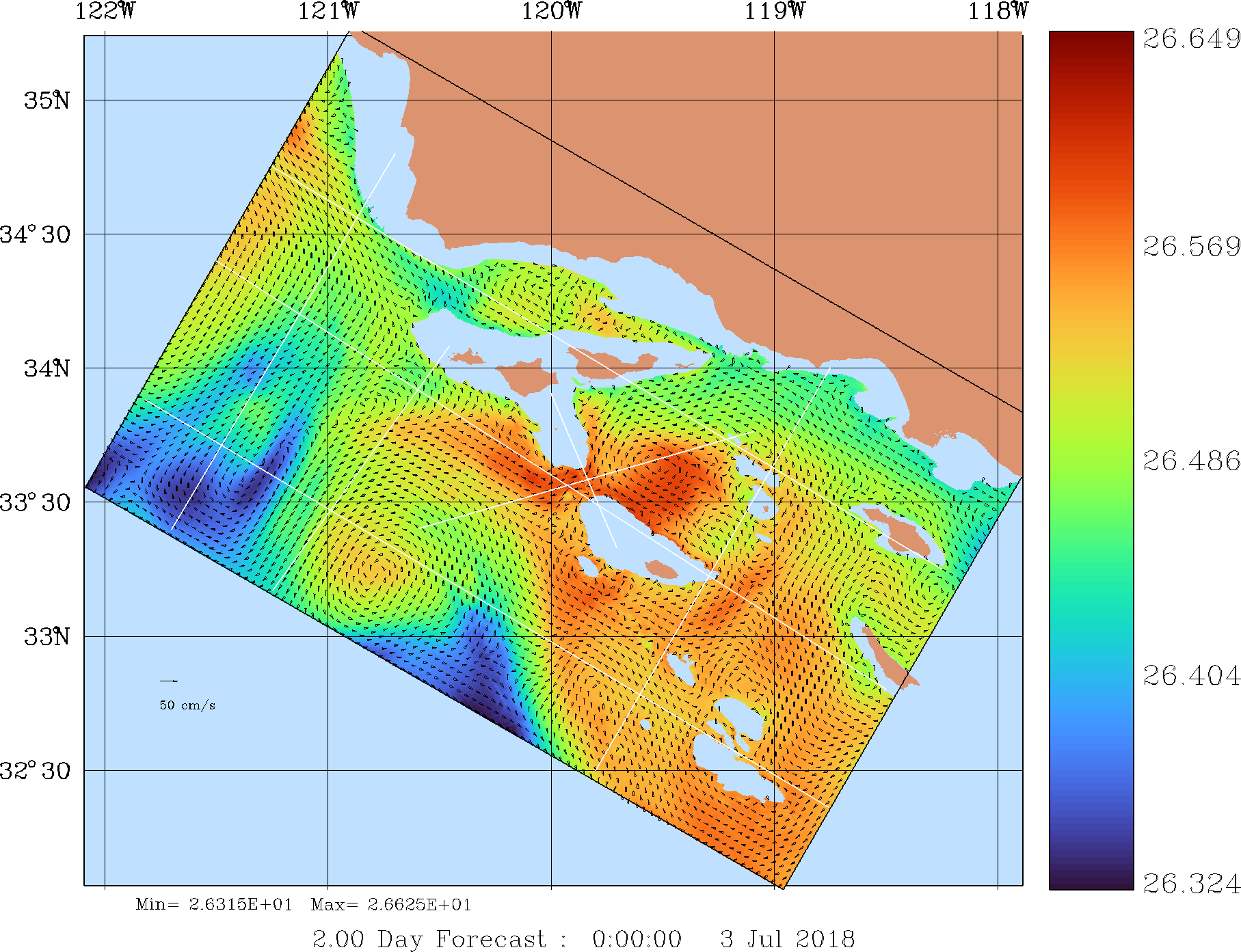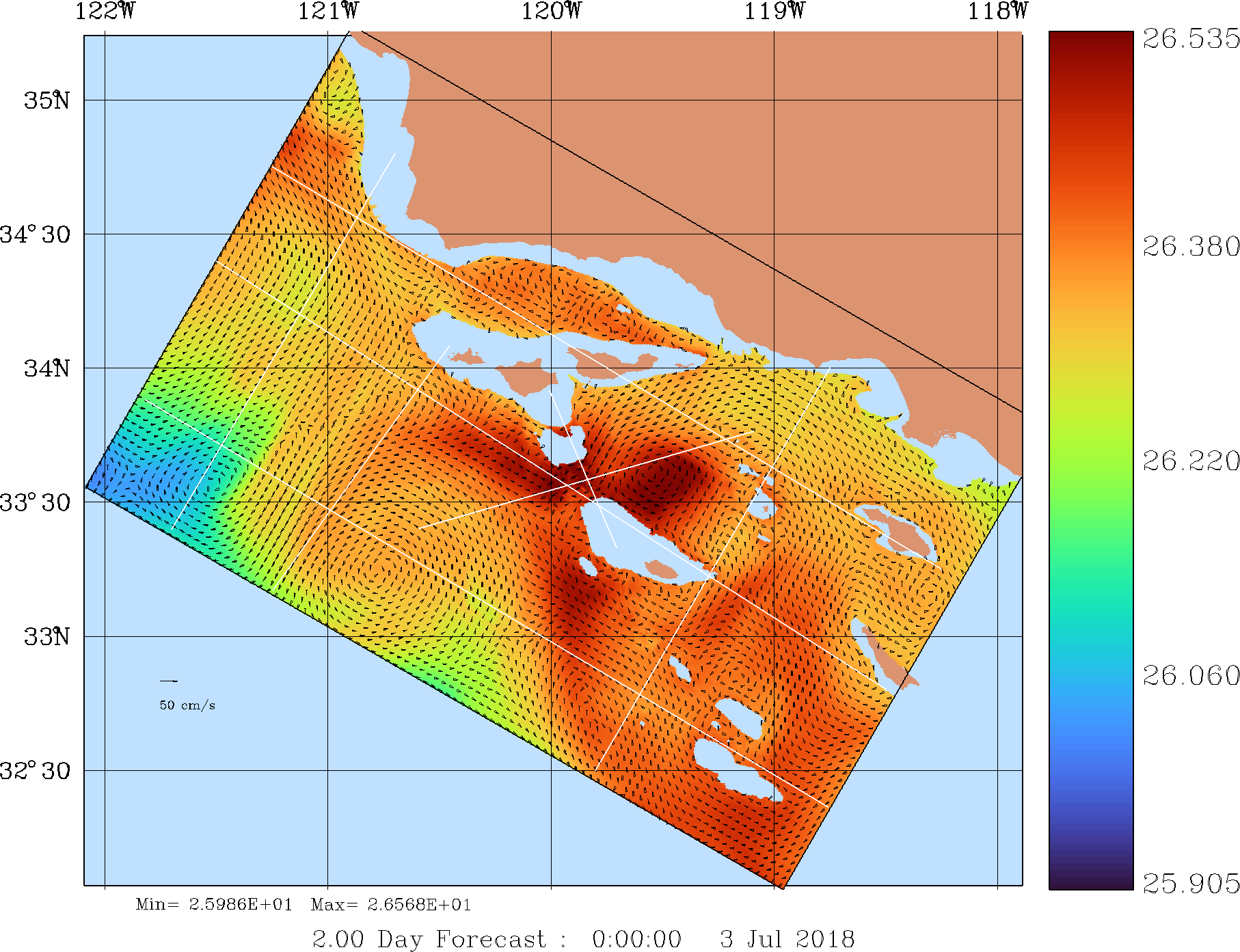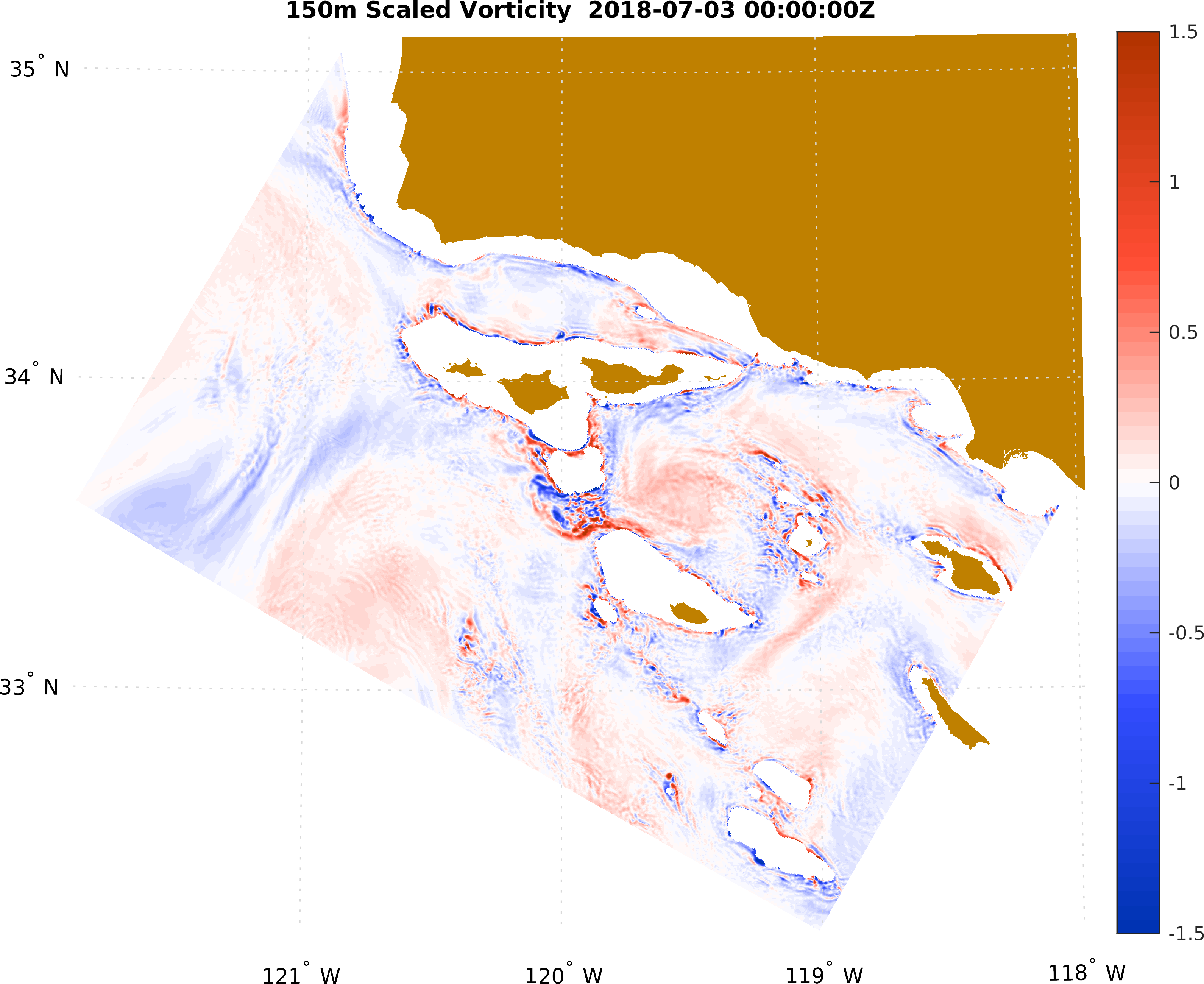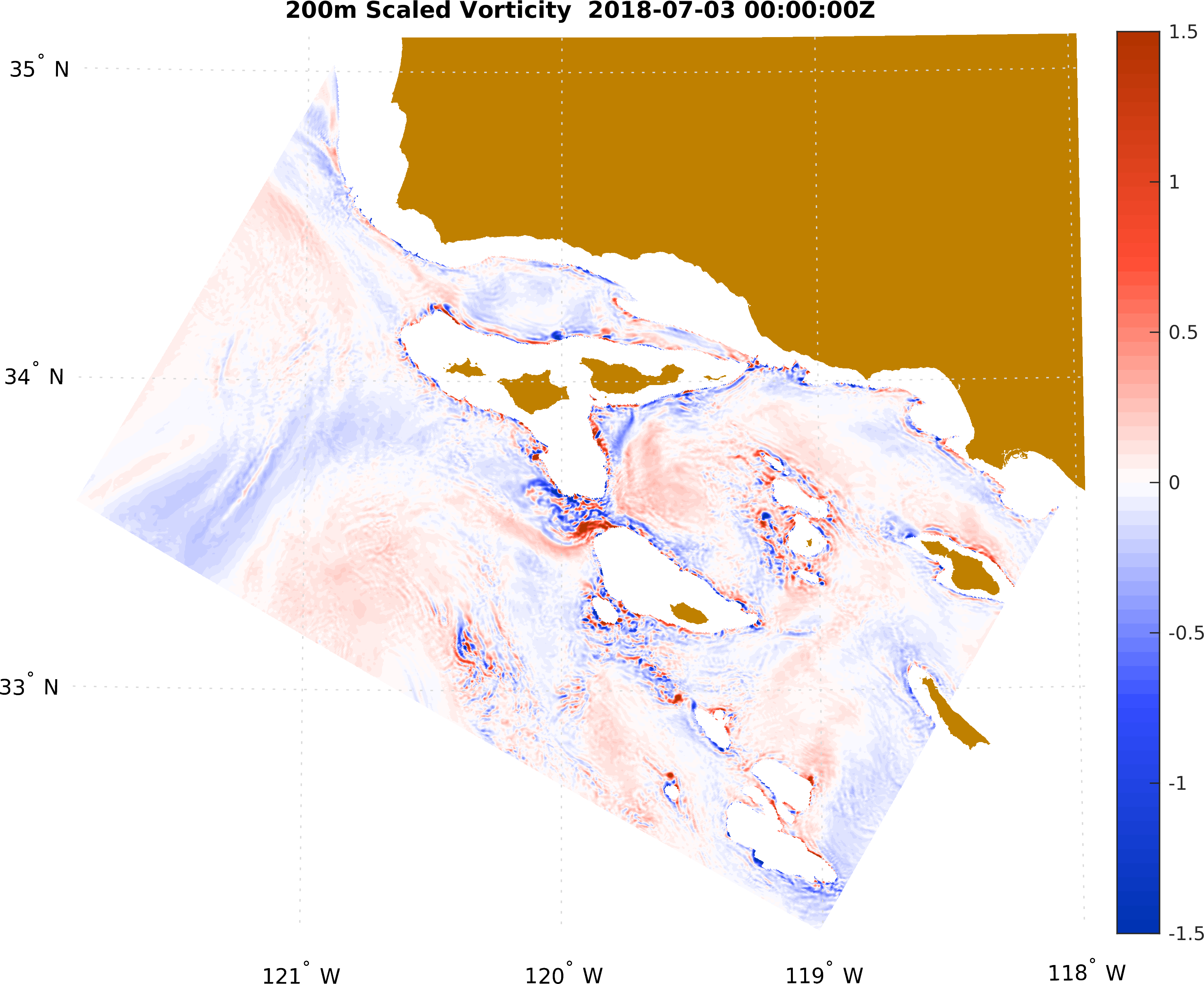 In the table, we provide animations of vorticity, temperature, salinity, and Sigma-T at 150m and 200m depth for this period. Click on any image for a movie.