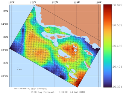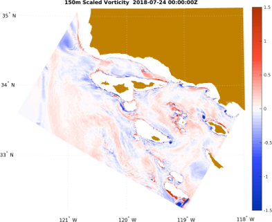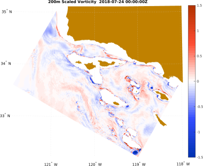 In the table, we provide animations of vorticity, temperature, salinity, and Sigma-T at 150m and 200m depth for this period. Click on any image for a movie.