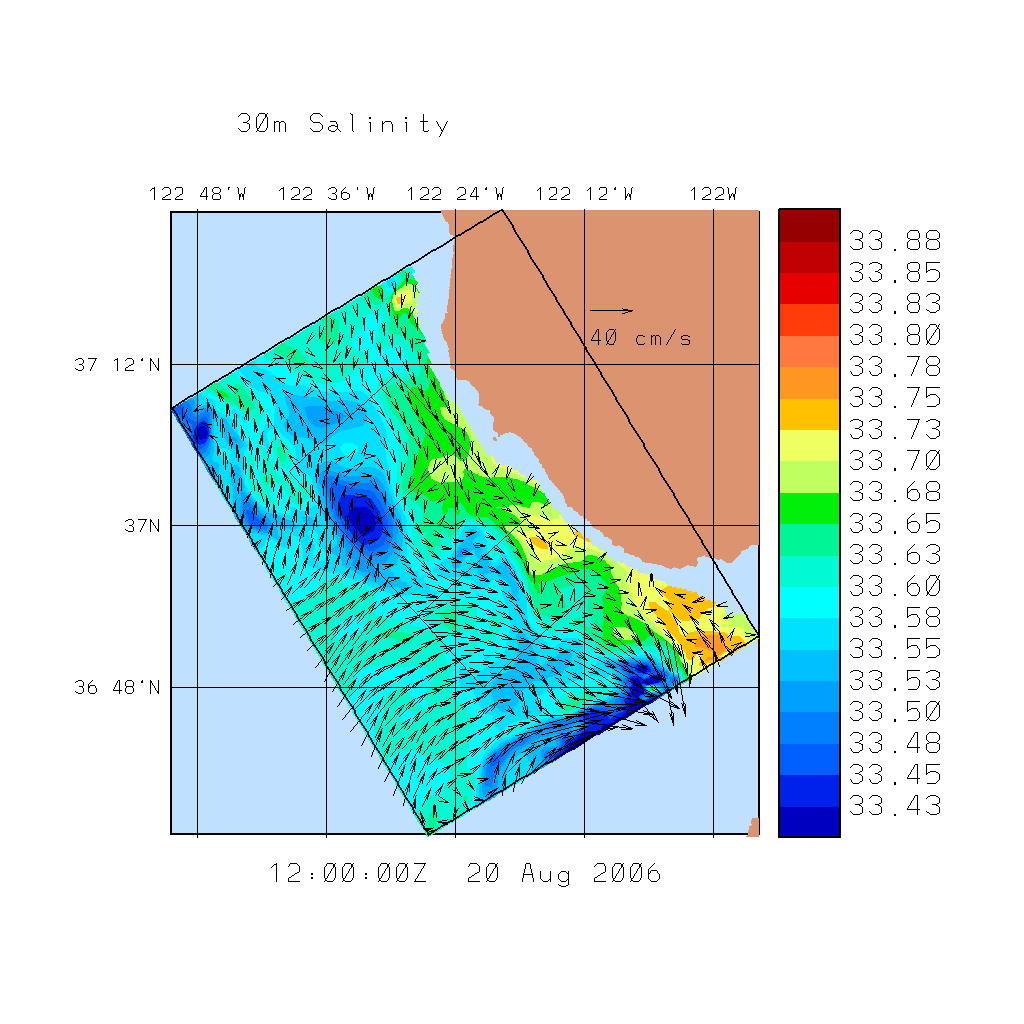 Salinity Fields with Velocity Vectors