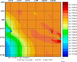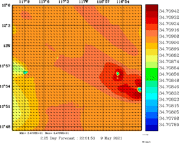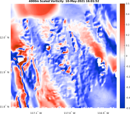 Plume (16Z release) Plume (22Z release) Velocity Temperature Salinity Vorticity