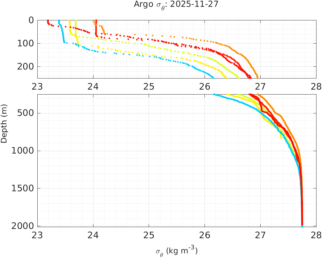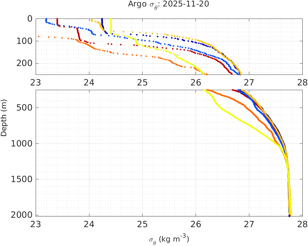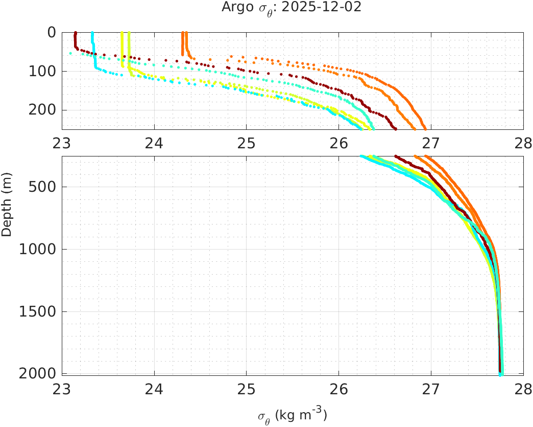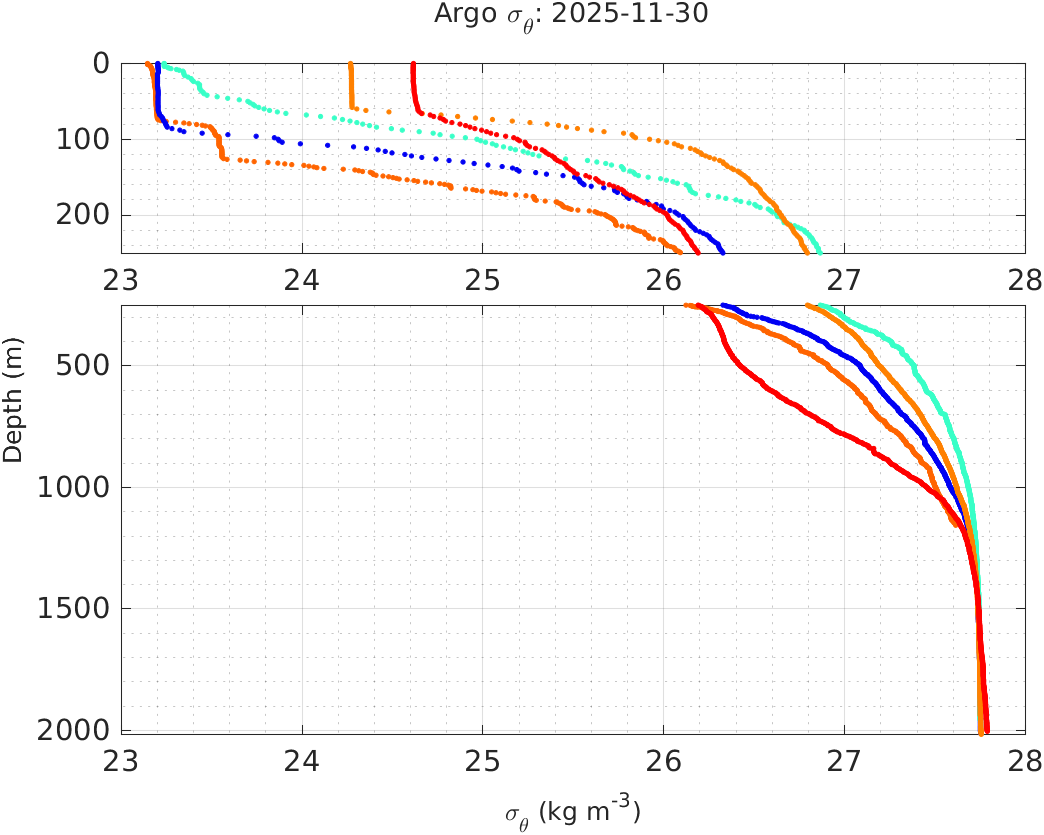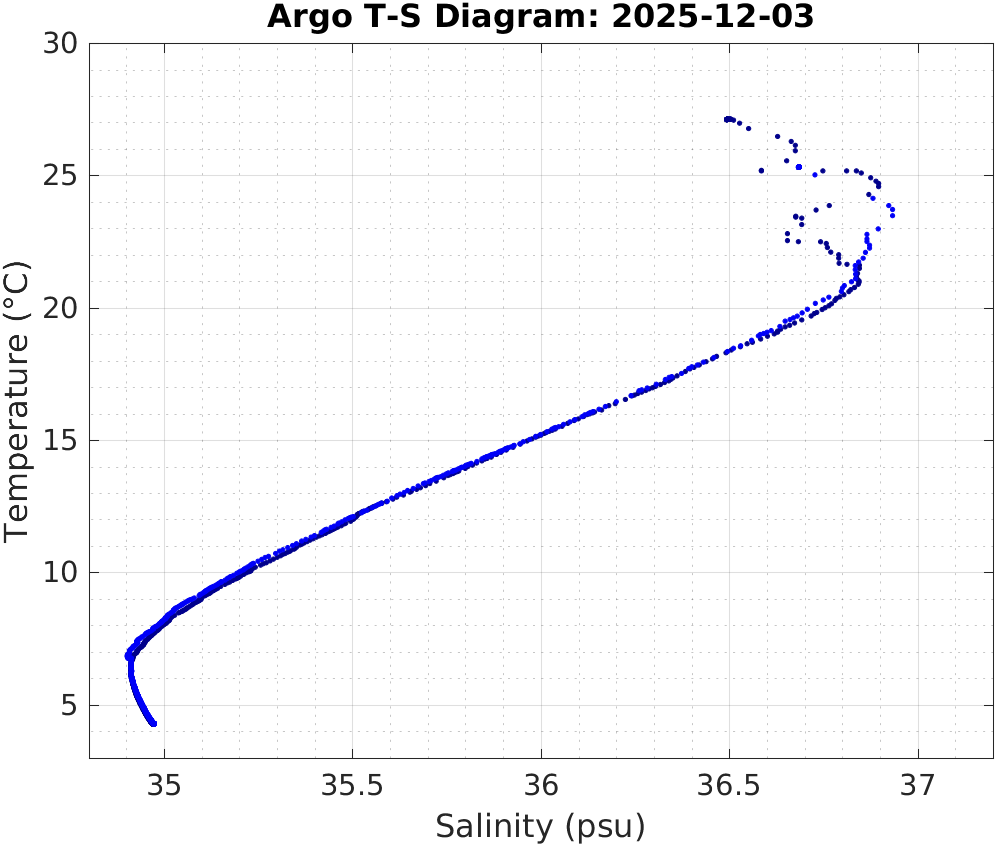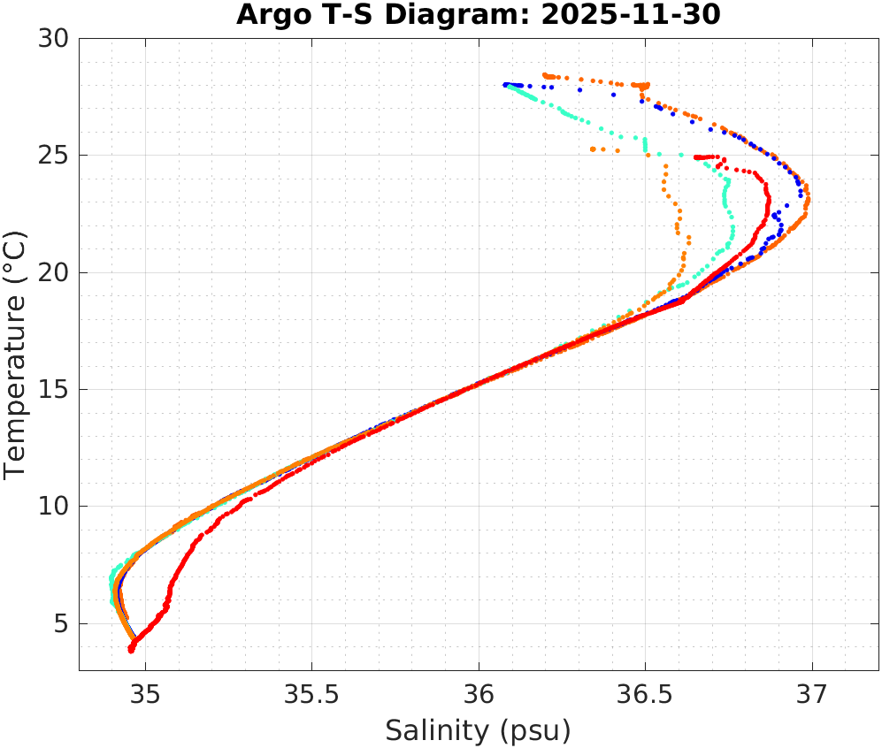 | Date | Location with Time | σθ vs. Depth | Temperature vs. Depth | Salinity vs. Depth | Temperature vs. Salinity |