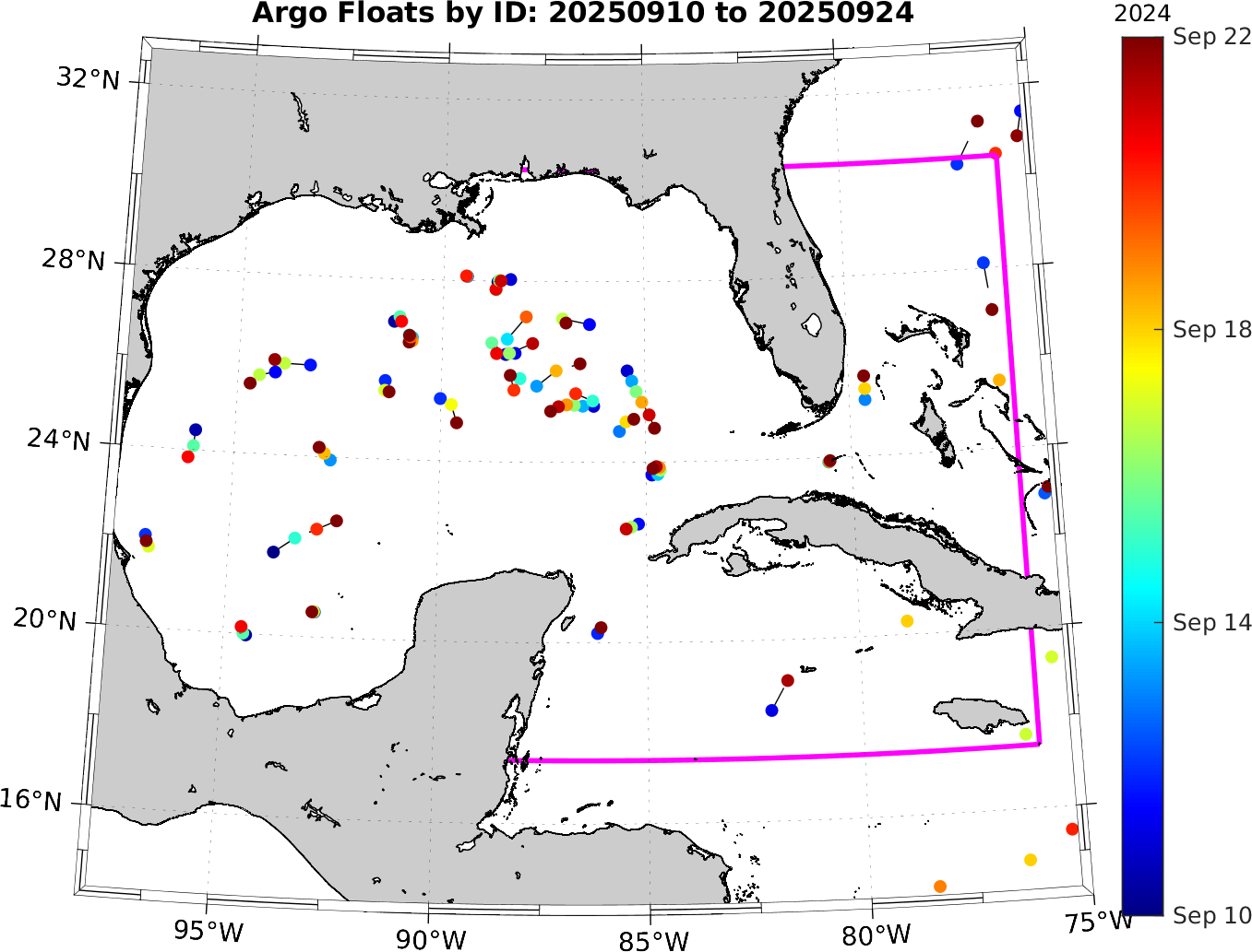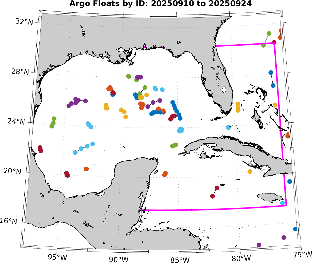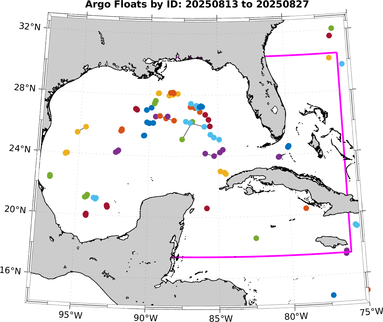 This page can be used to infer the motion of the floats during this time period, which will be helpful to those groups that will be deploying gliders and floats.