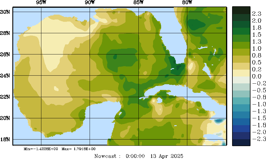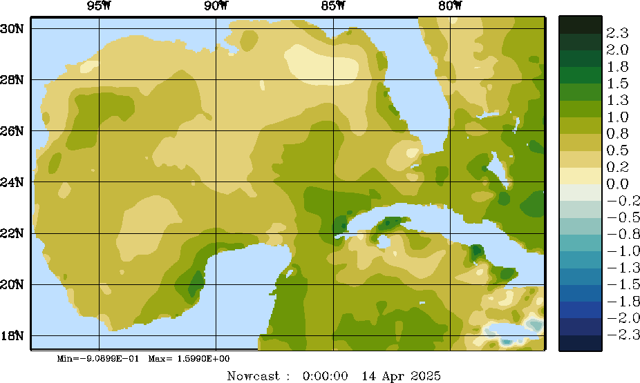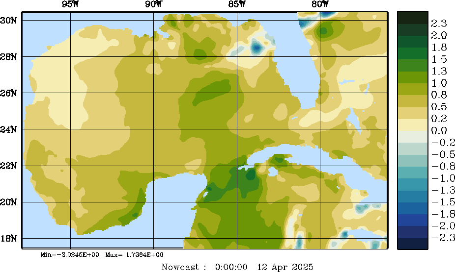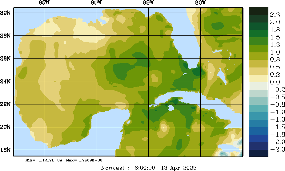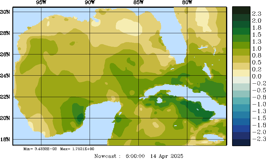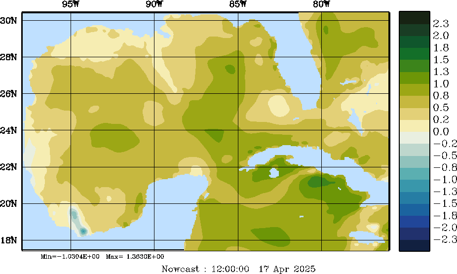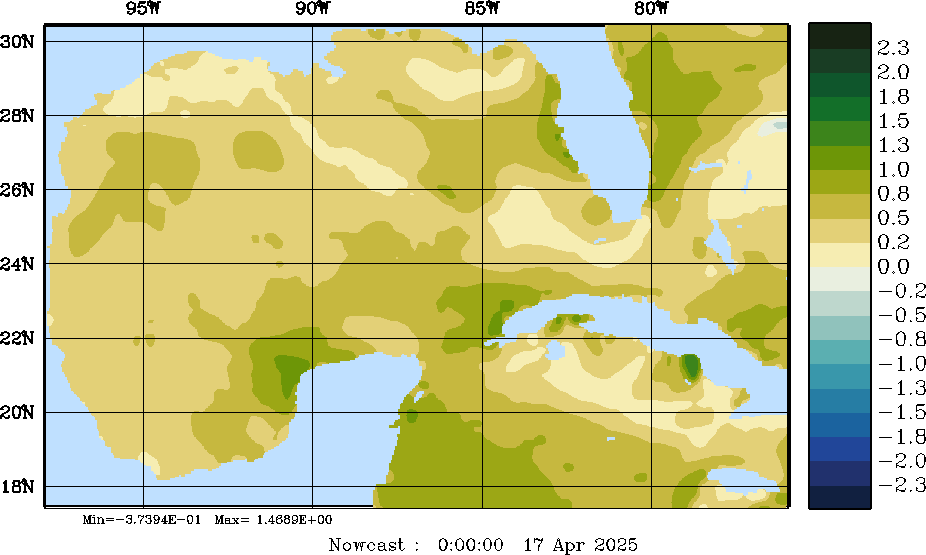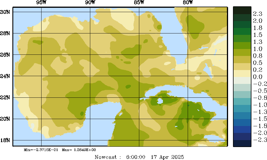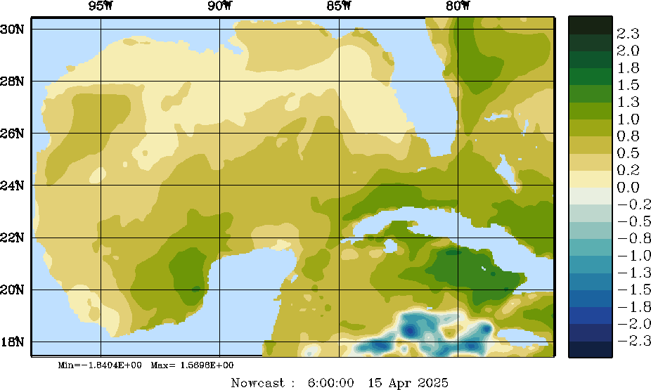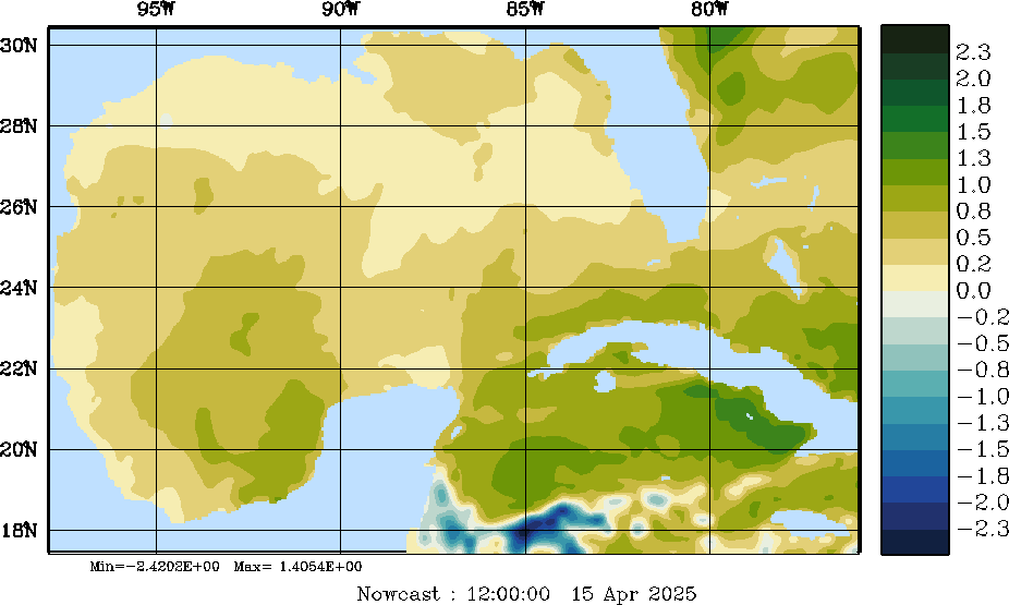 E - P Snapshots (cm/day); processed by MSEAS from merged NCEP fields |