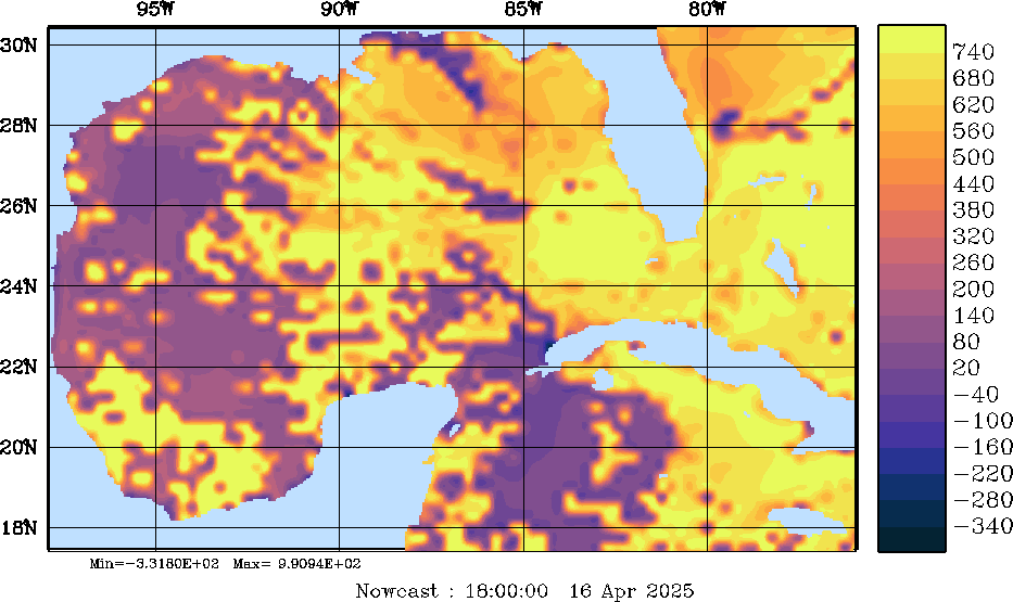 SW Radiation Snapshots (W/m2); processed by MSEAS from merged NCEP fields |