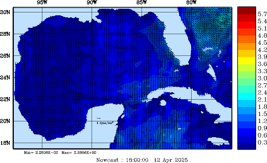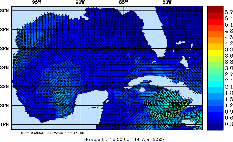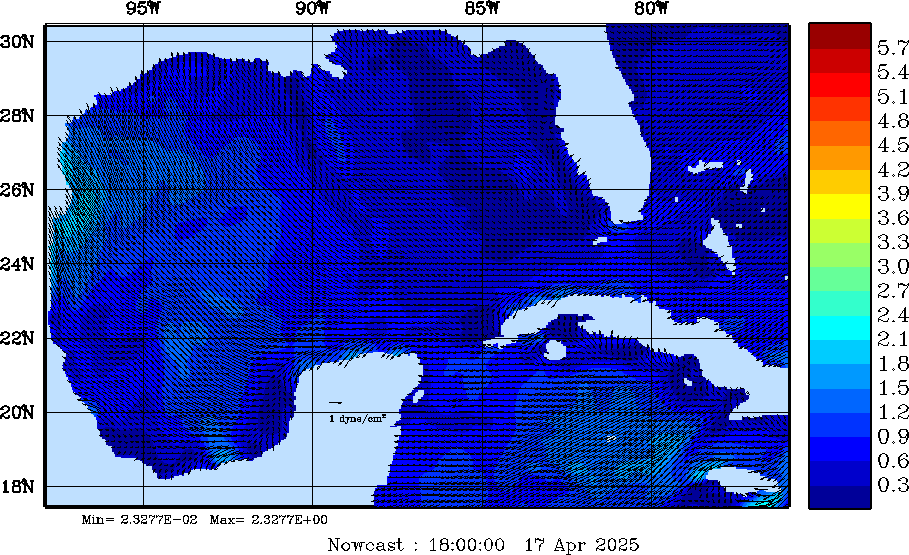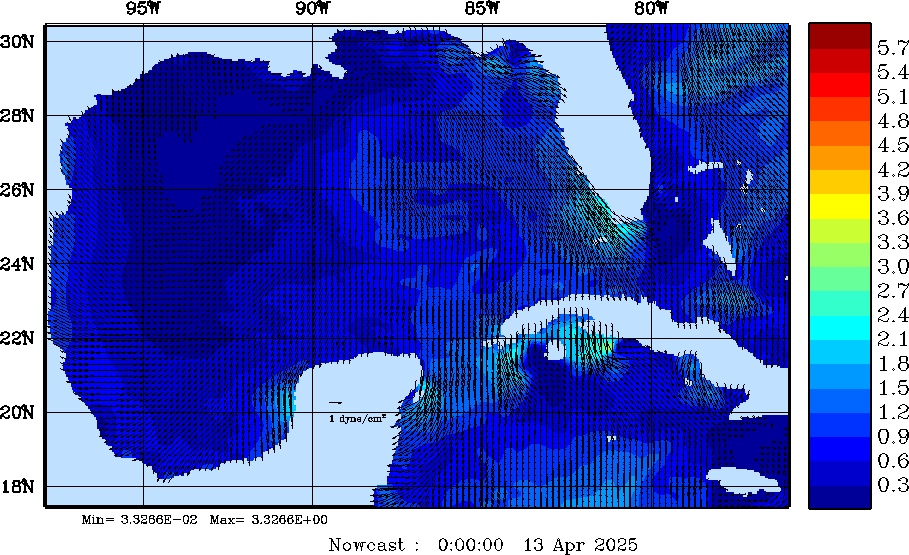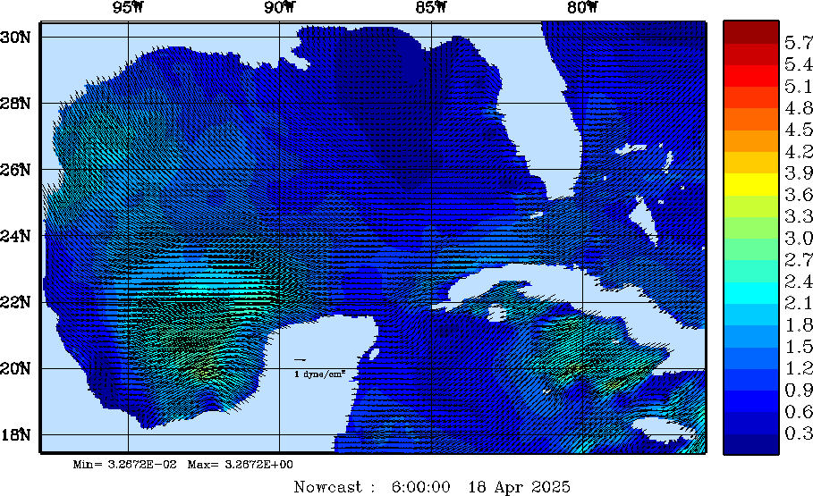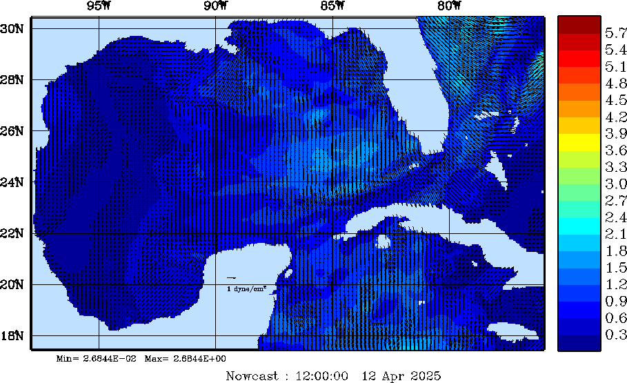 Wind Stress Snapshots (dynes/cm2); processed by MSEAS from merged NCEP fields |
