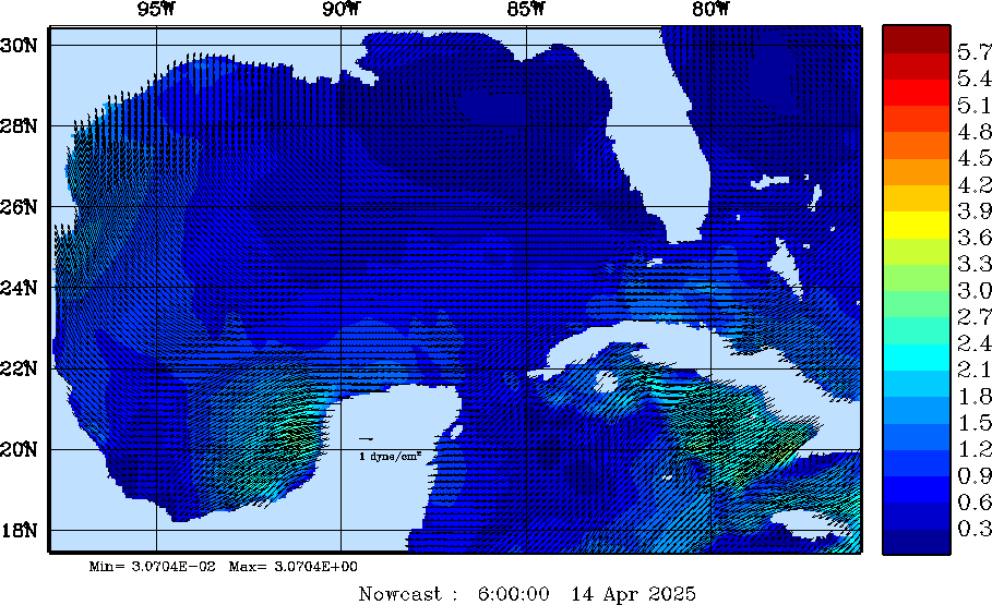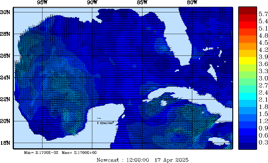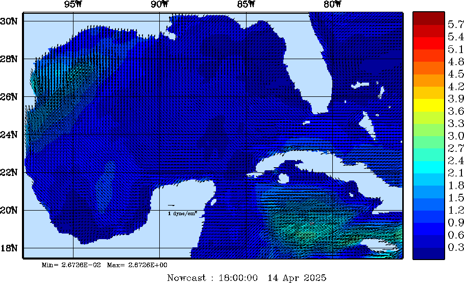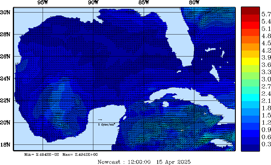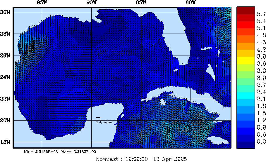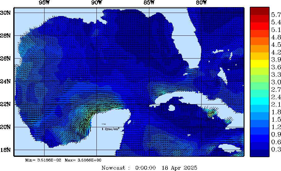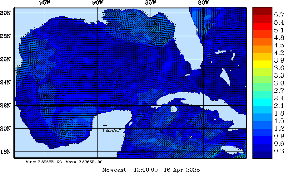 Wind Stress Snapshots (dynes/cm2); processed by MSEAS from merged NCEP fields |