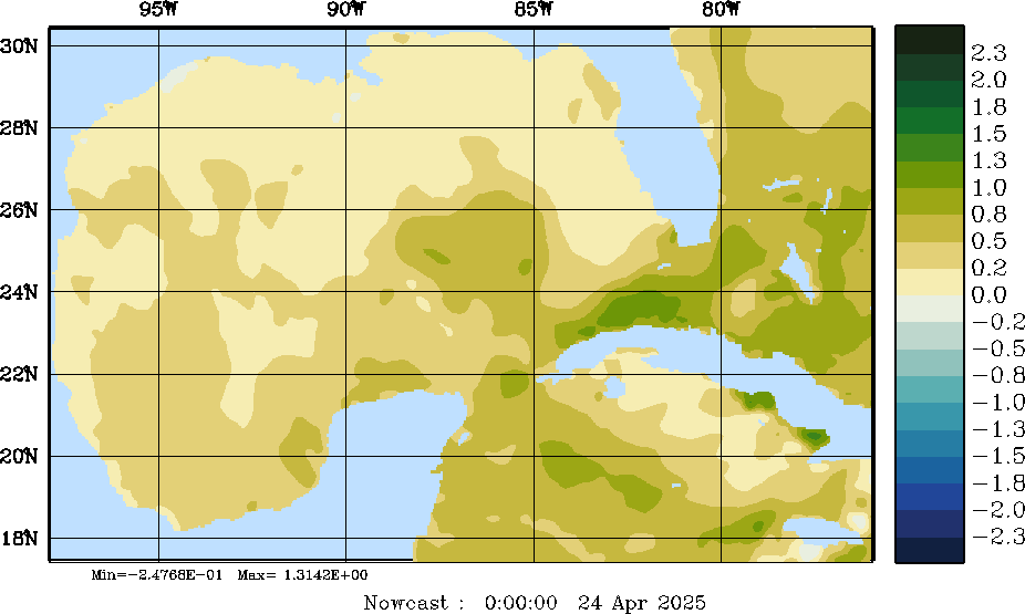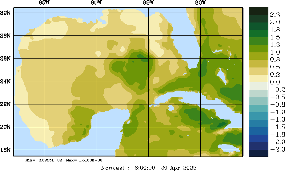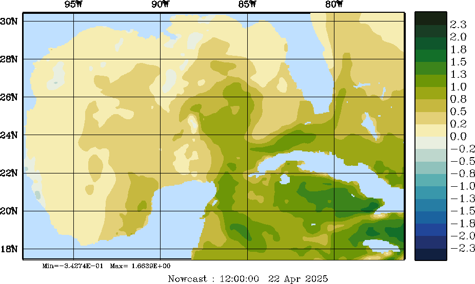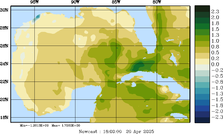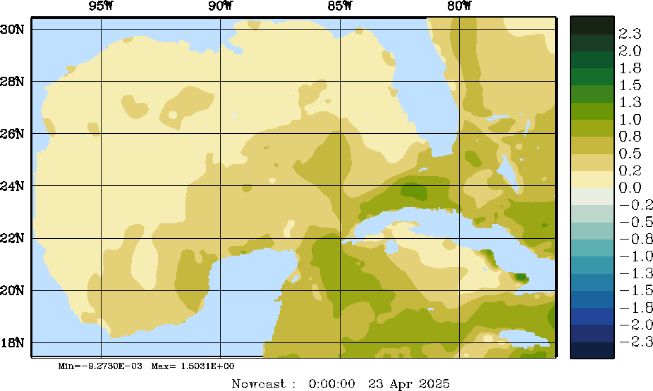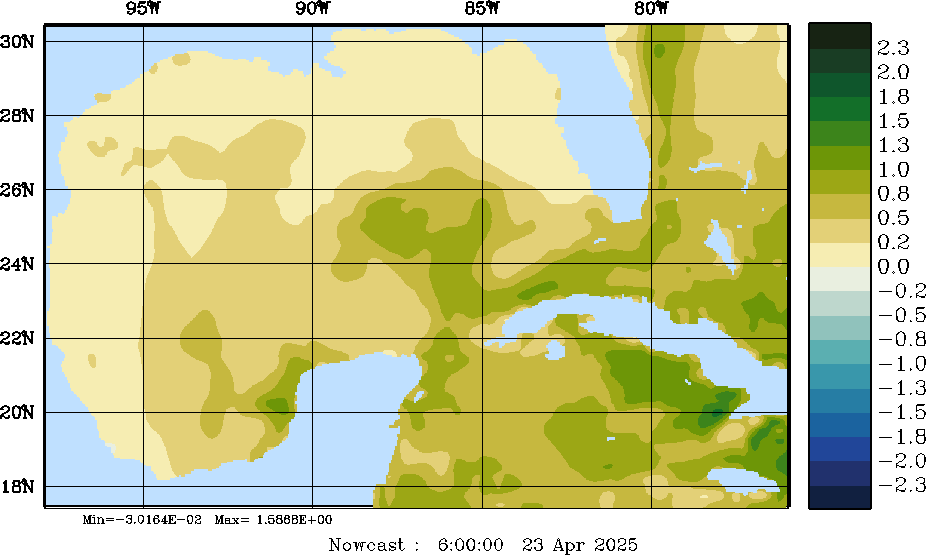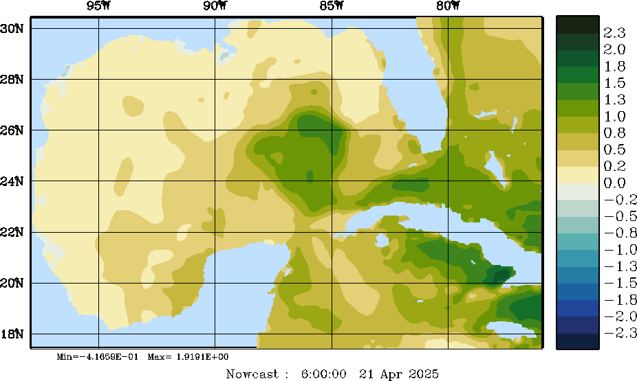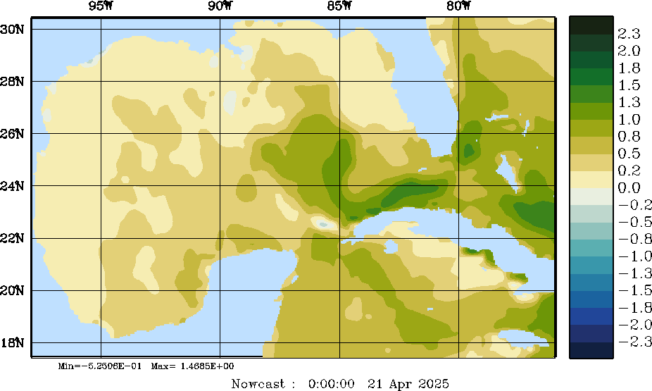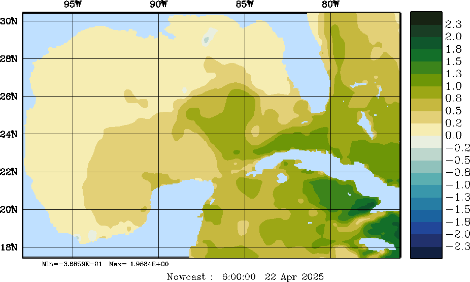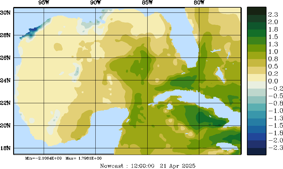 | E - P Snapshots (cm/day); processed by MSEAS from merged NCEP fields |