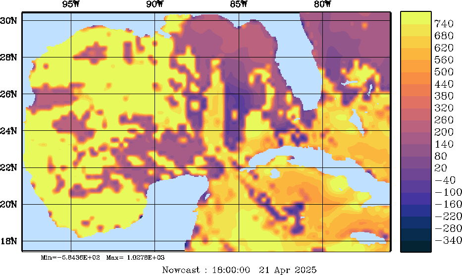 | SW Radiation Snapshots (W/m2); processed by MSEAS from merged NCEP fields |