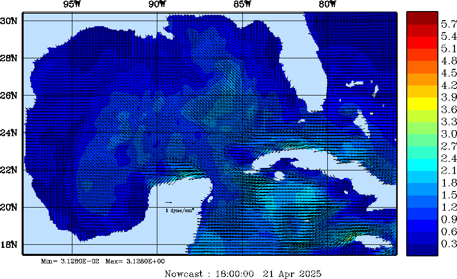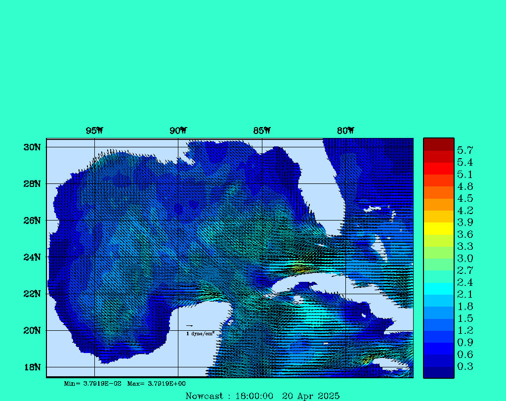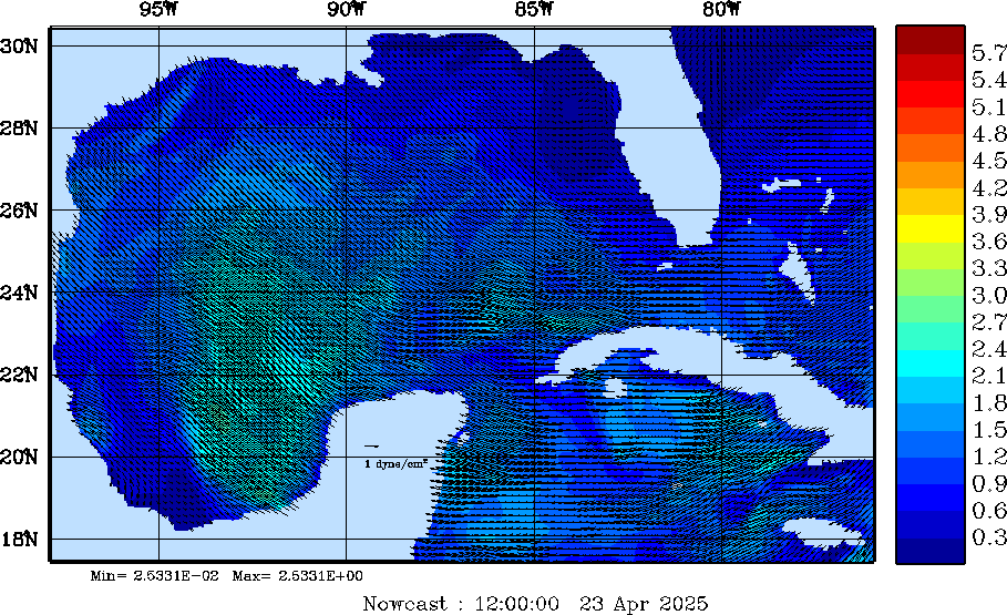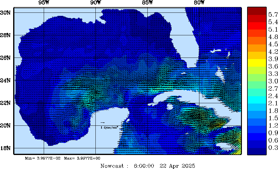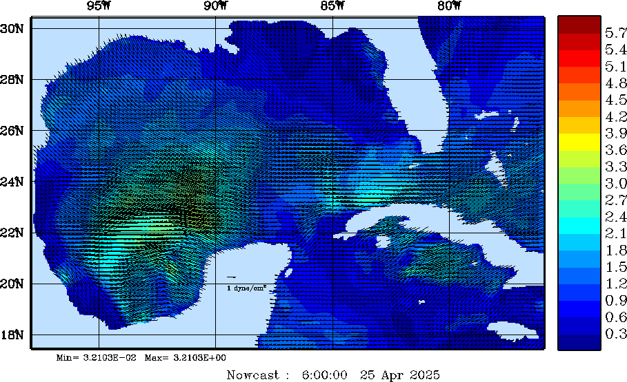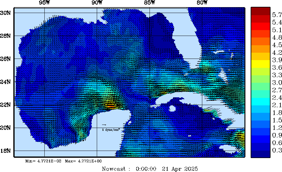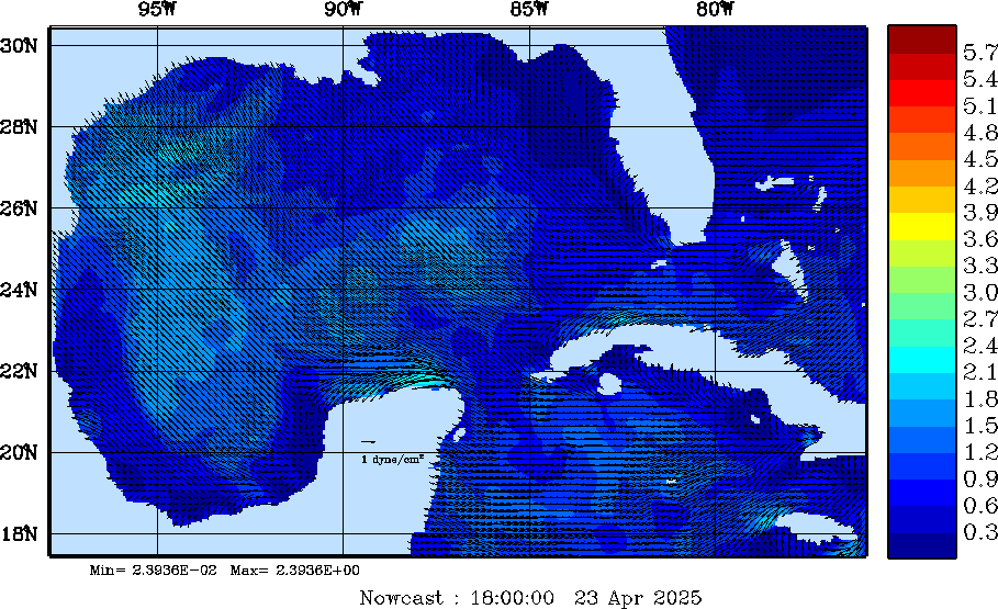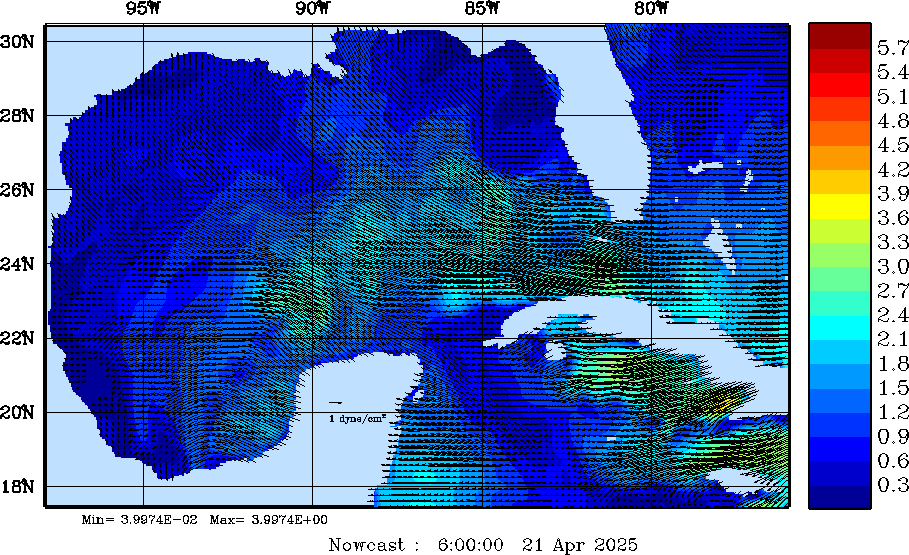 | Wind Stress Snapshots (dynes/cm2); processed by MSEAS from merged NCEP fields |