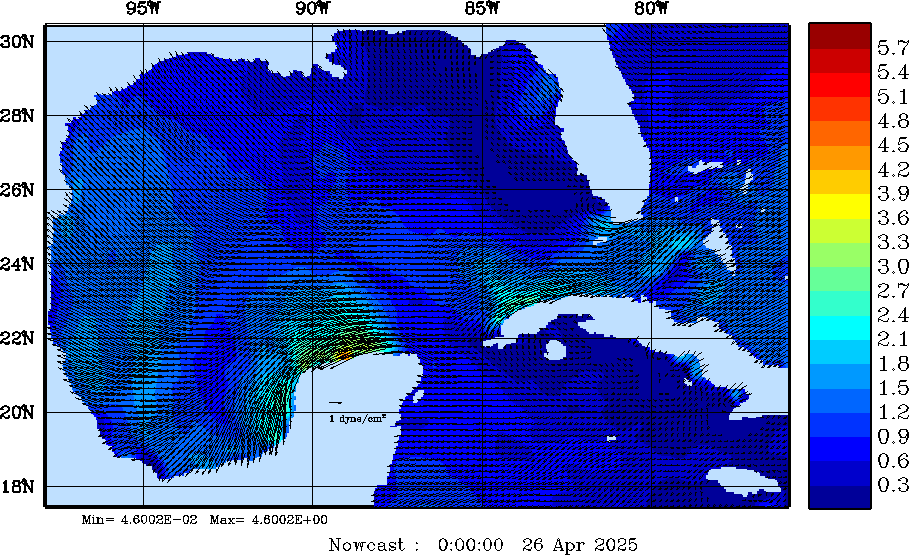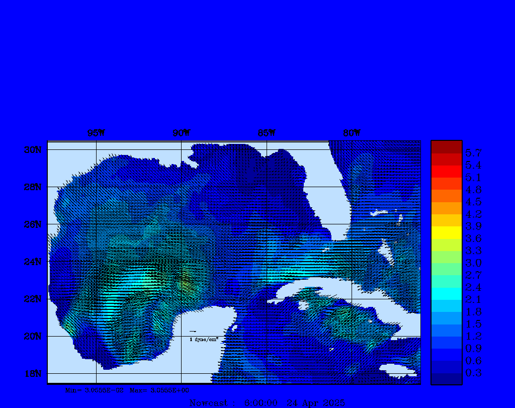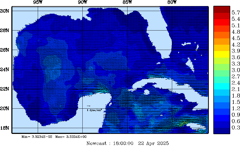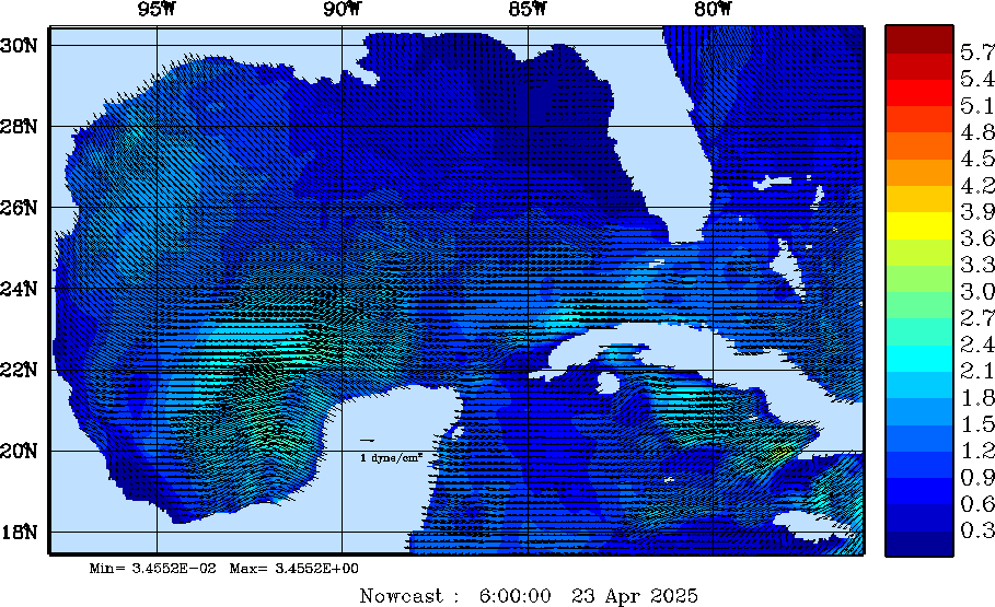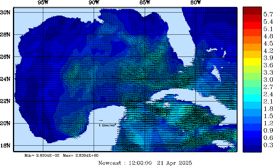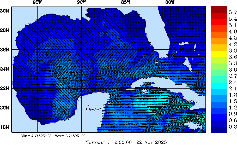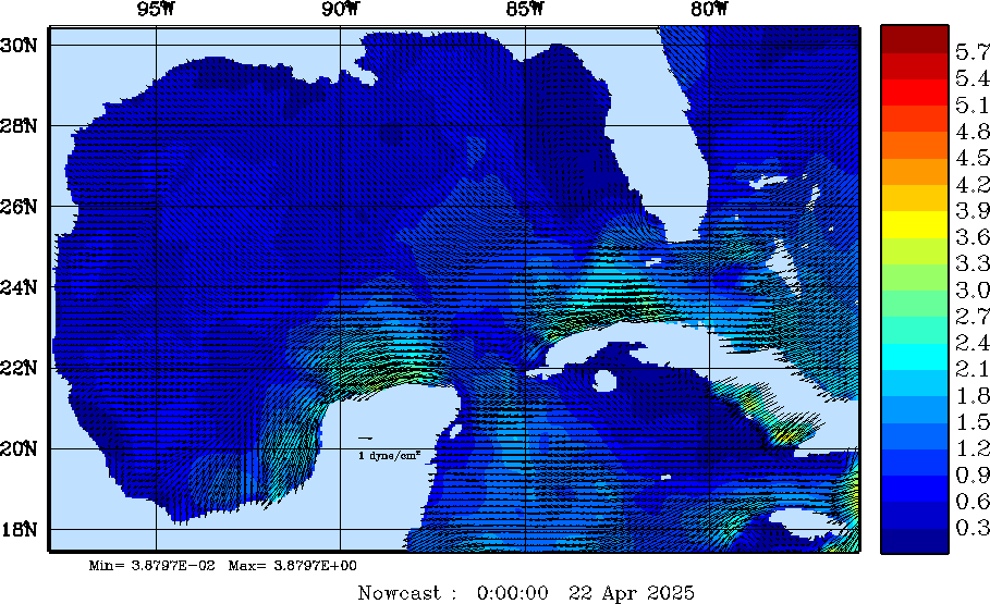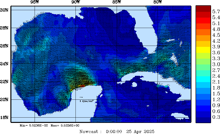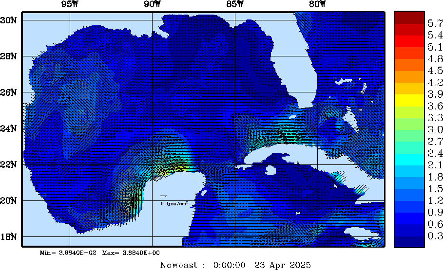 | Wind Stress Snapshots (dynes/cm2); processed by MSEAS from merged NCEP fields |