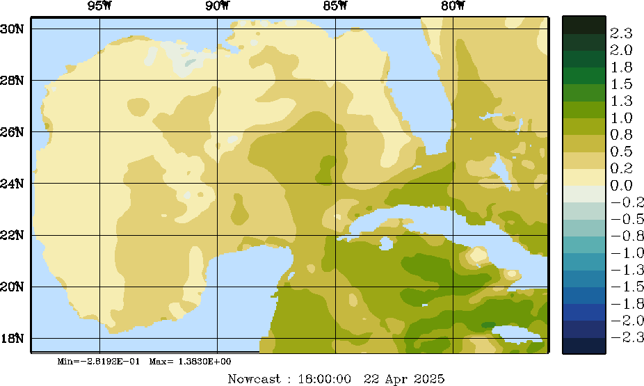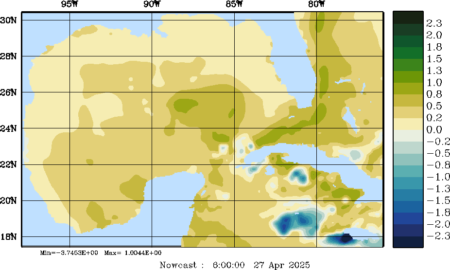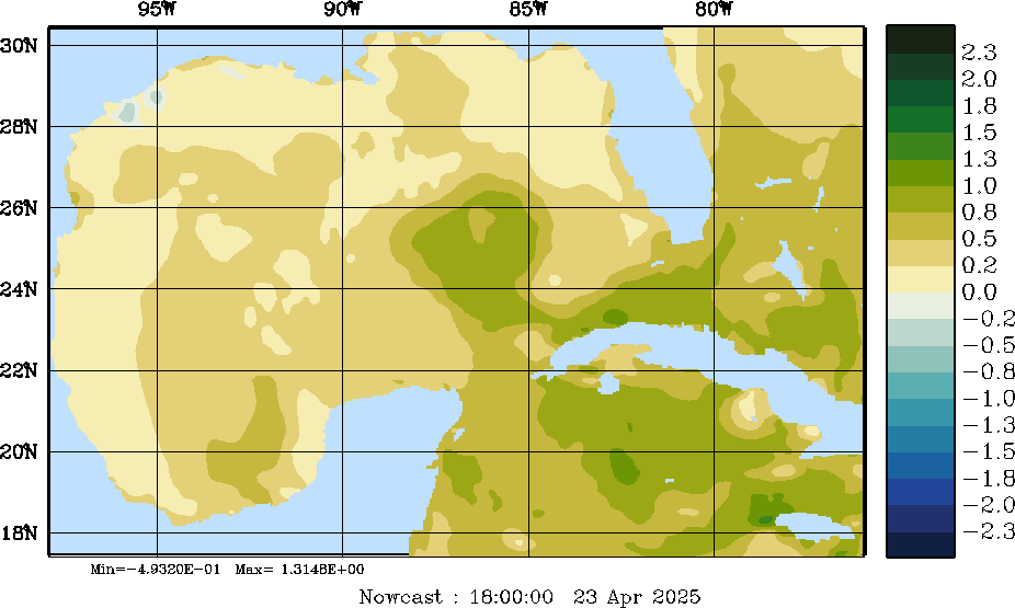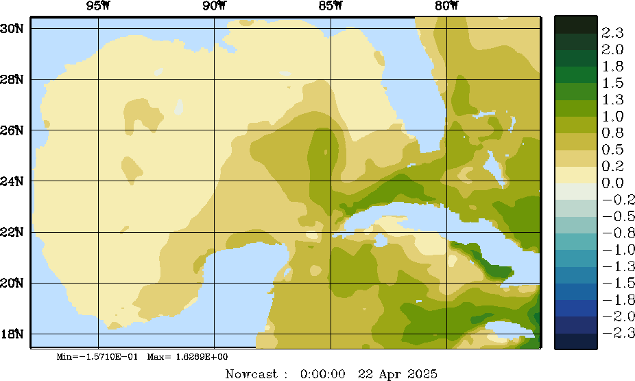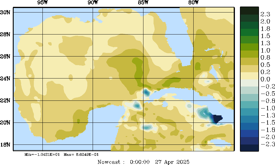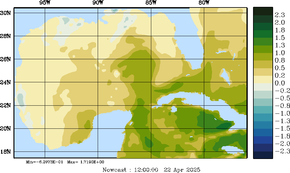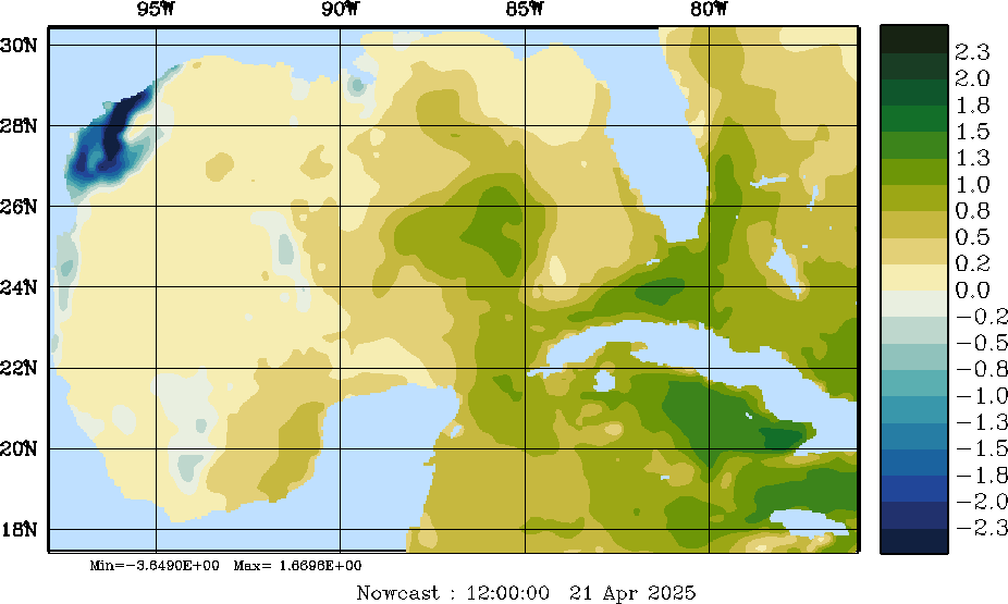E - P Snapshots (cm/day); processed by MSEAS from merged NCEP fields |
