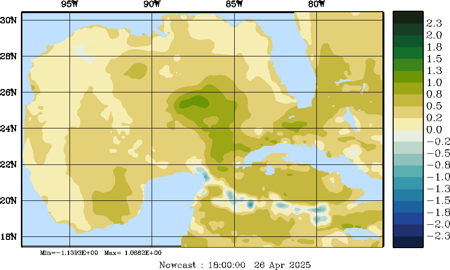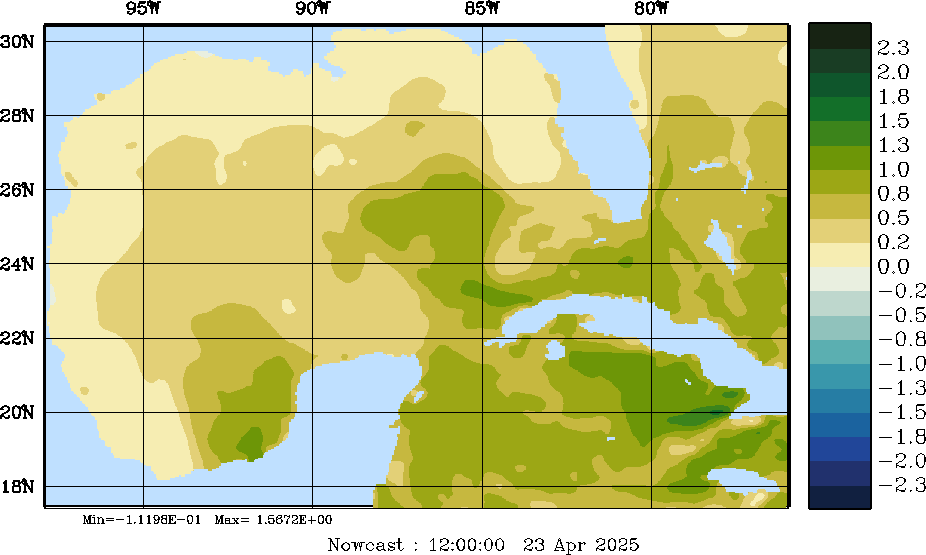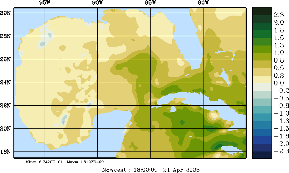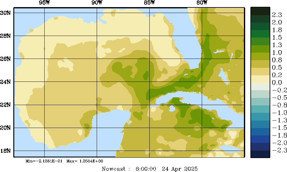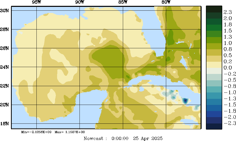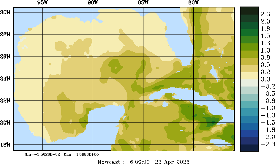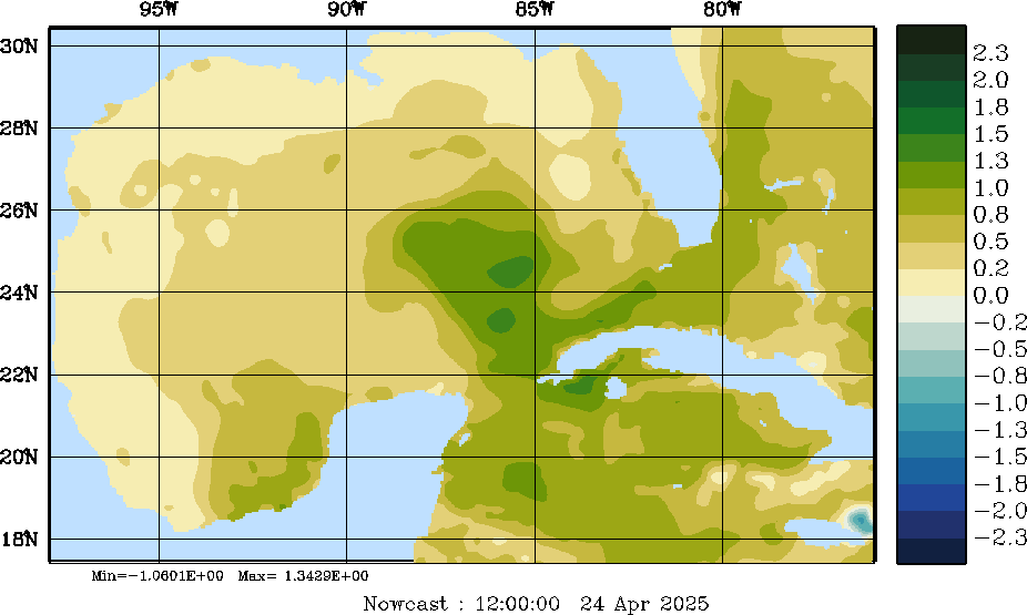 E - P Snapshots (cm/day); processed by MSEAS from merged NCEP fields |