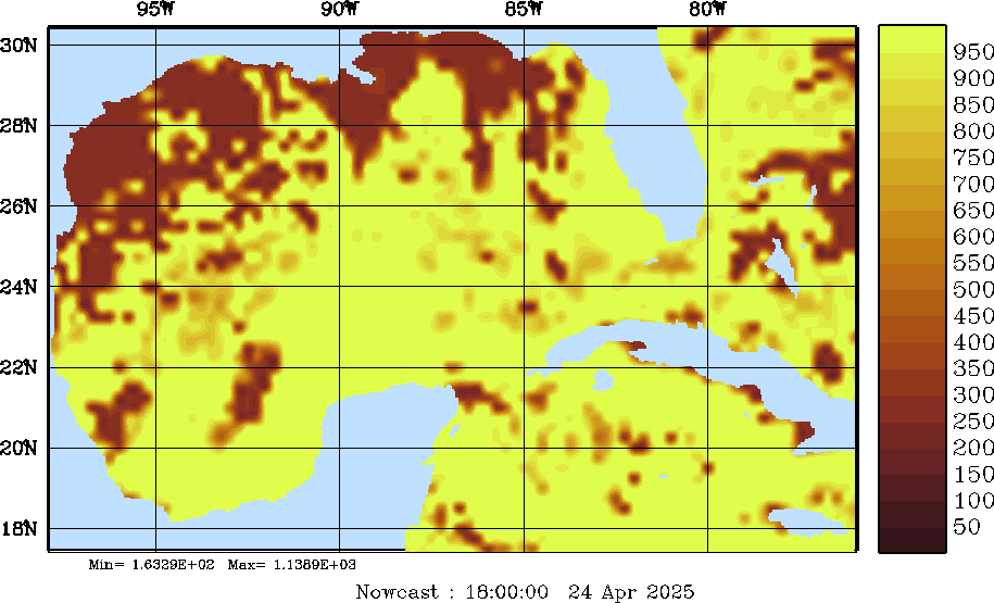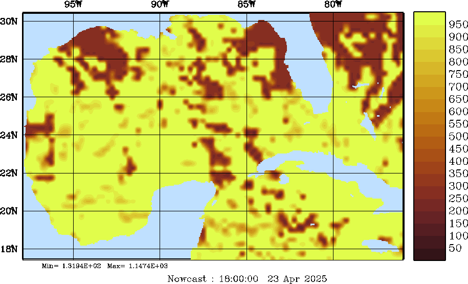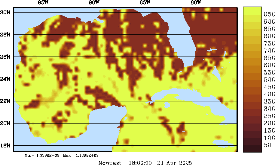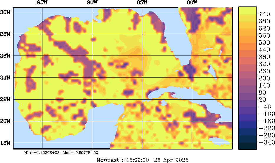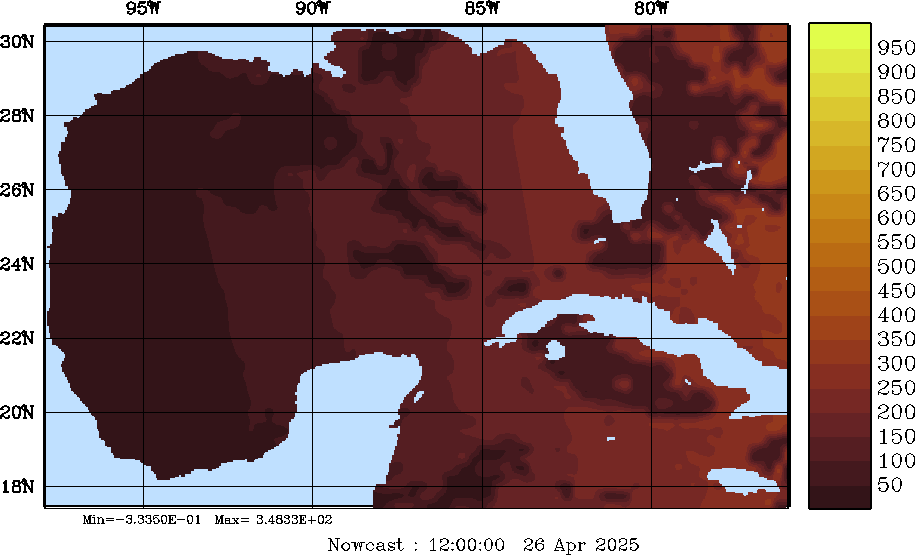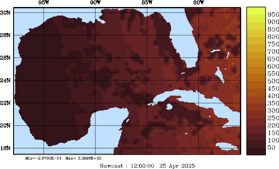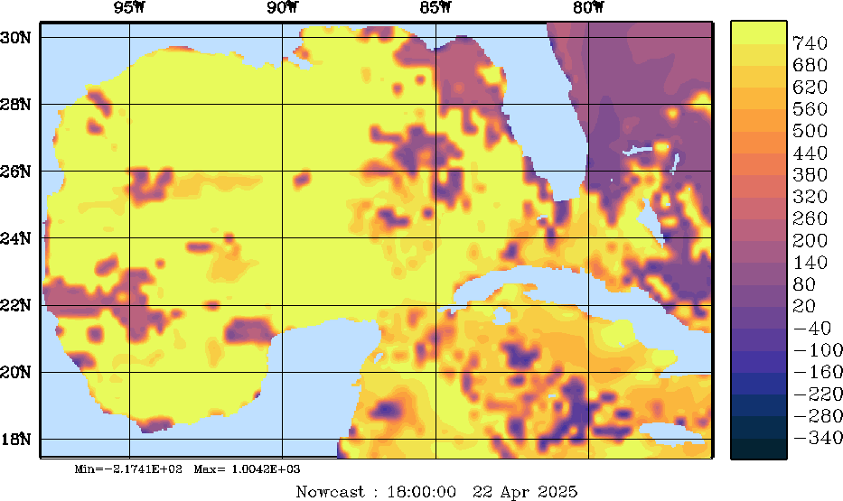 SW Radiation Snapshots (W/m2); processed by MSEAS from merged NCEP fields |
