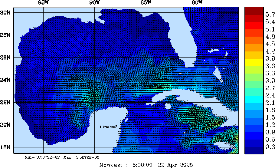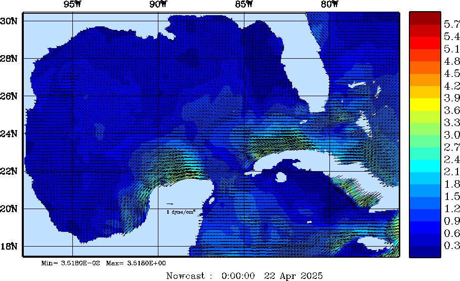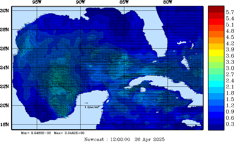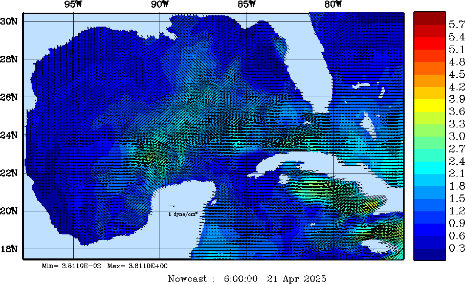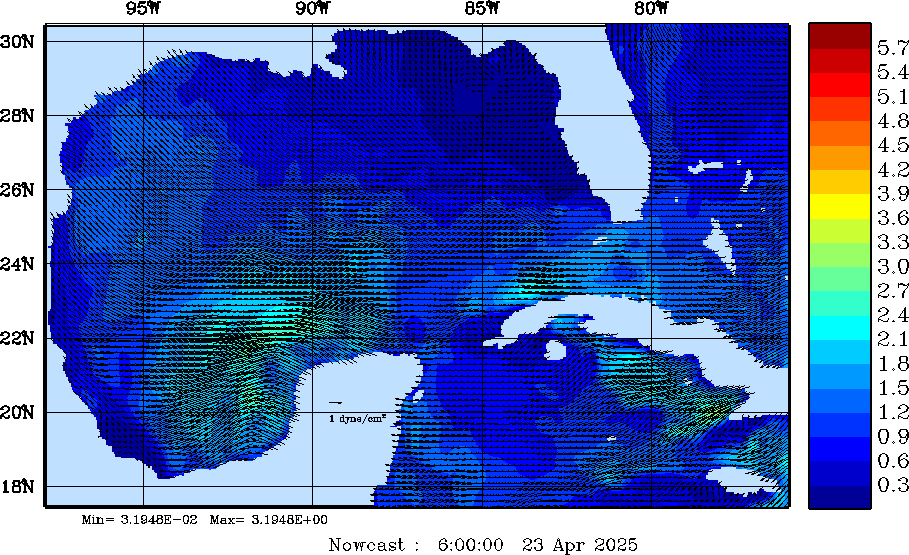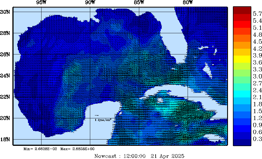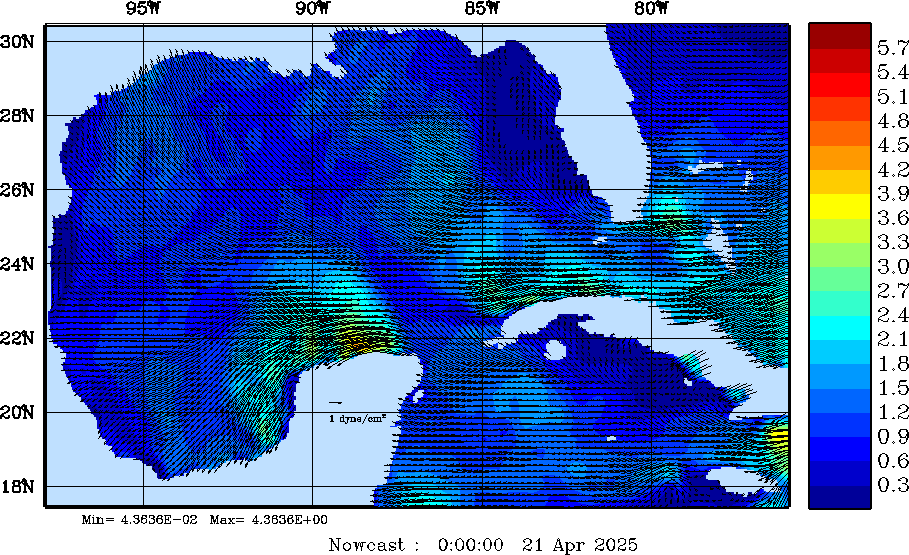 Wind Stress Snapshots (dynes/cm2); processed by MSEAS from merged NCEP fields |