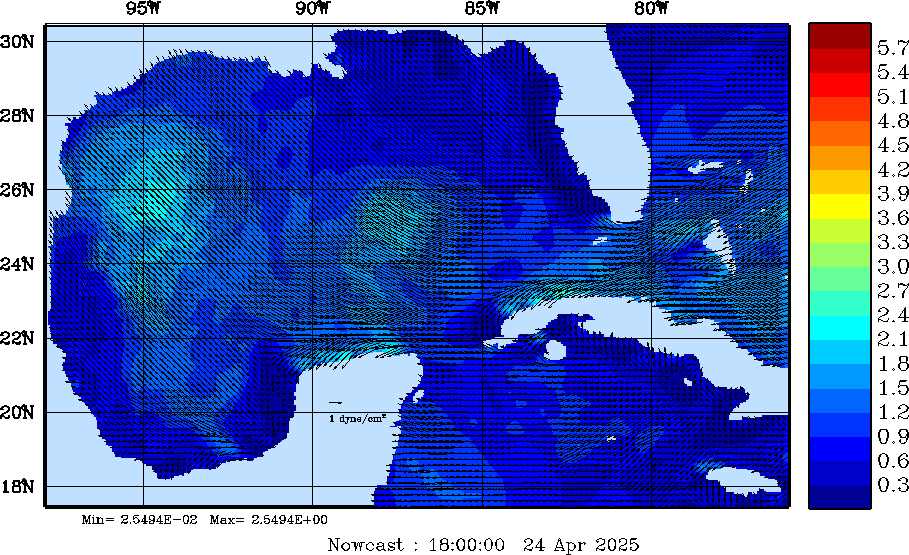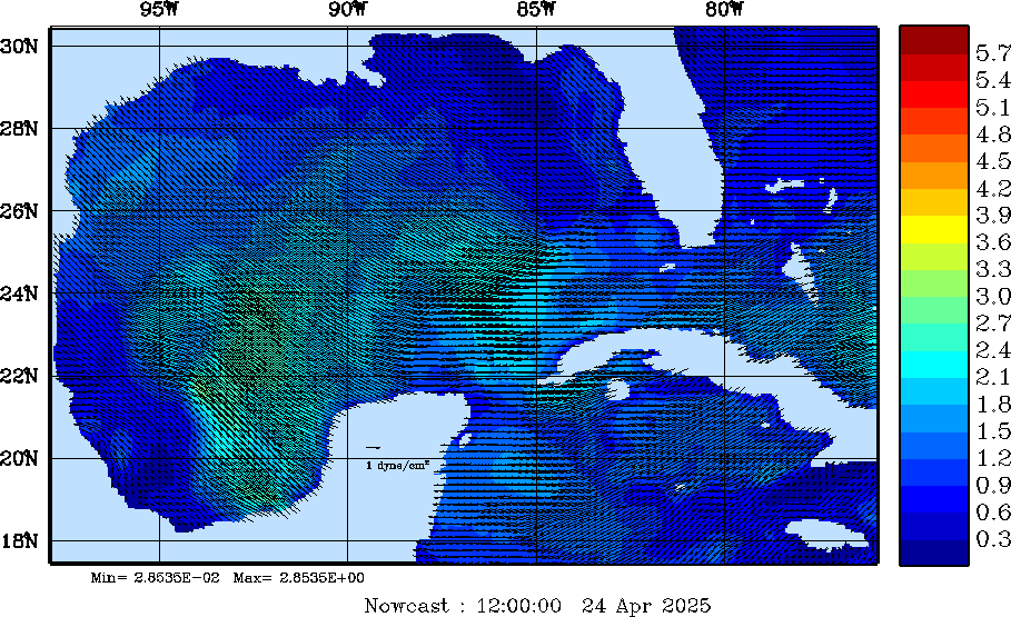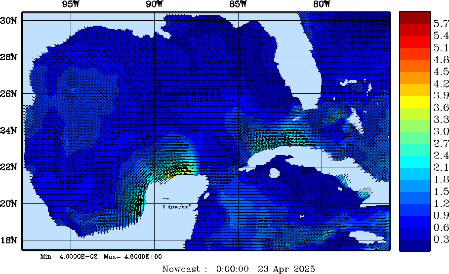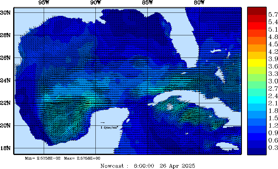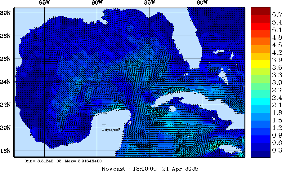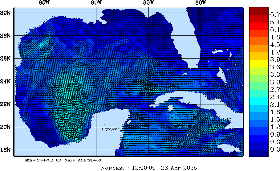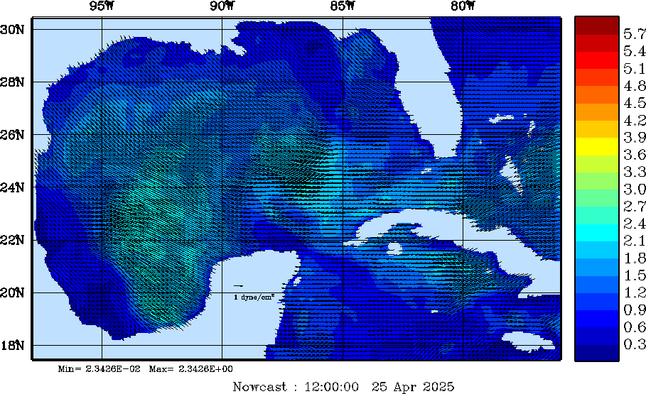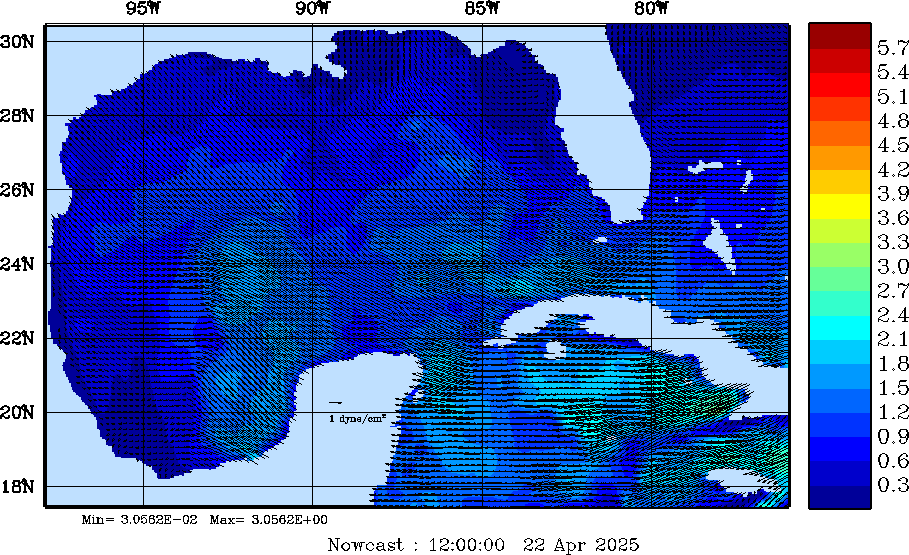 Wind Stress Snapshots (dynes/cm2); processed by MSEAS from merged NCEP fields |