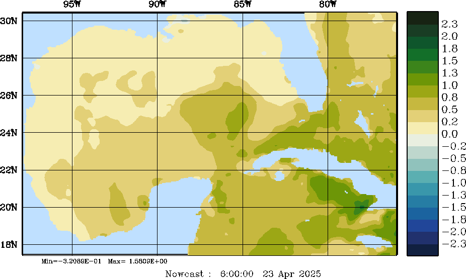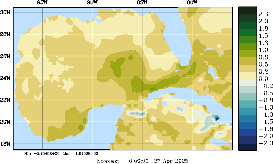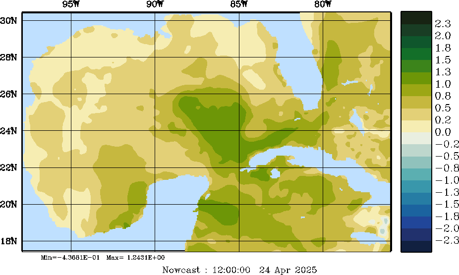 | E - P Snapshots (cm/day); processed by MSEAS from merged NCEP fields |