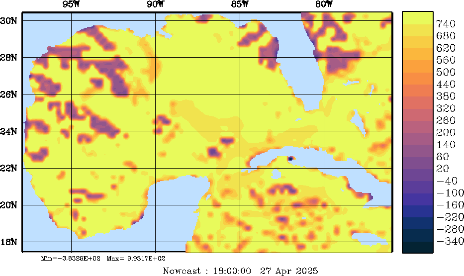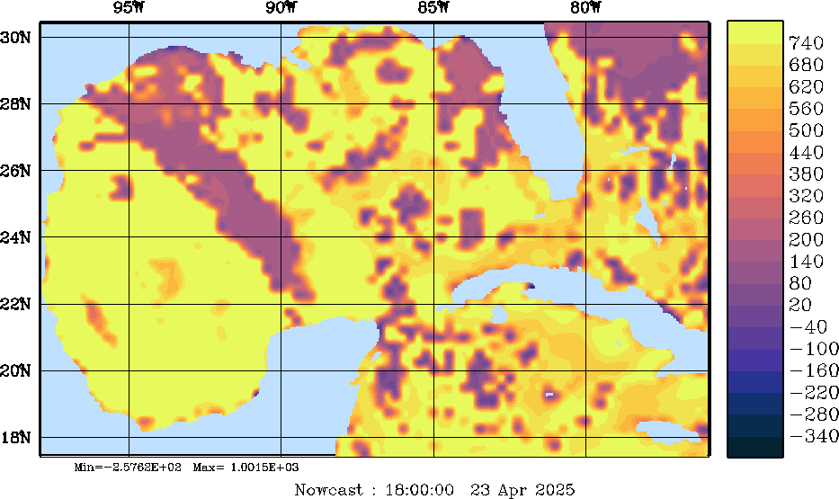 | SW Radiation Snapshots (W/m2); processed by MSEAS from merged NCEP fields |