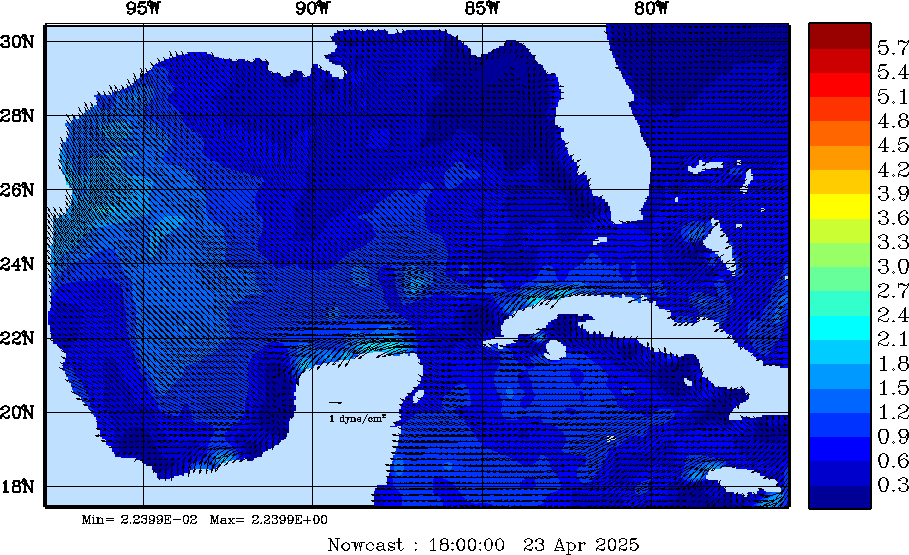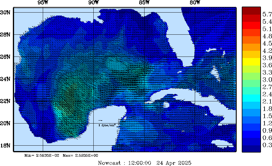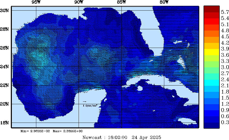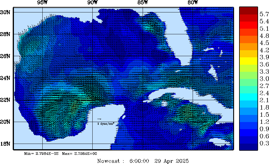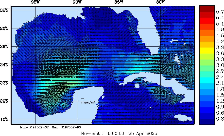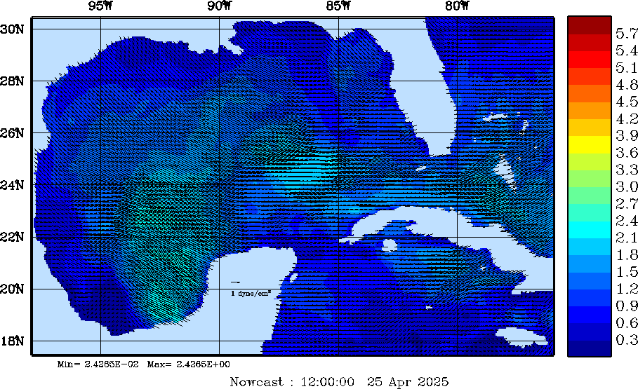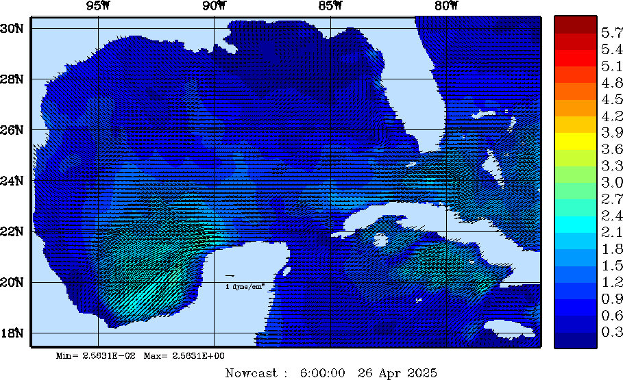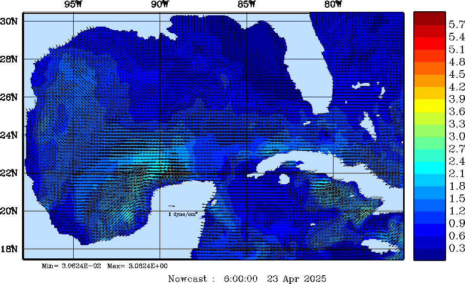 | Wind Stress Snapshots (dynes/cm2); processed by MSEAS from merged NCEP fields |