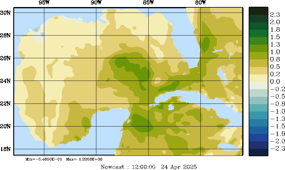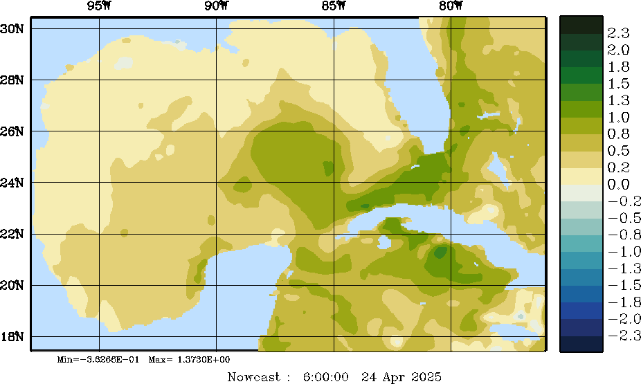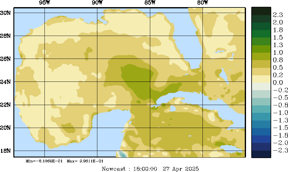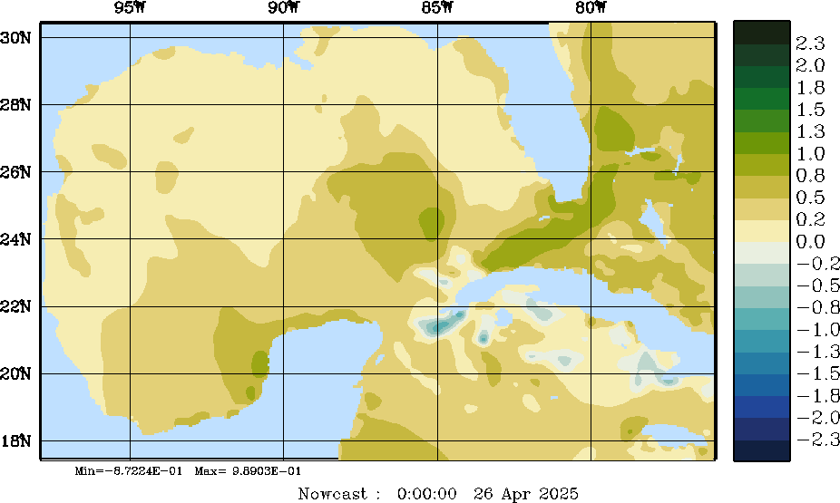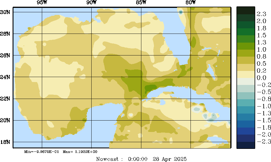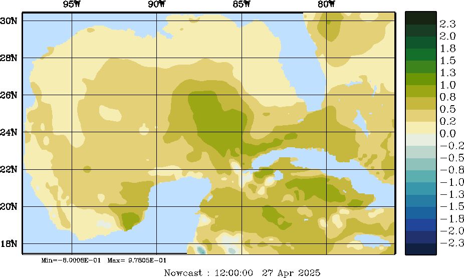 E - P Snapshots (cm/day); processed by MSEAS from merged NCEP fields |