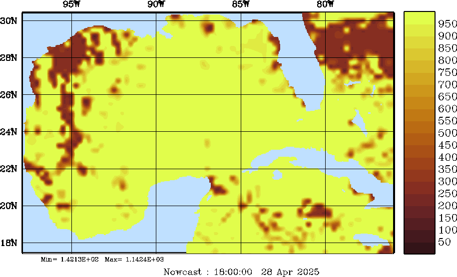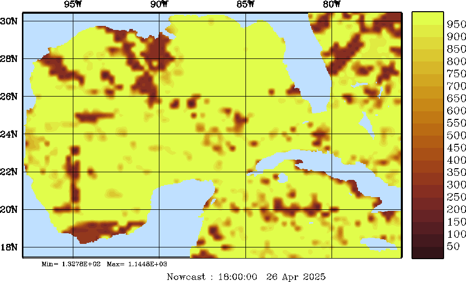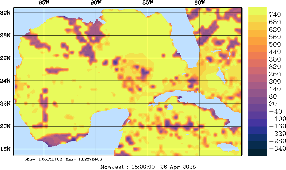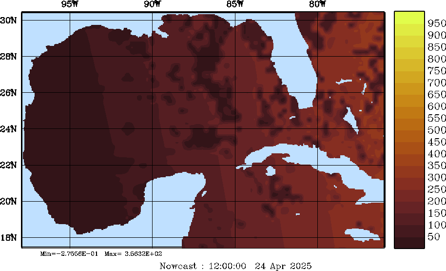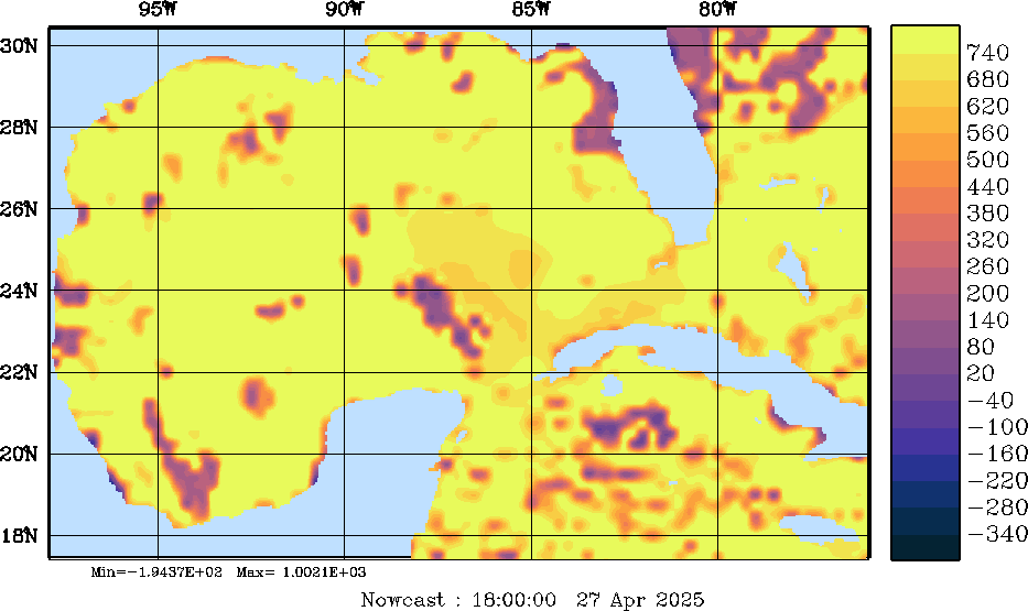 SW Radiation Snapshots (W/m2); processed by MSEAS from merged NCEP fields |