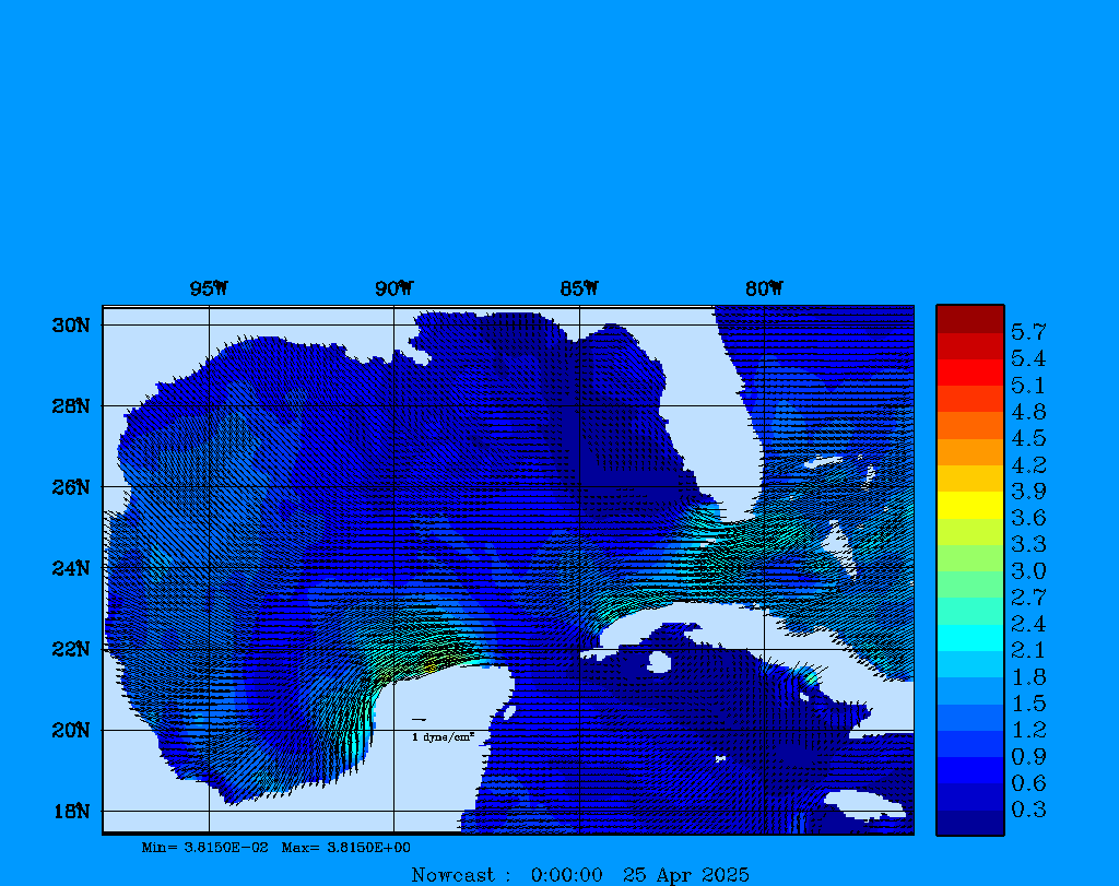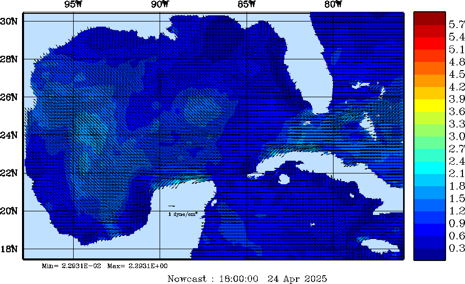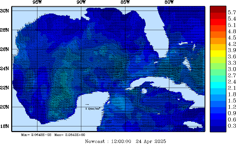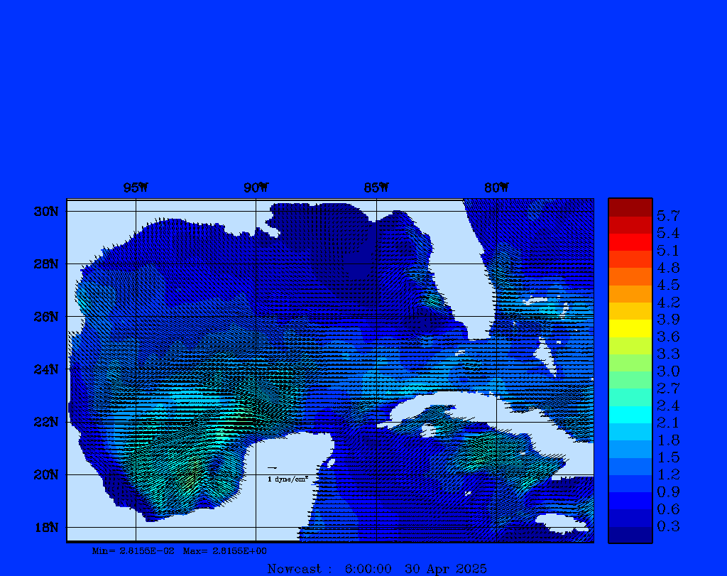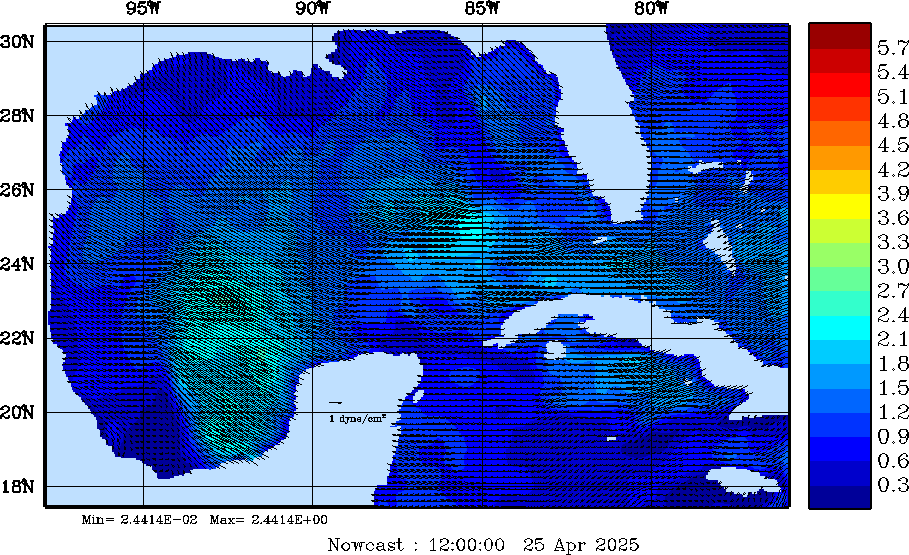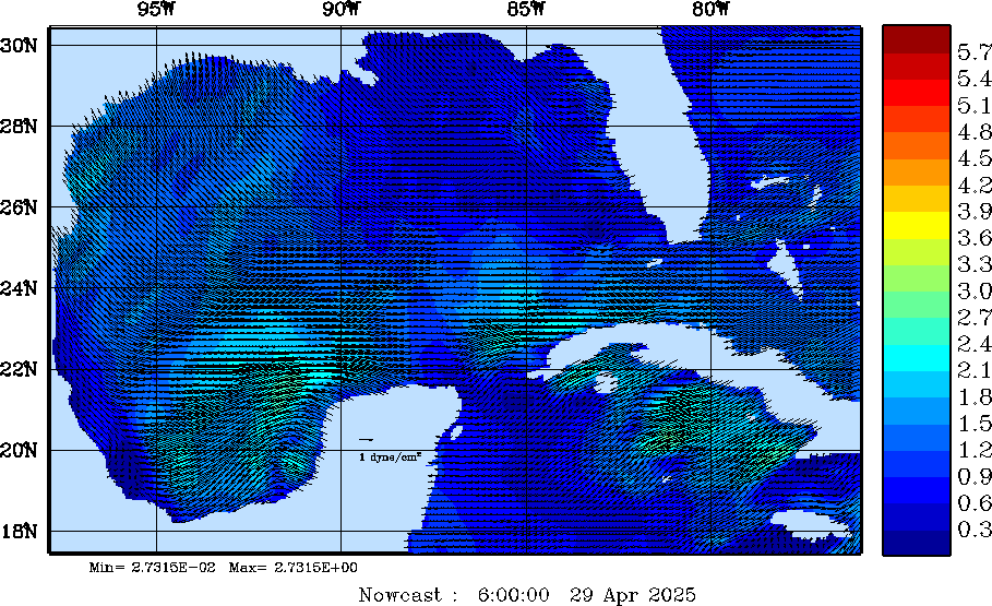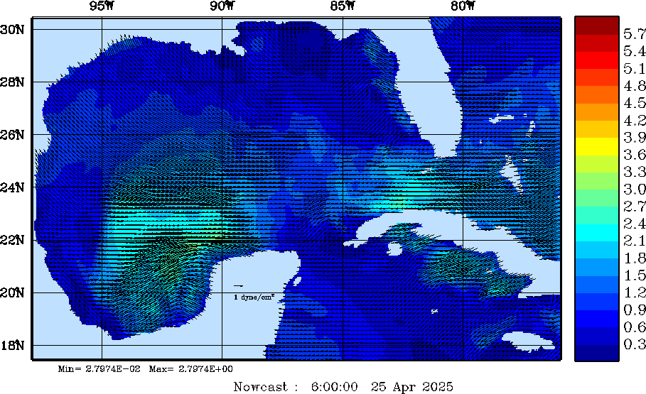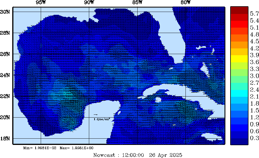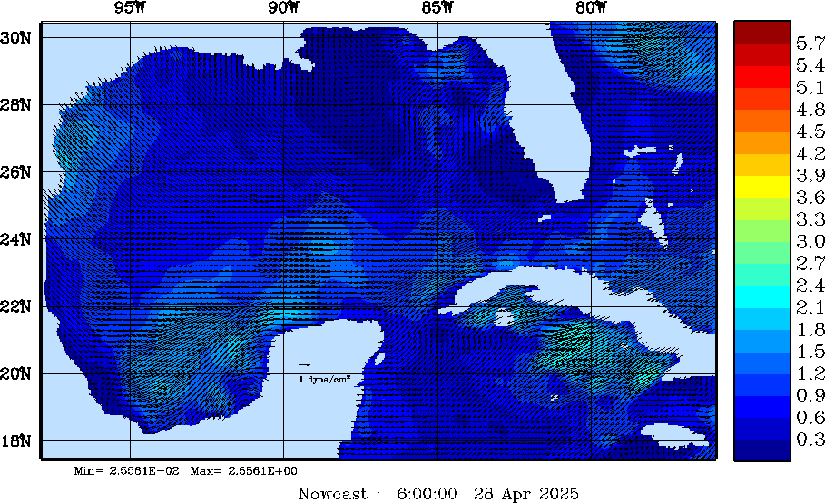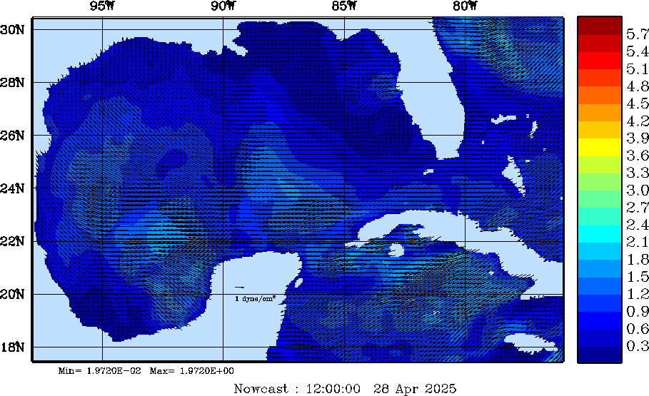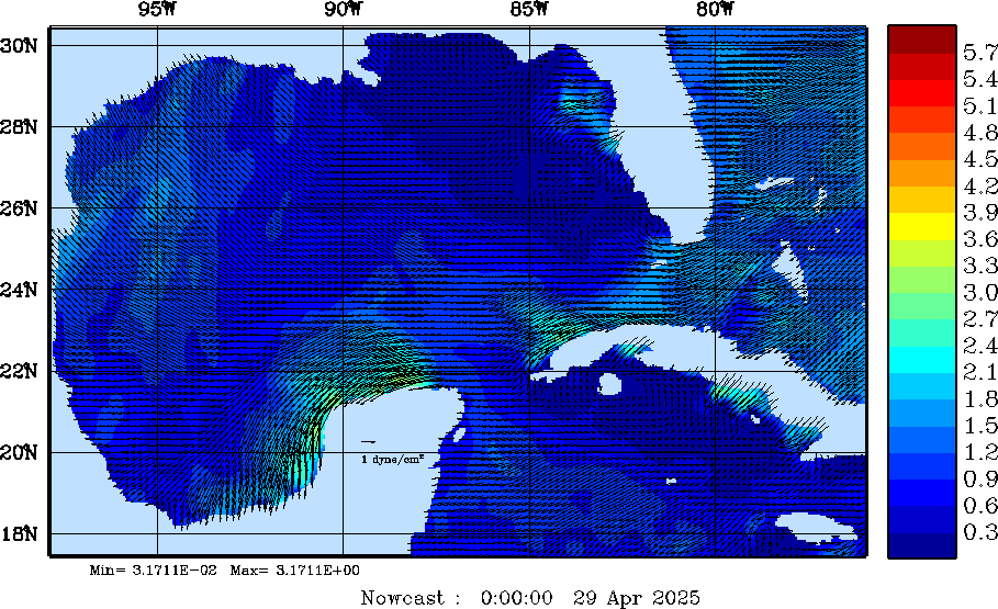 Wind Stress Snapshots (dynes/cm2); processed by MSEAS from merged NCEP fields |