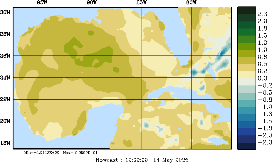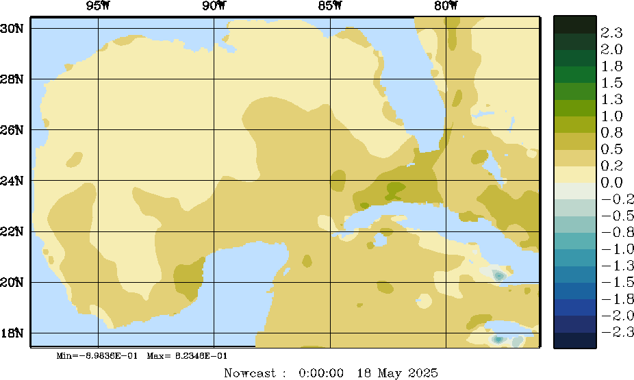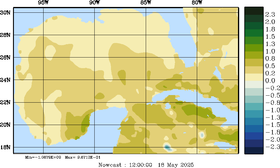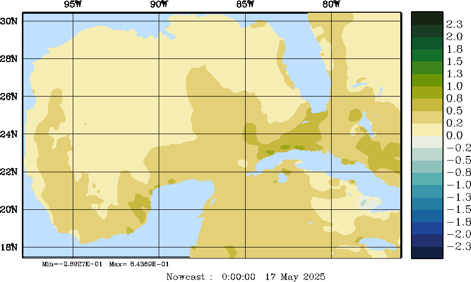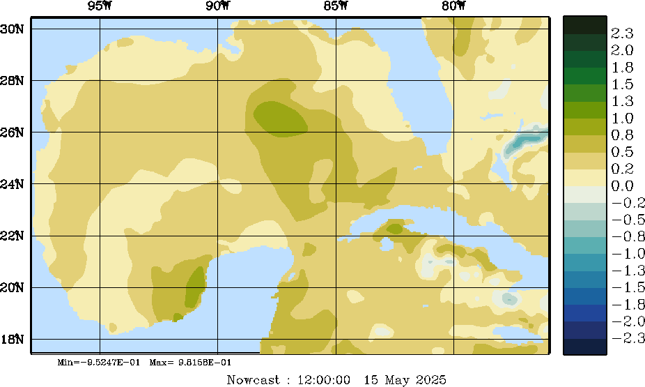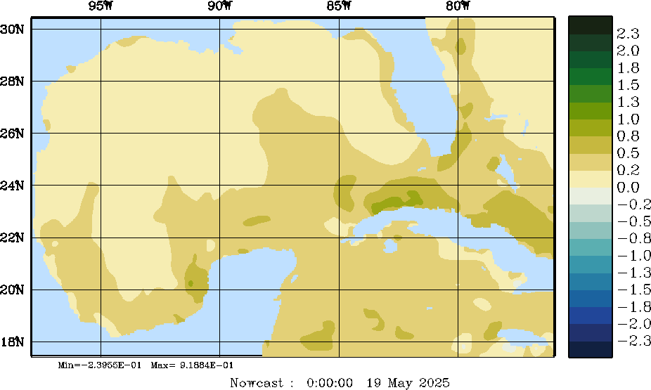 E - P Snapshots (cm/day); processed by MSEAS from merged NCEP fields |