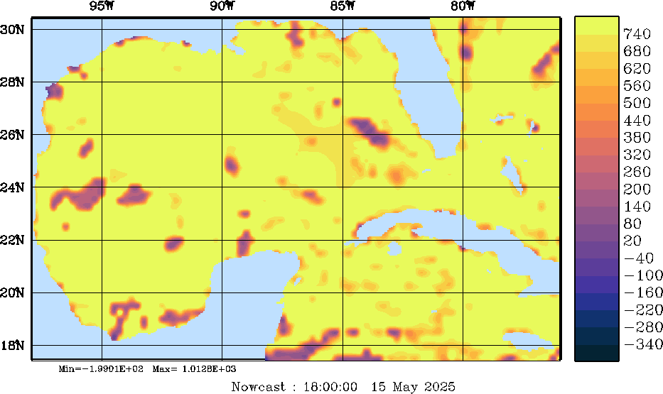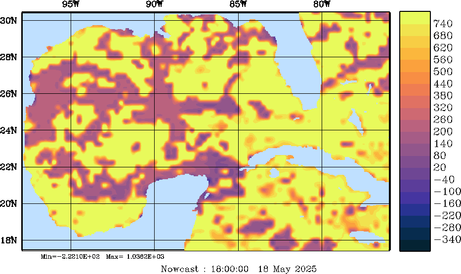 SW Radiation Snapshots (W/m2); processed by MSEAS from merged NCEP fields |