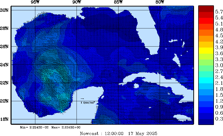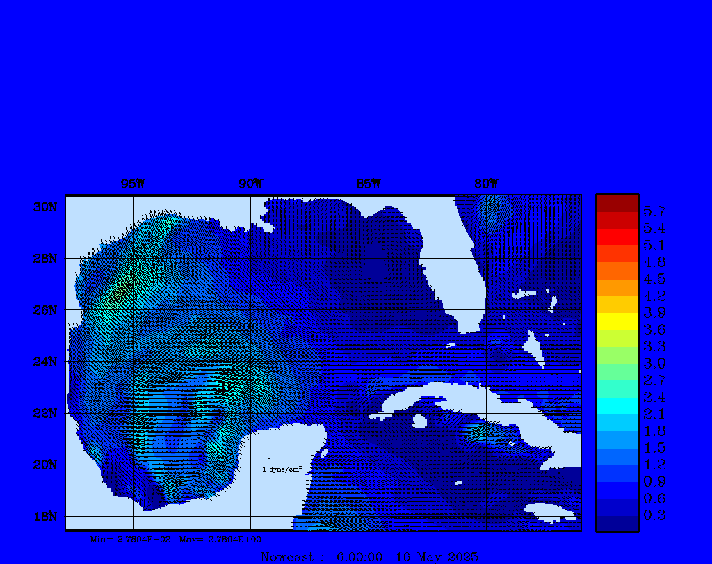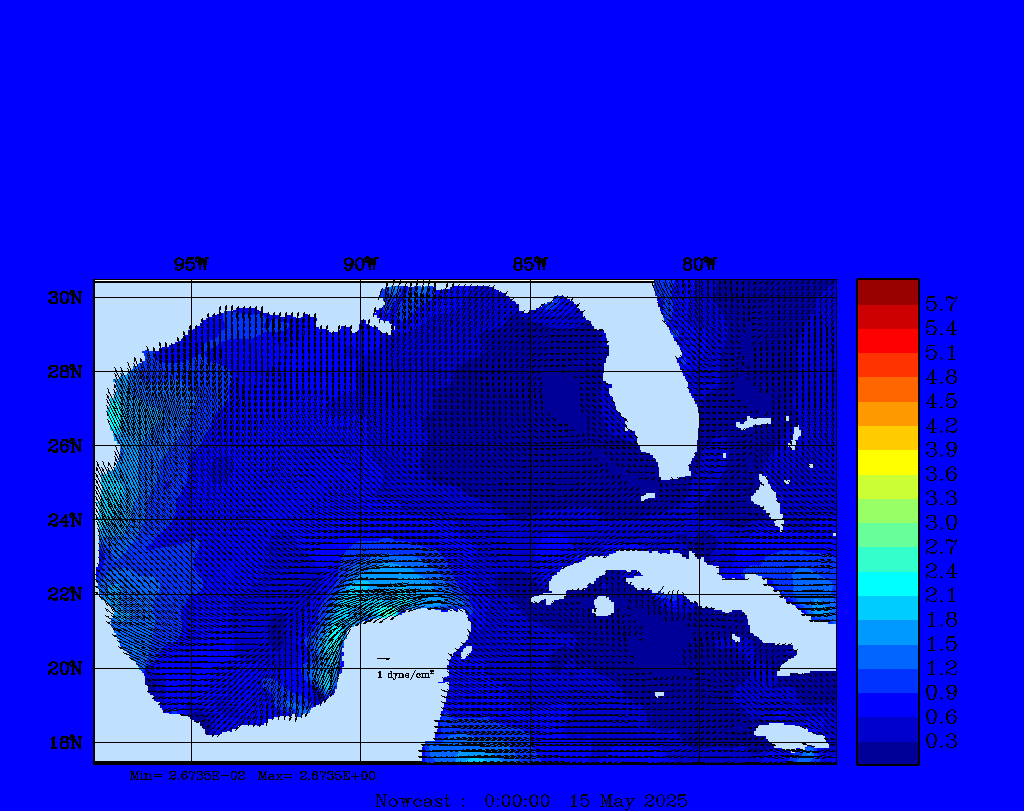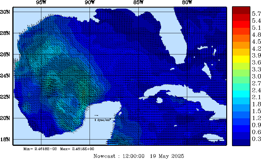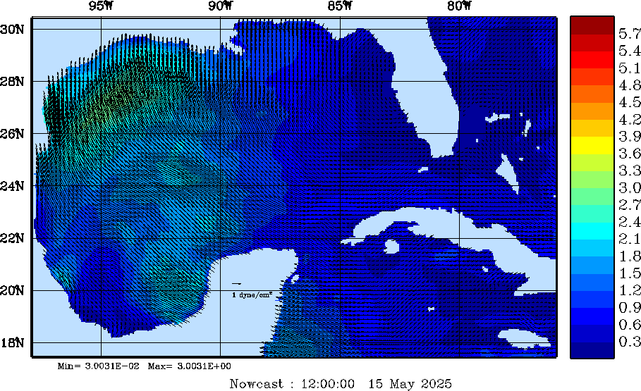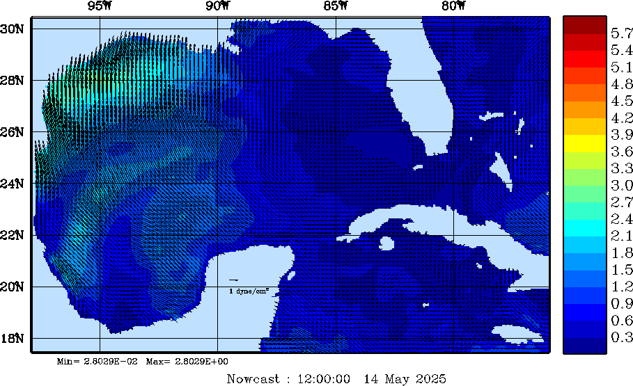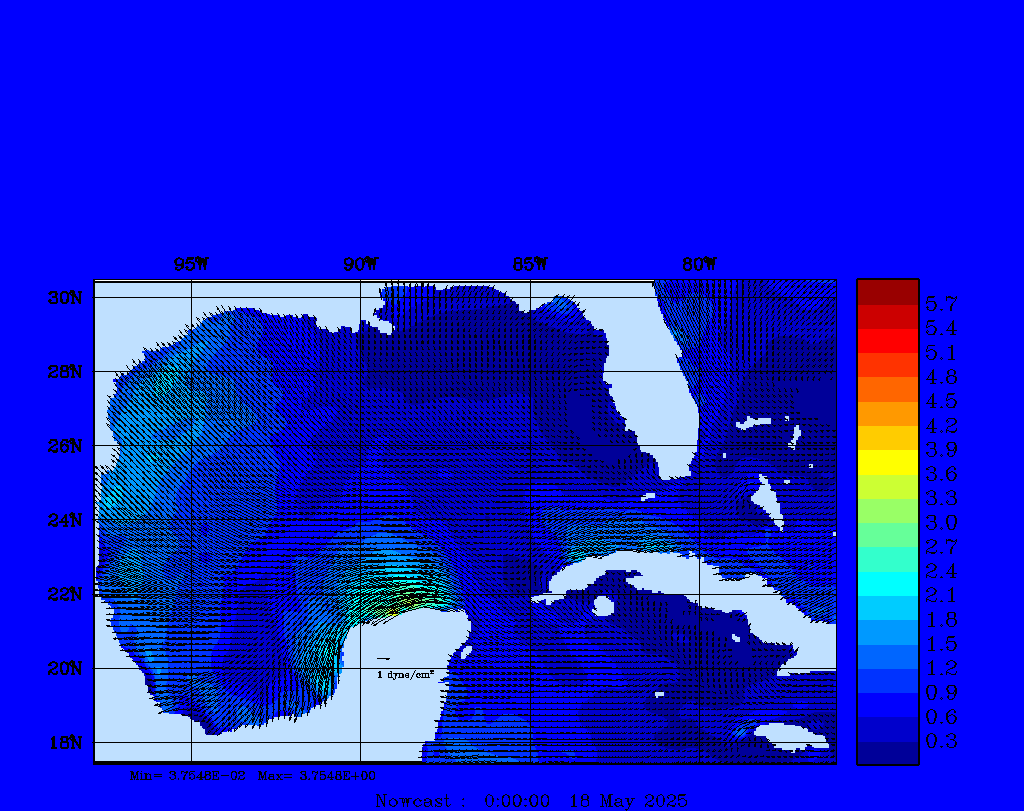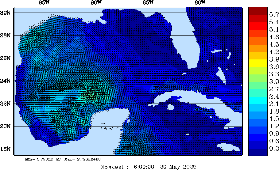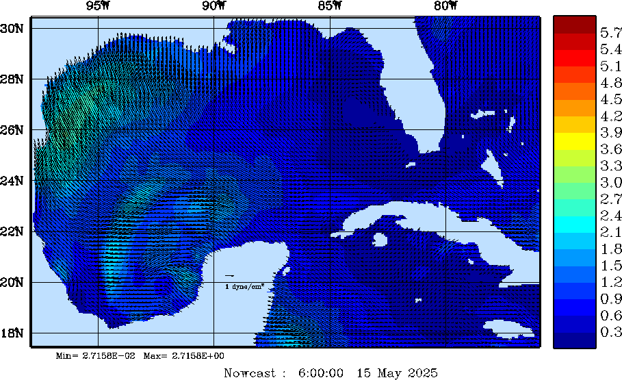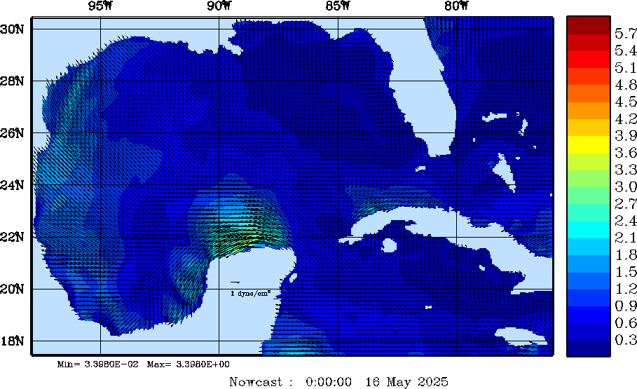 Wind Stress Snapshots (dynes/cm2); processed by MSEAS from merged NCEP fields |