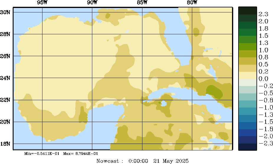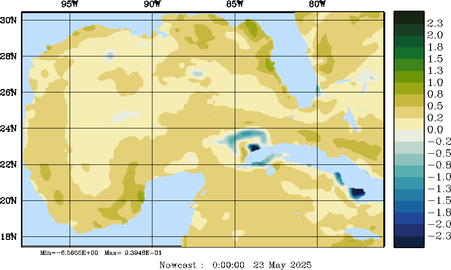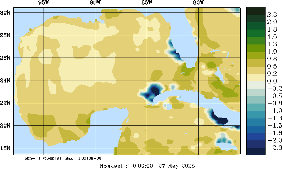 E - P Snapshots (cm/day); processed by MSEAS from merged NCEP fields |