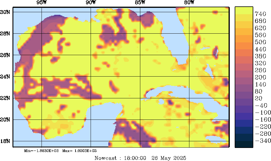 SW Radiation Snapshots (W/m2); processed by MSEAS from merged NCEP fields |