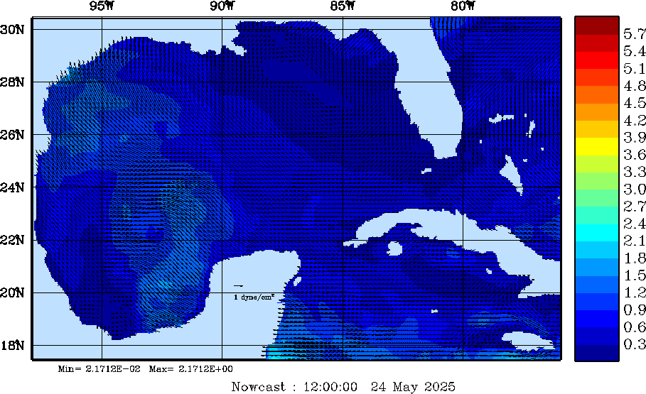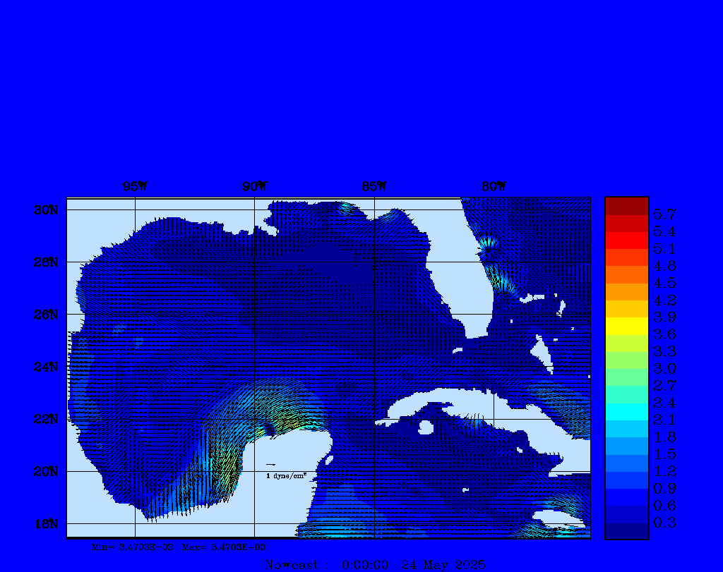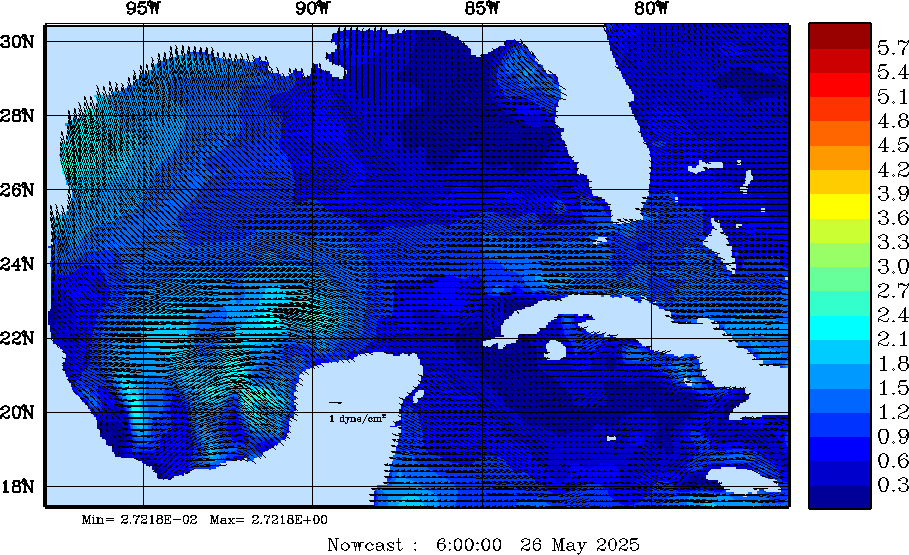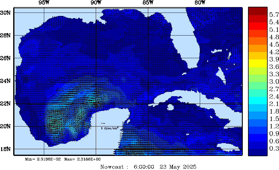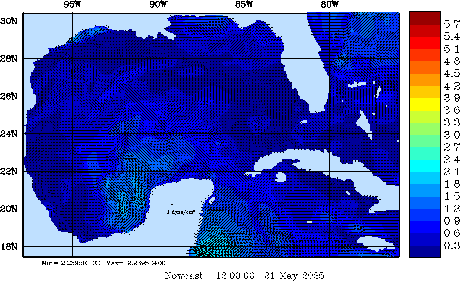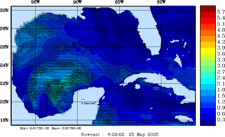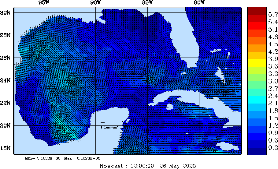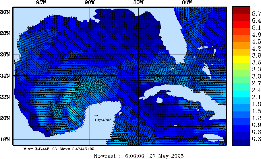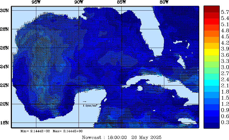 Wind Stress Snapshots (dynes/cm2); processed by MSEAS from merged NCEP fields |