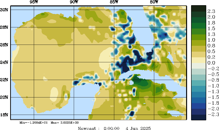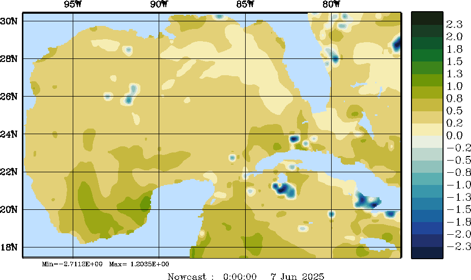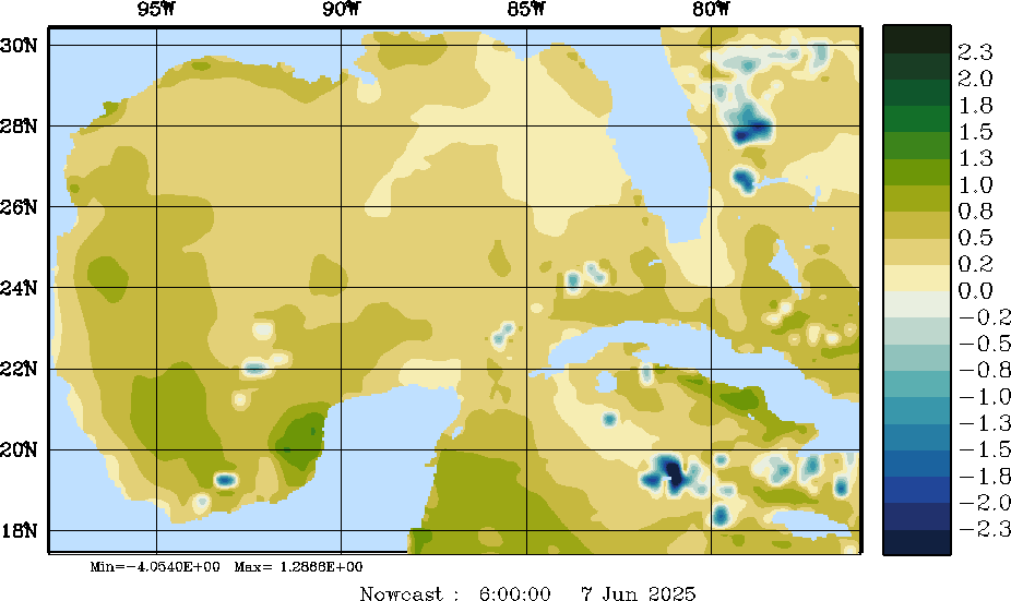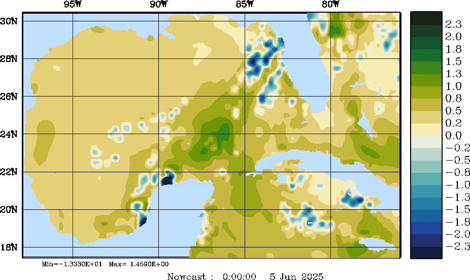 E - P Snapshots (cm/day); processed by MSEAS from merged NCEP fields |