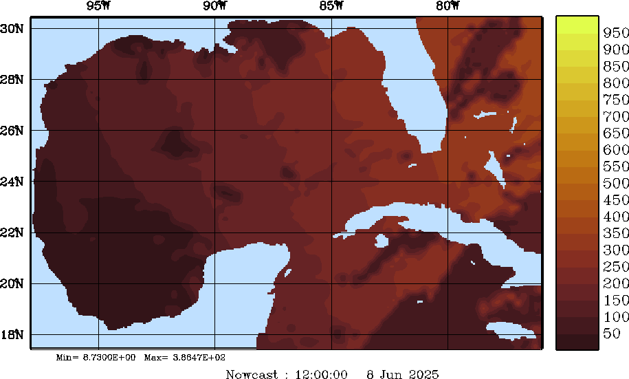 SW Radiation Snapshots (W/m2); processed by MSEAS from merged NCEP fields |