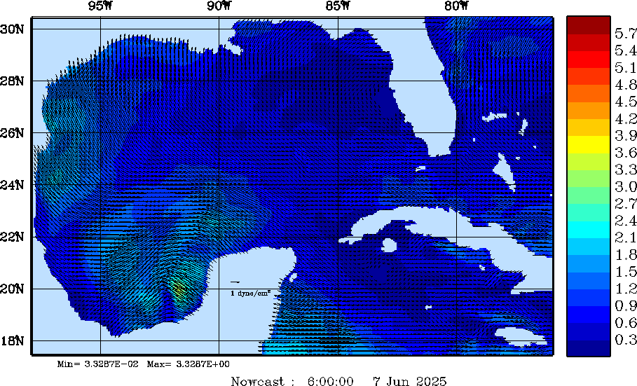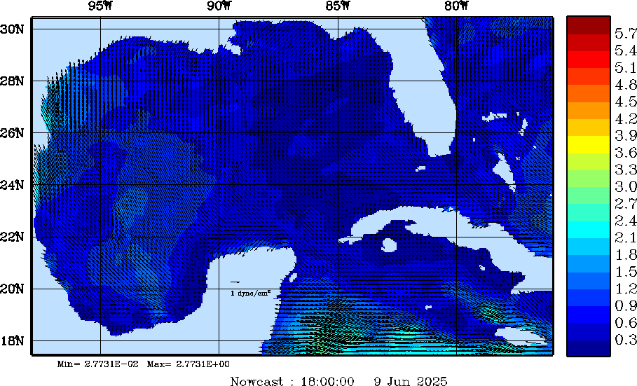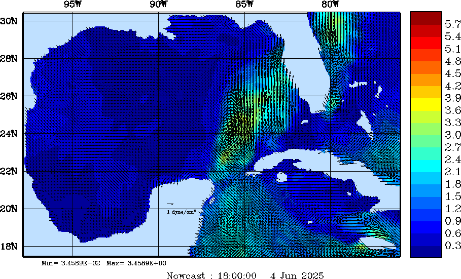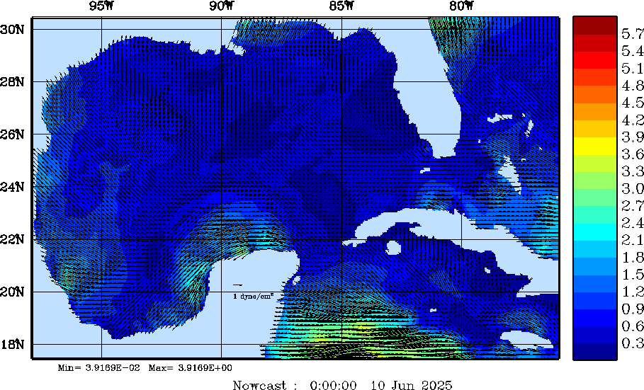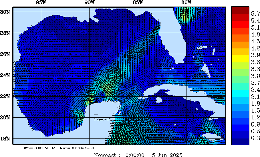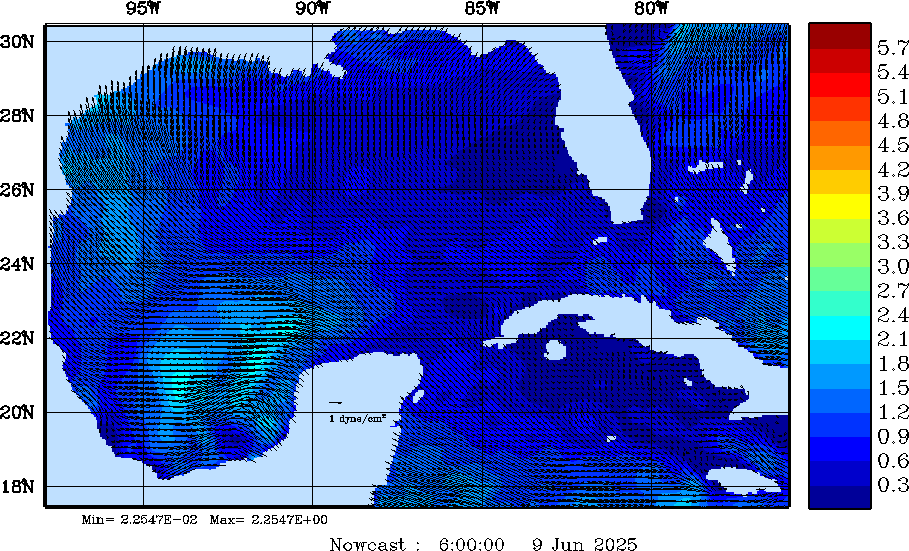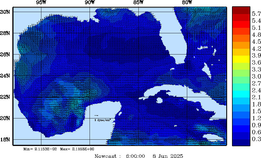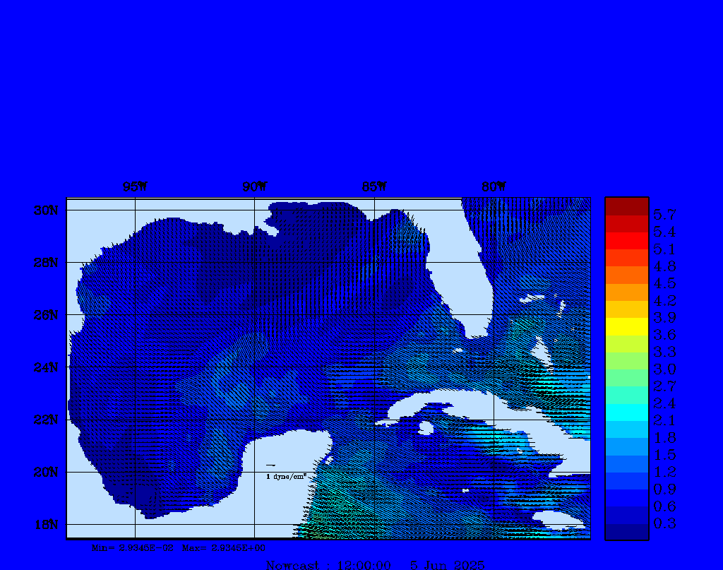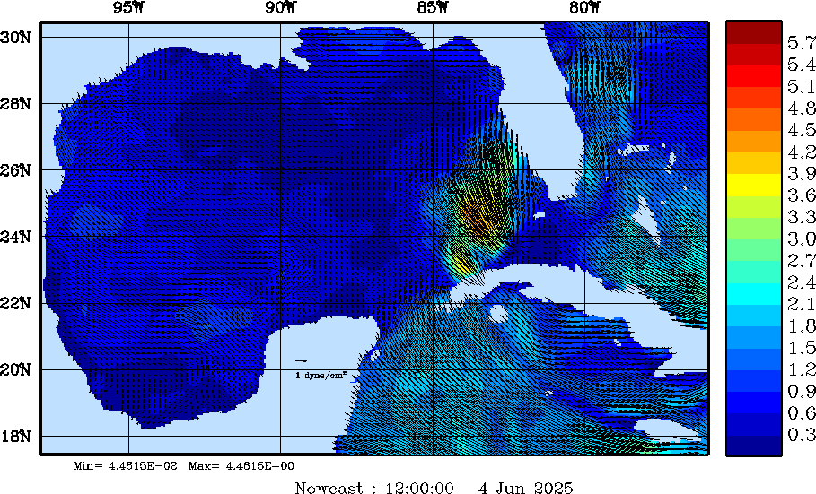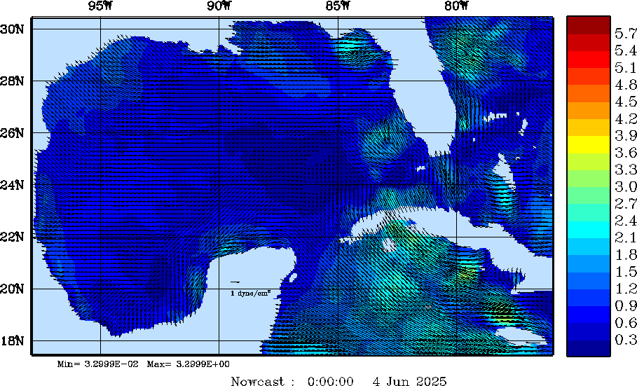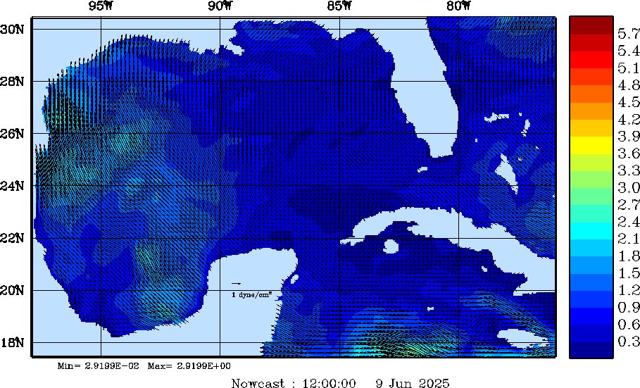 Wind Stress Snapshots (dynes/cm2); processed by MSEAS from merged NCEP fields |