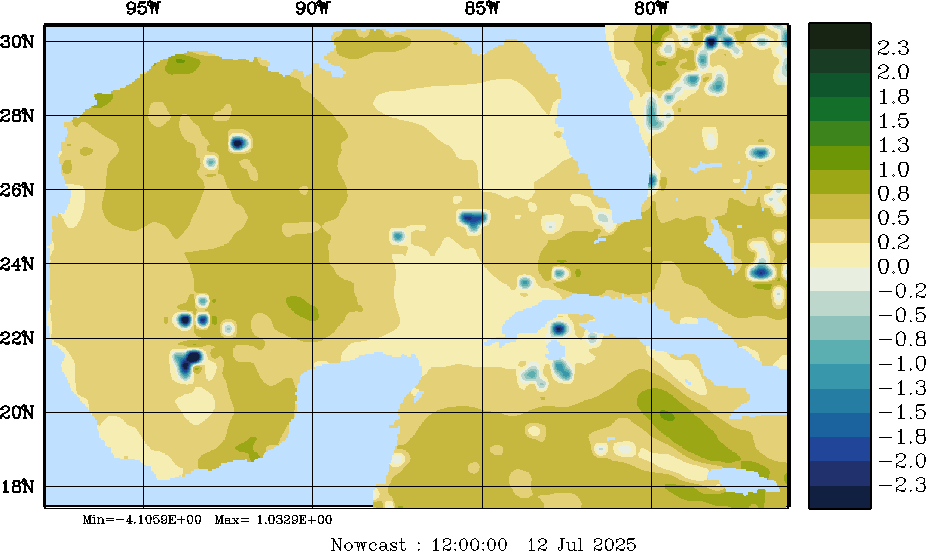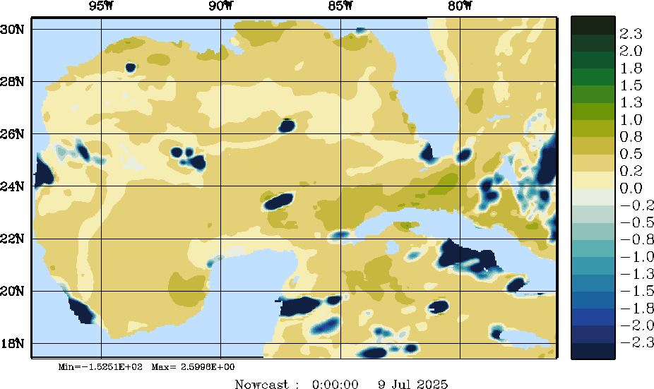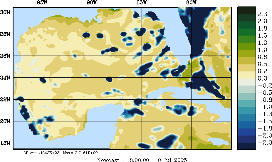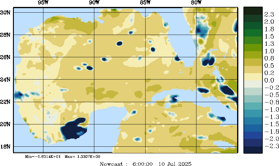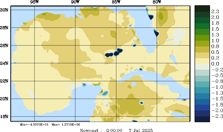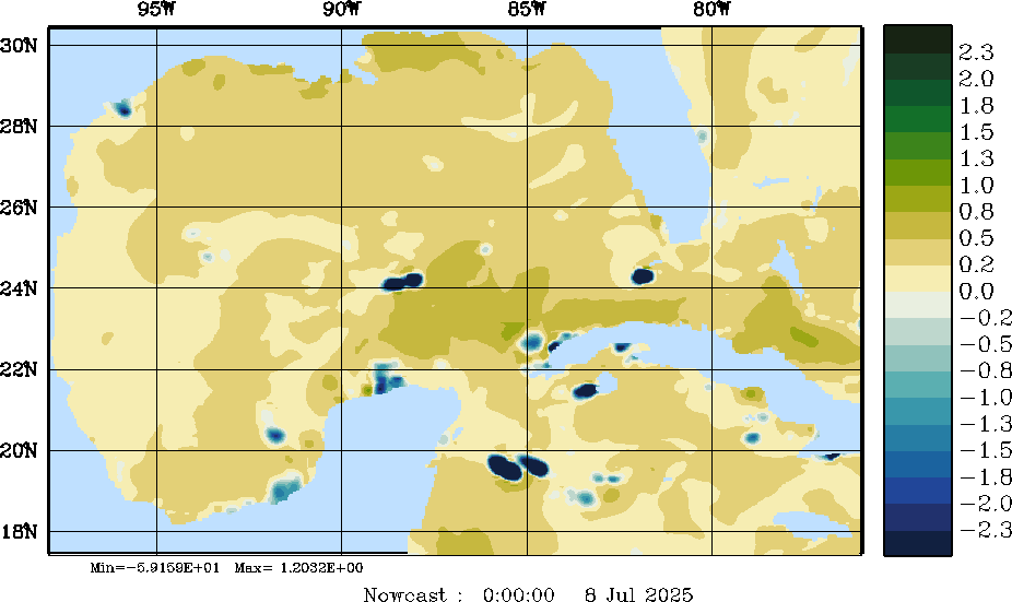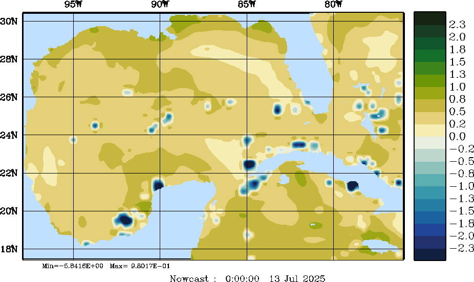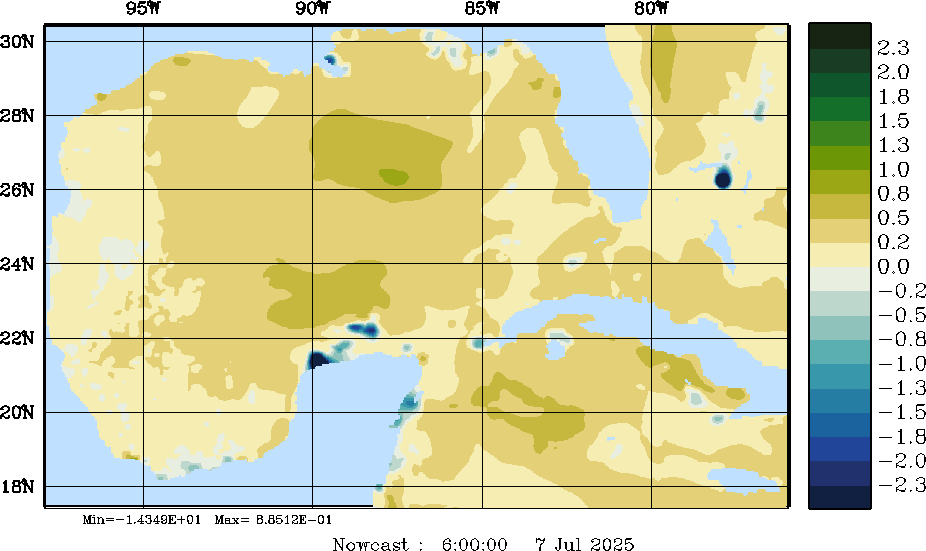 | E - P Snapshots (cm/day); processed by MSEAS from merged NCEP fields |