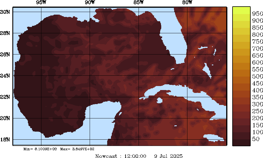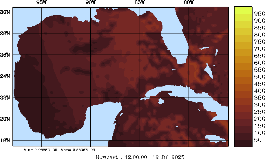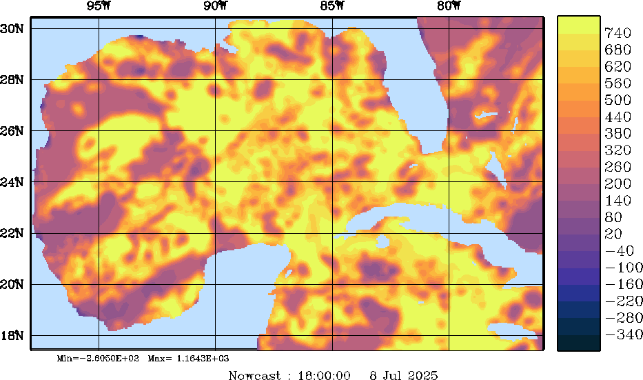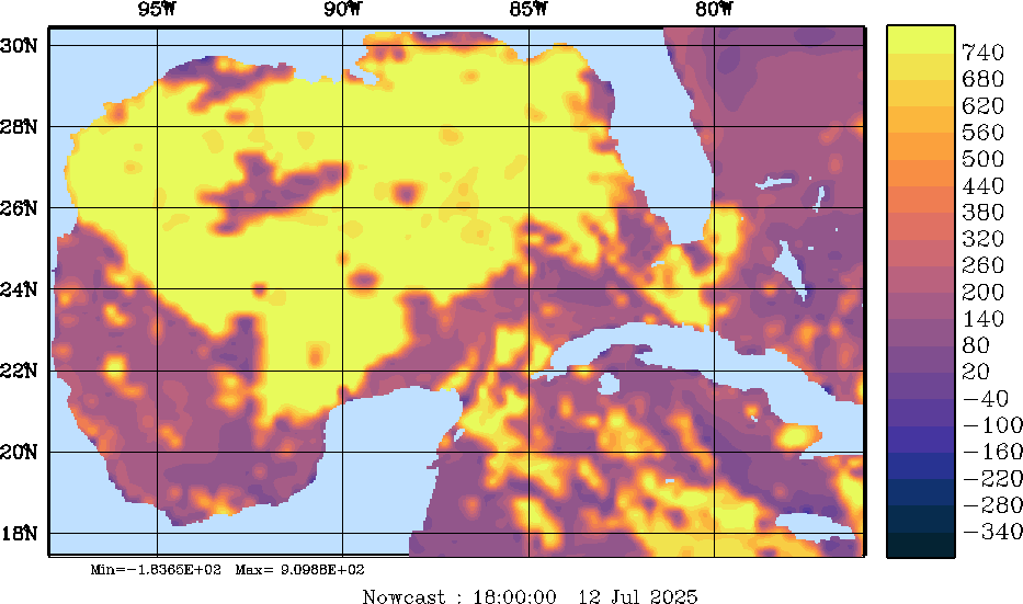 | SW Radiation Snapshots (W/m2); processed by MSEAS from merged NCEP fields |