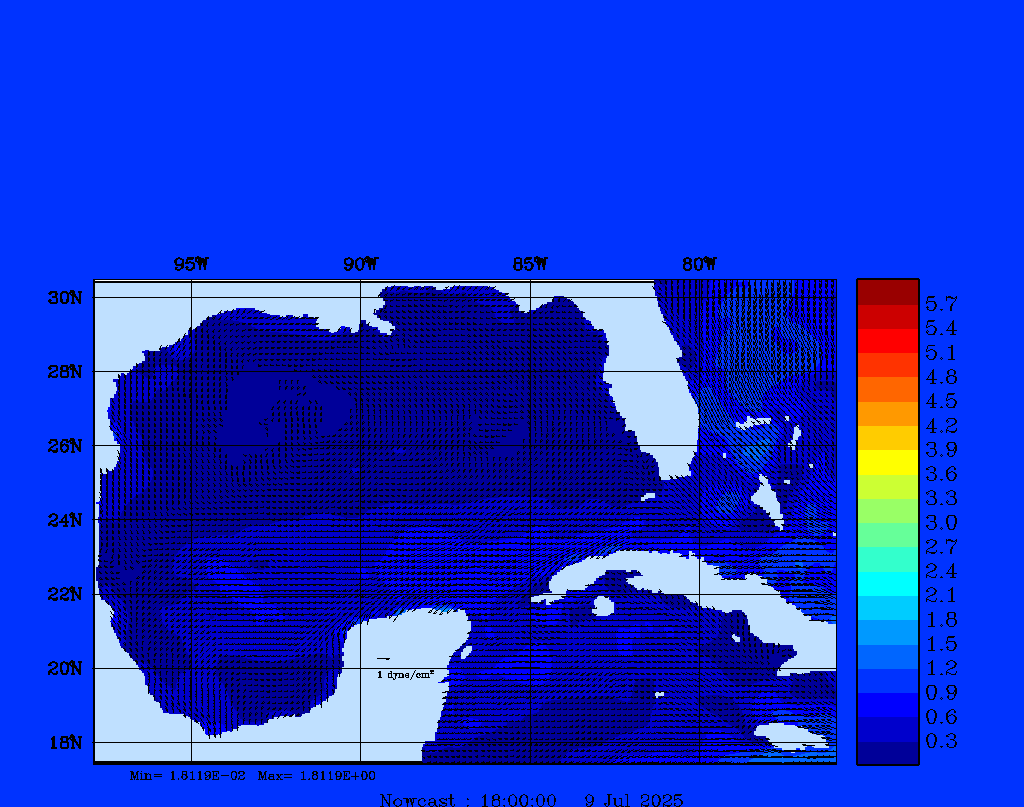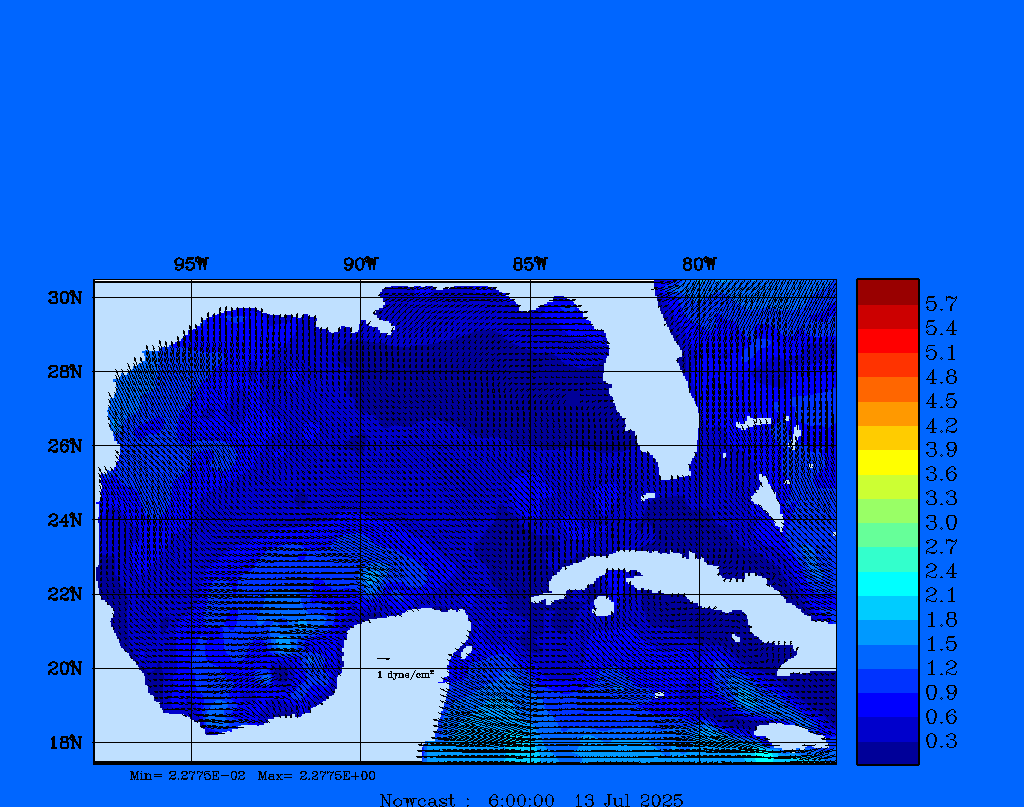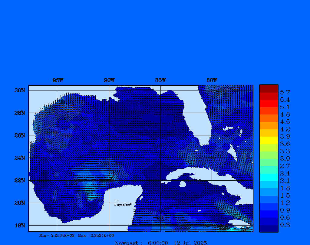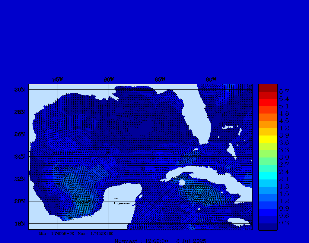 | Wind Stress Snapshots (dynes/cm2); processed by MSEAS from merged NCEP fields |