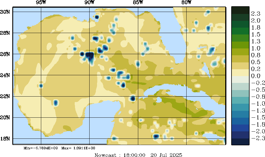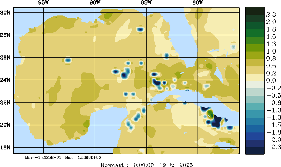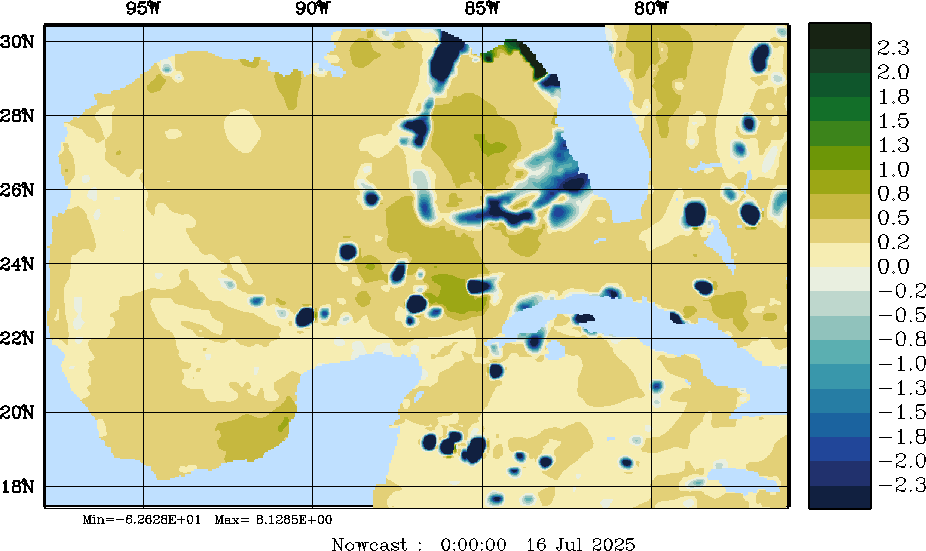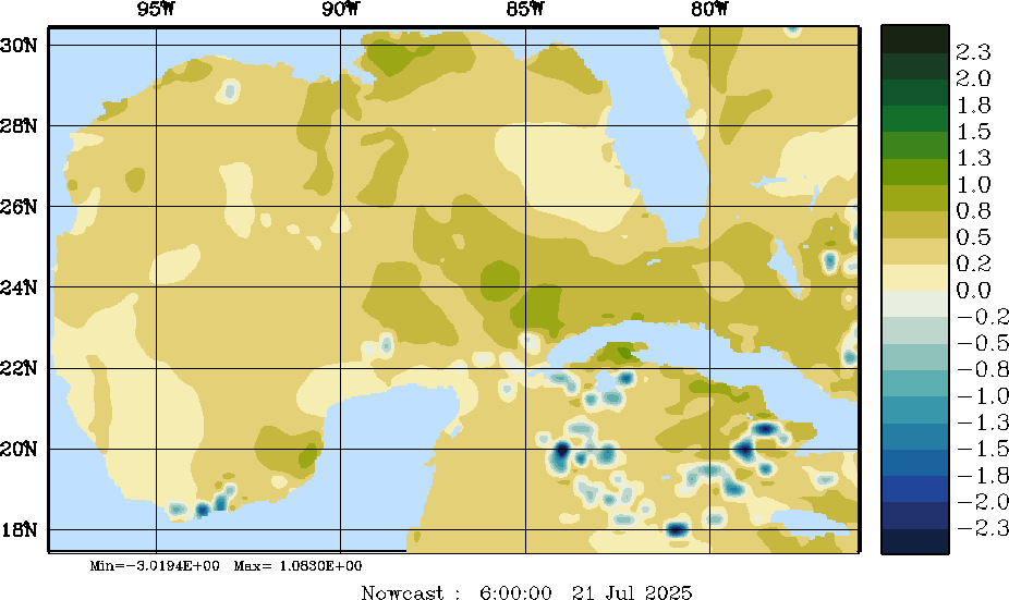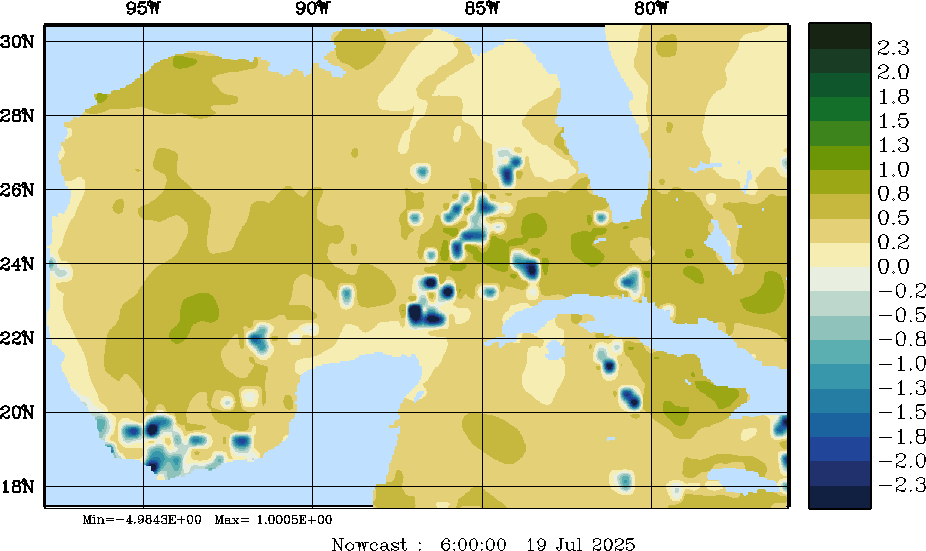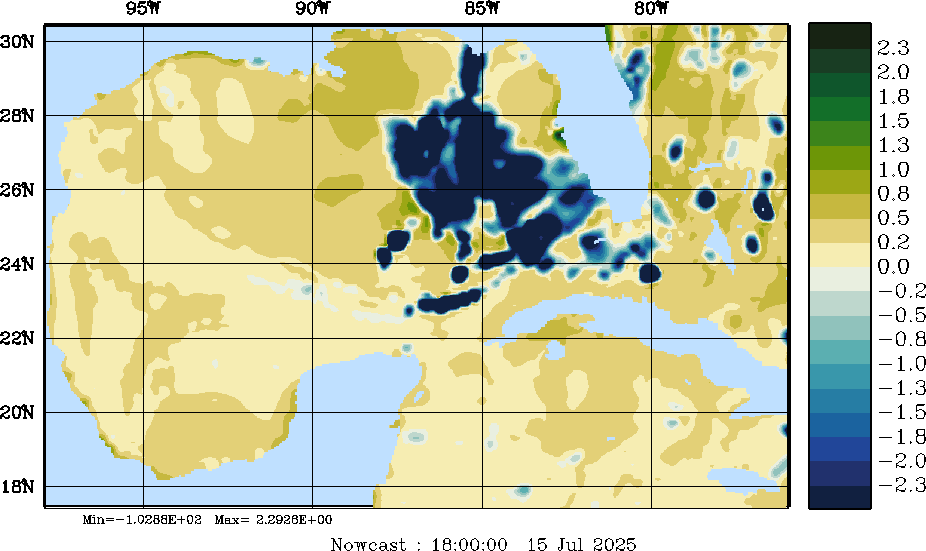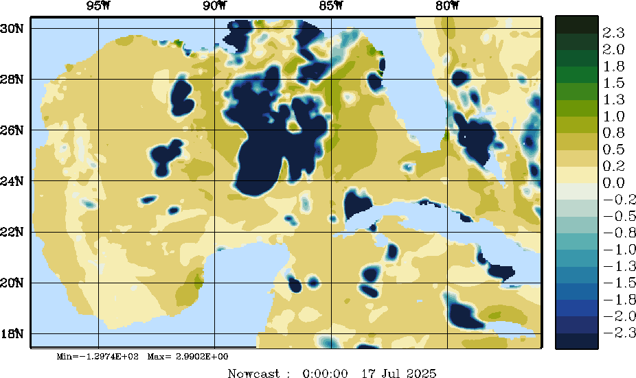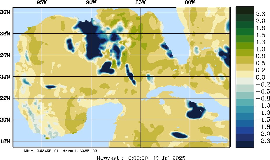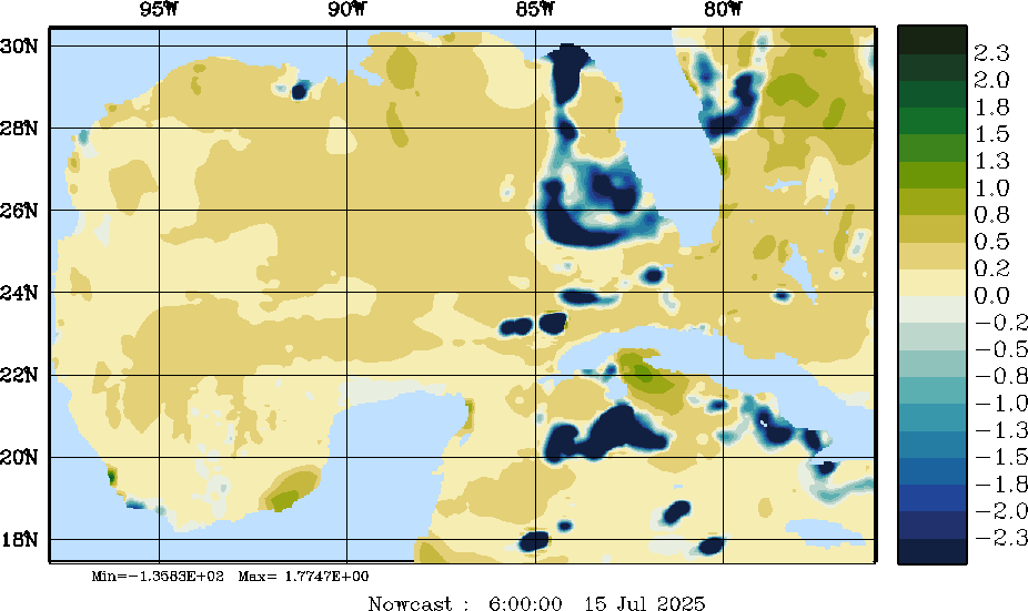 | E - P Snapshots (cm/day); processed by MSEAS from merged NCEP fields |
