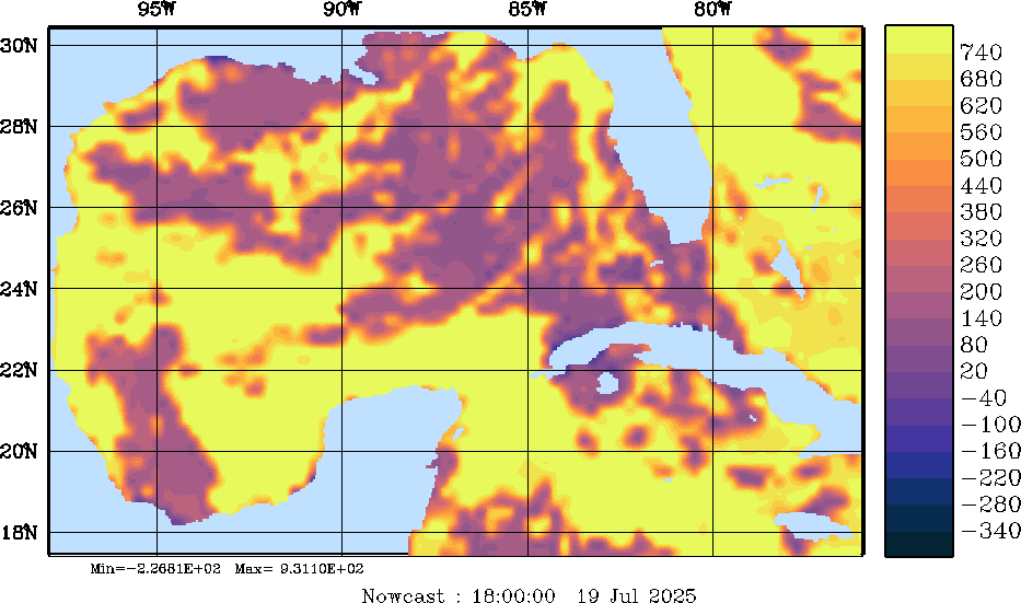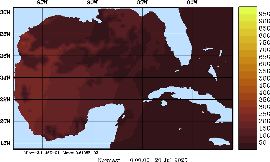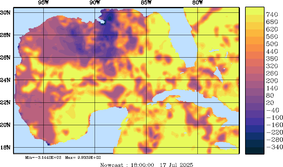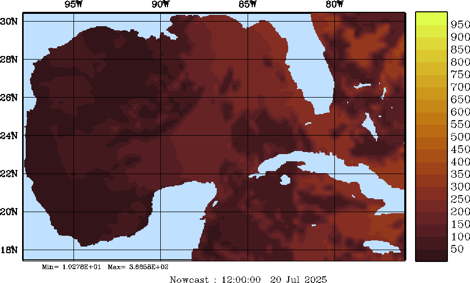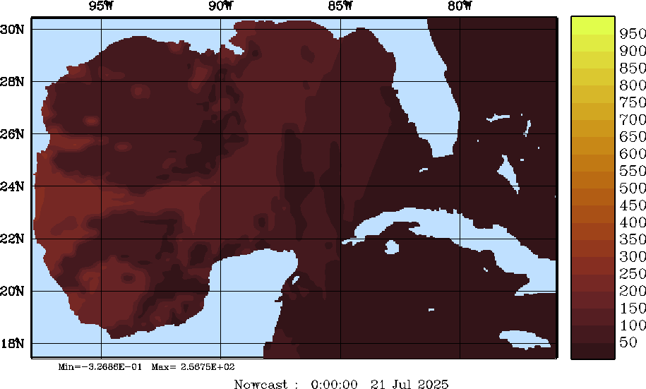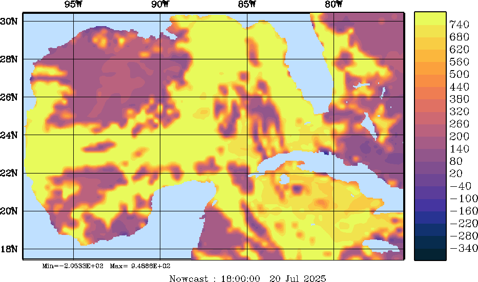 | SW Radiation Snapshots (W/m2); processed by MSEAS from merged NCEP fields |