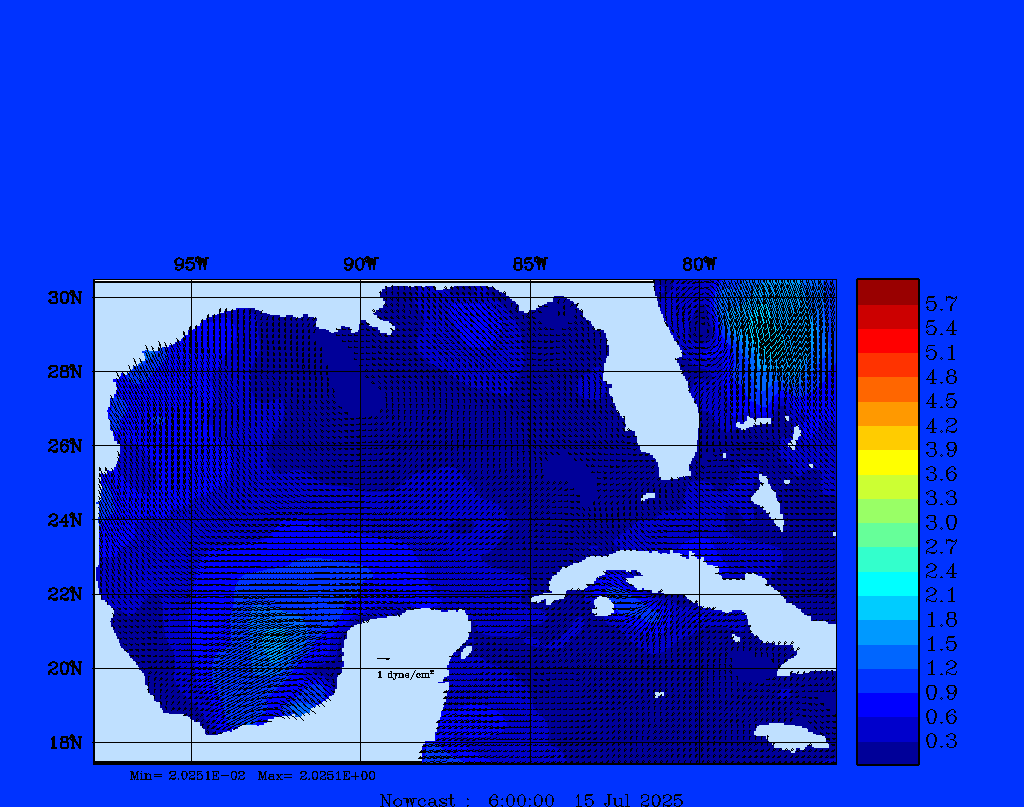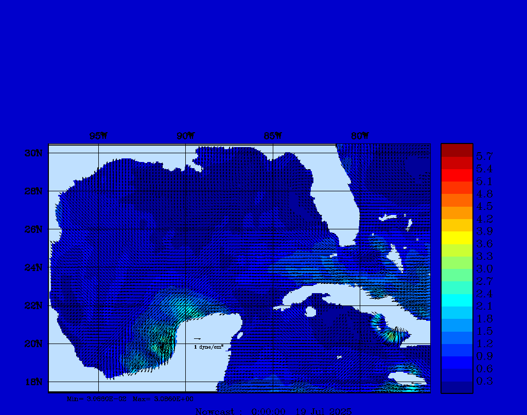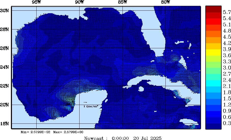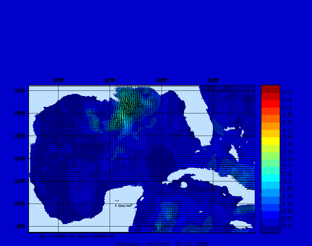 | Wind Stress Snapshots (dynes/cm2); processed by MSEAS from merged NCEP fields |