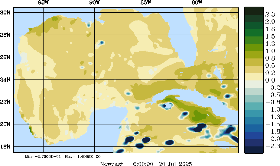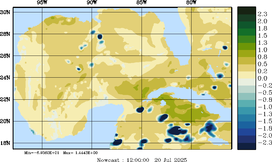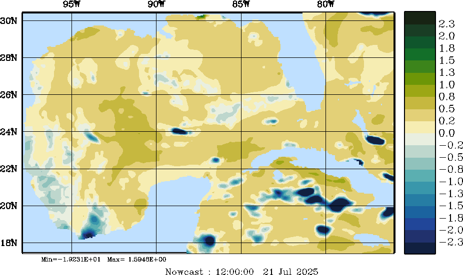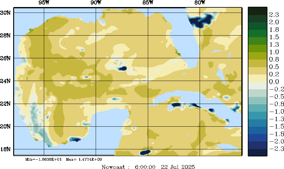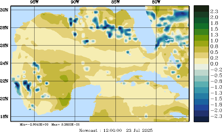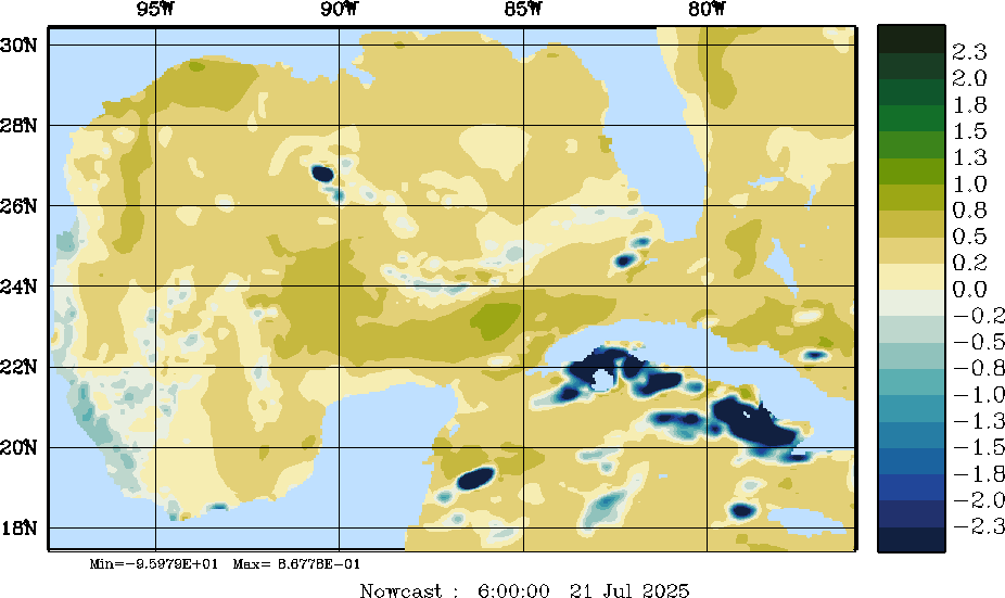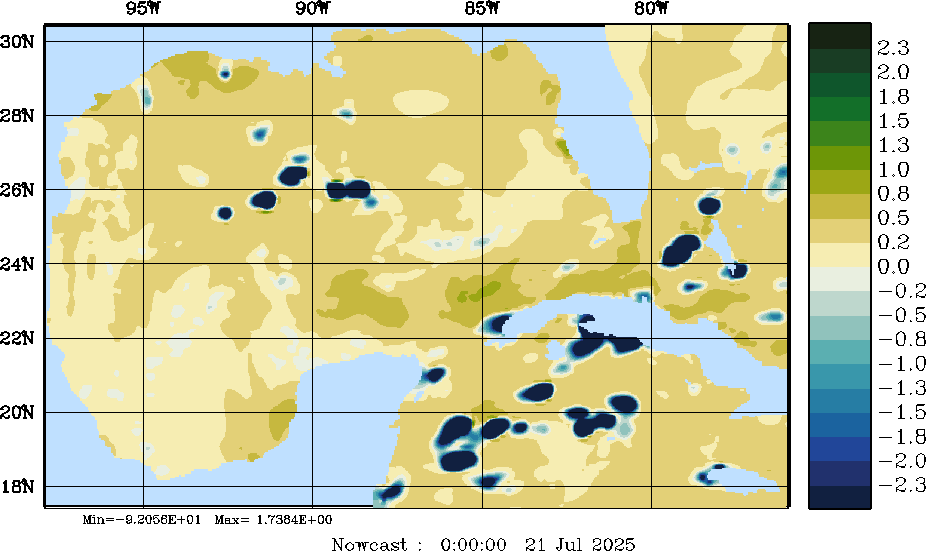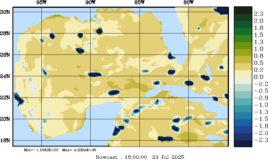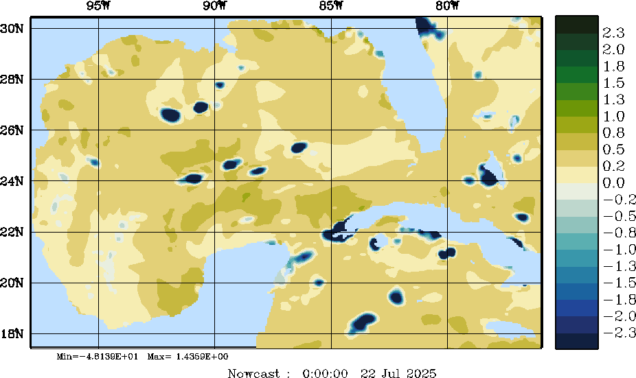 E - P Snapshots (cm/day); processed by MSEAS from merged NCEP fields |