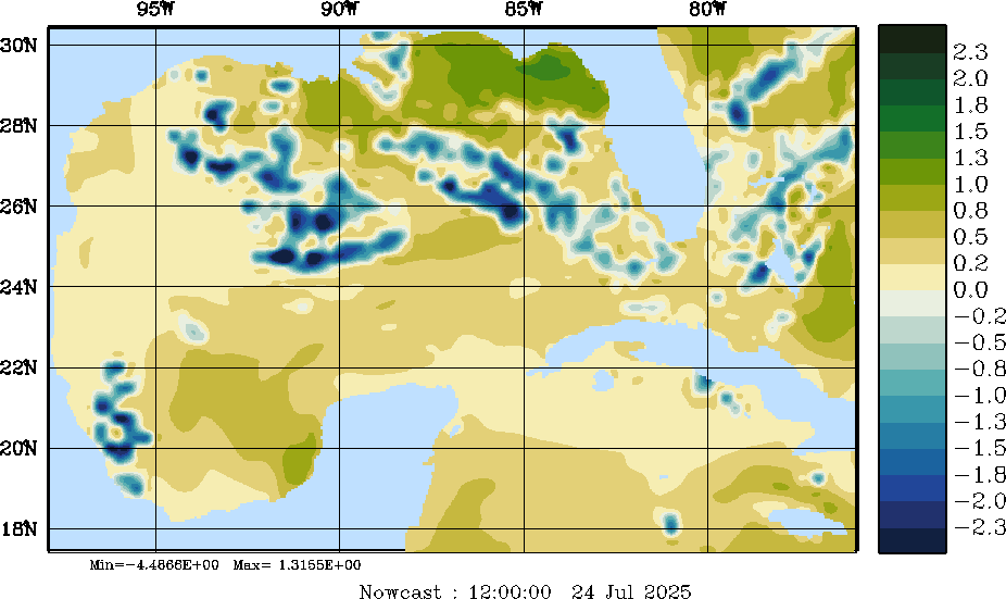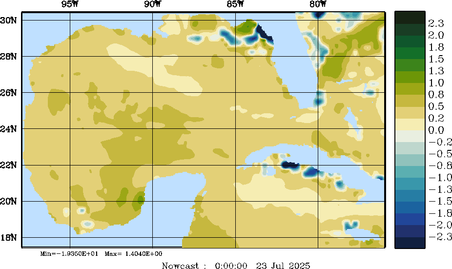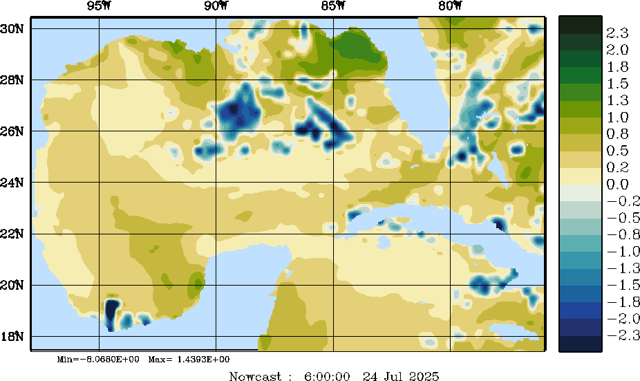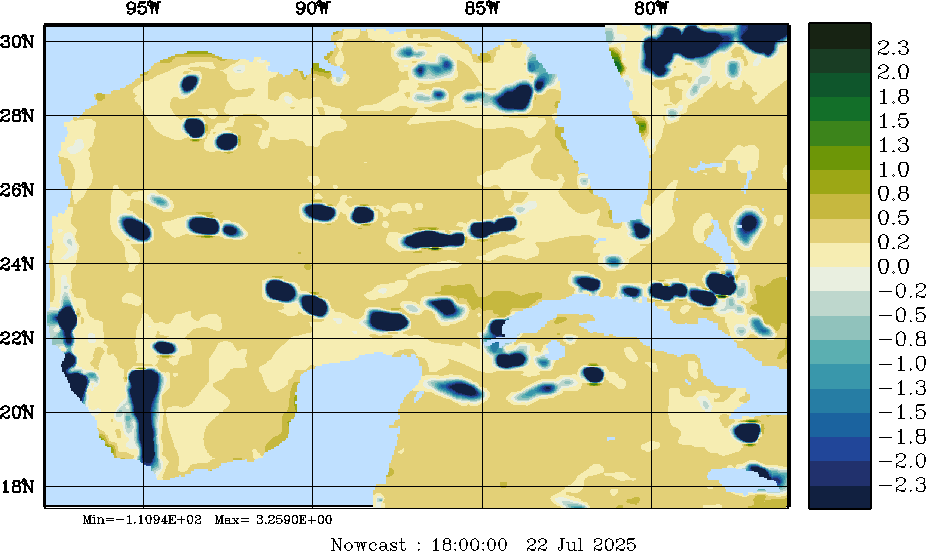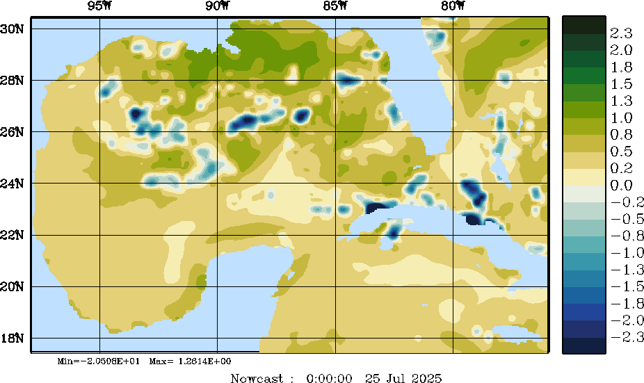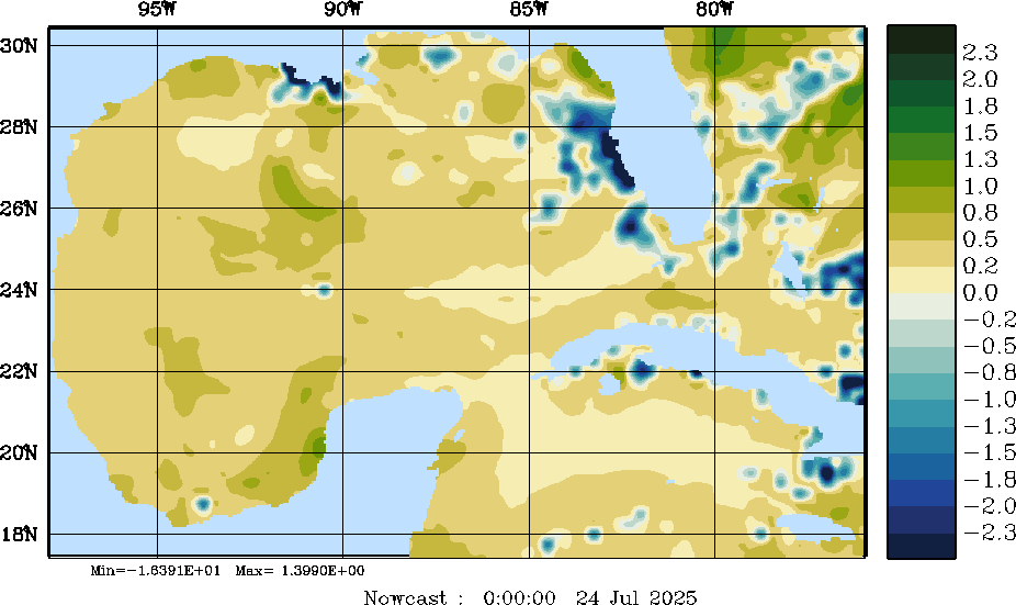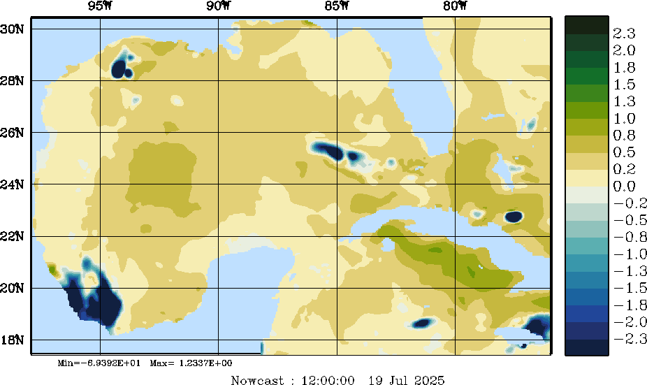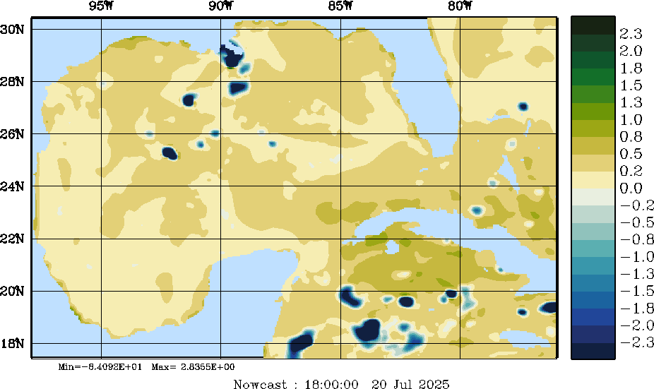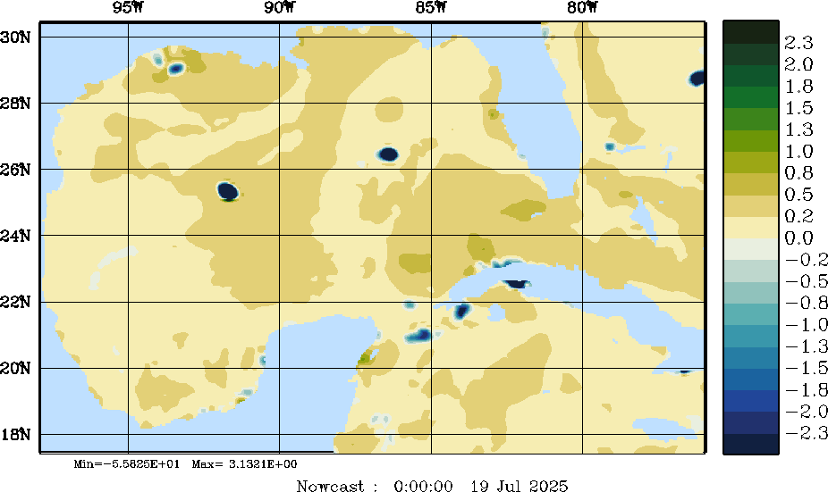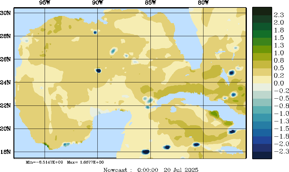 E - P Snapshots (cm/day); processed by MSEAS from merged NCEP fields |