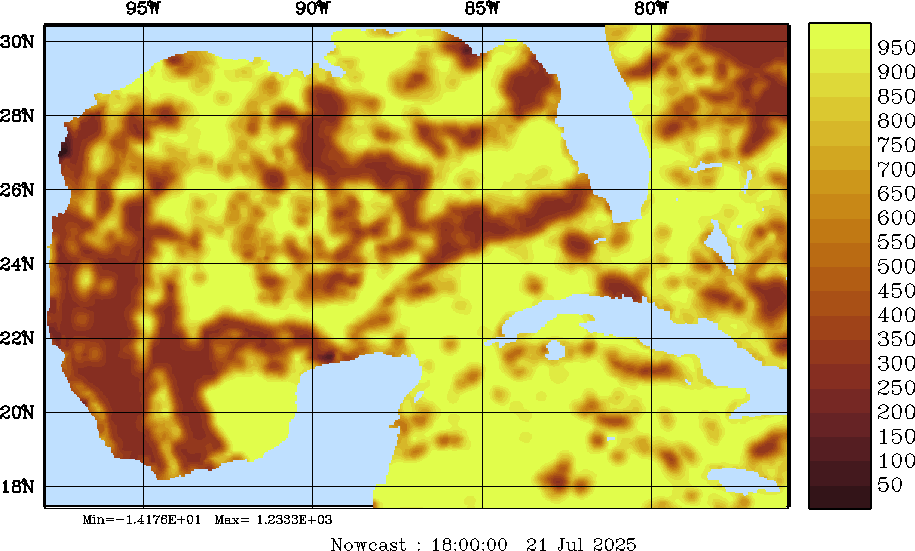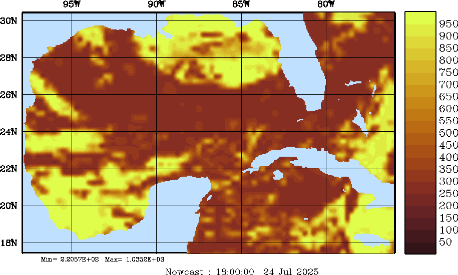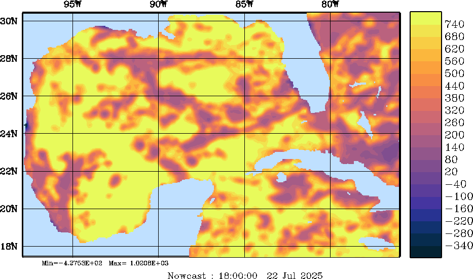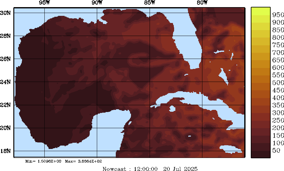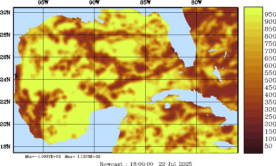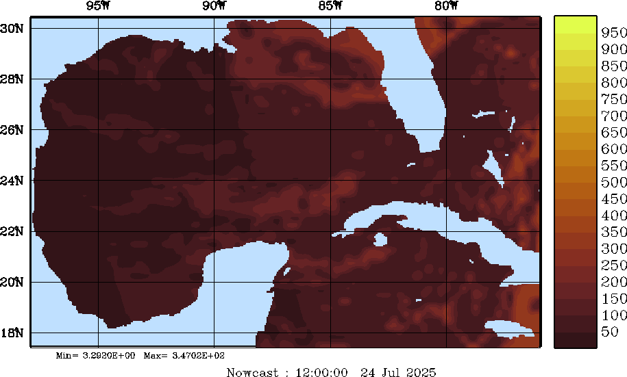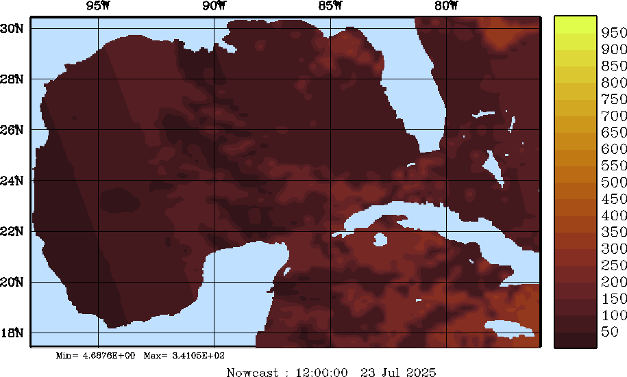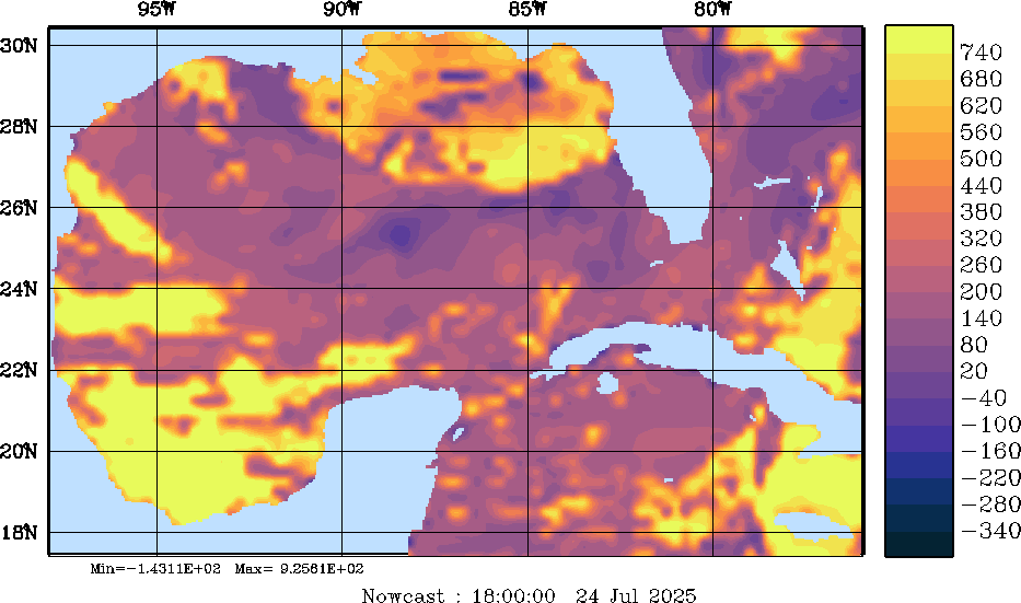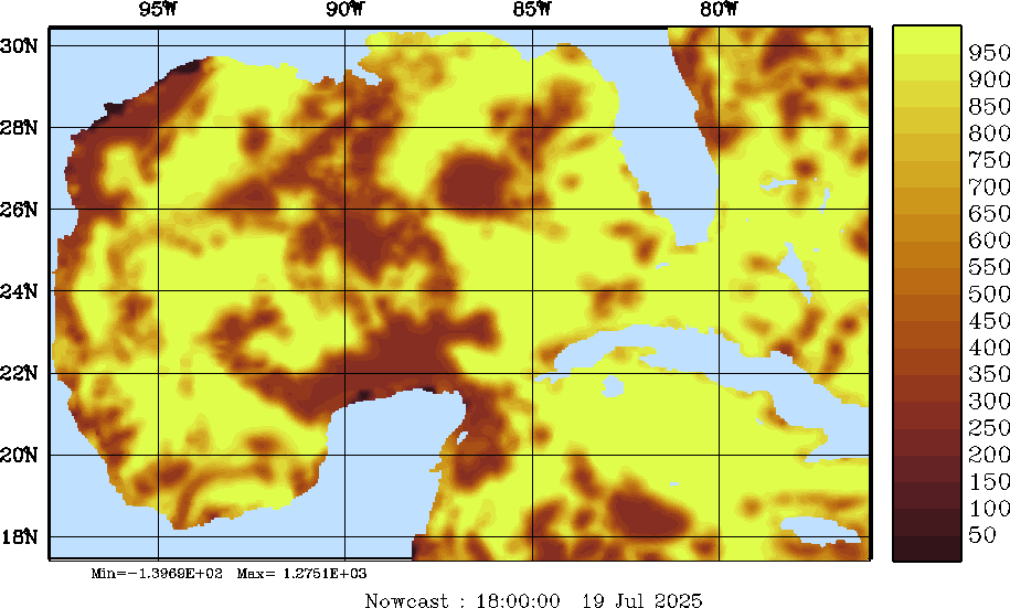 SW Radiation Snapshots (W/m2); processed by MSEAS from merged NCEP fields |