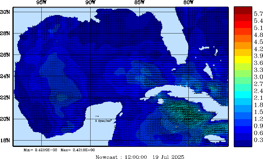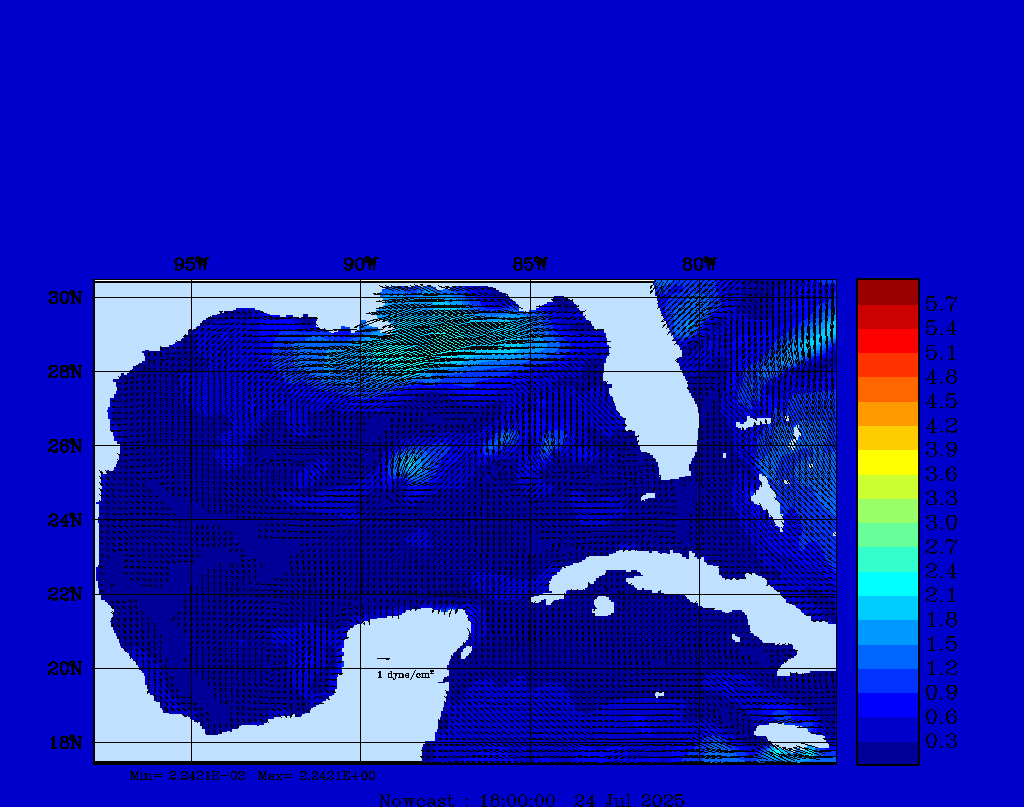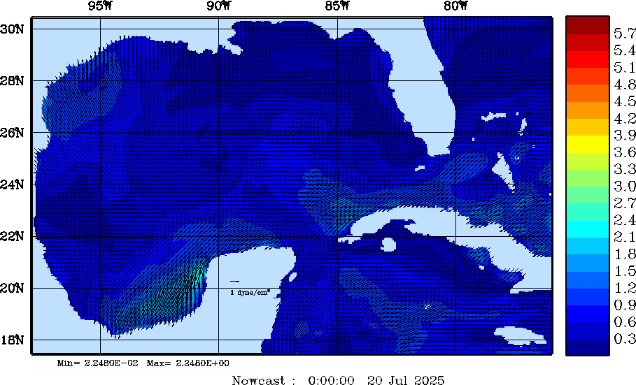 Wind Stress Snapshots (dynes/cm2); processed by MSEAS from merged NCEP fields |