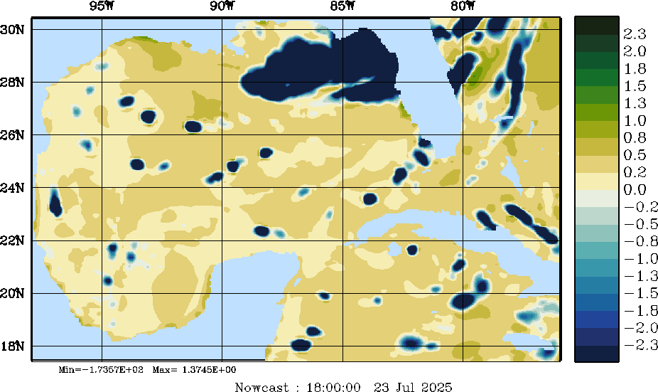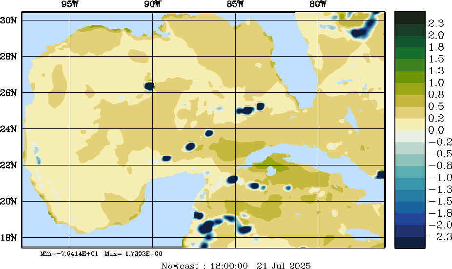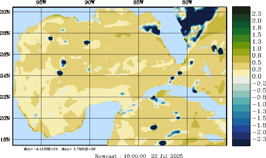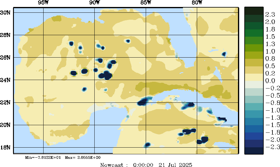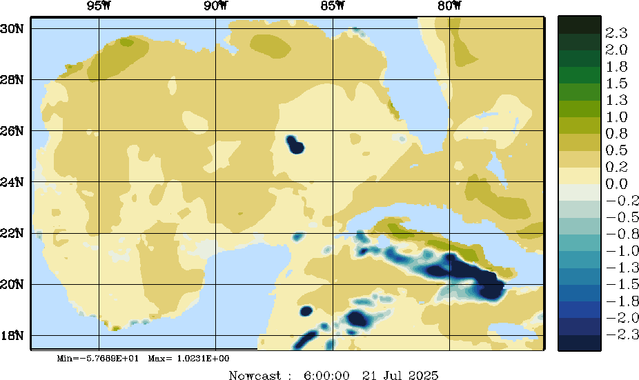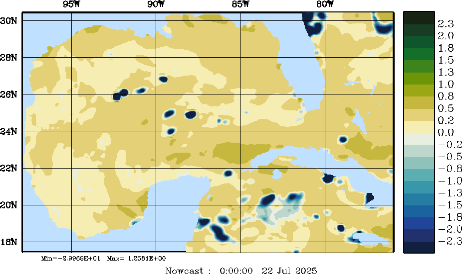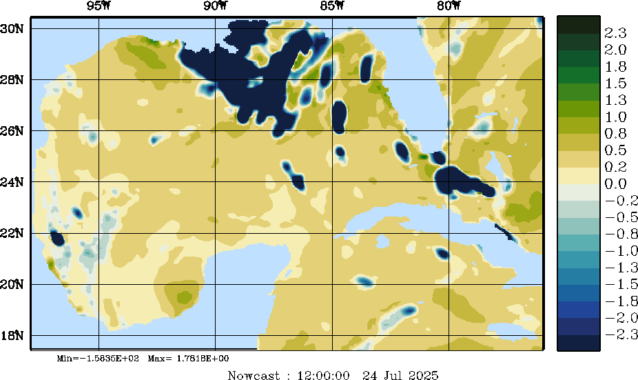 E - P Snapshots (cm/day); processed by MSEAS from merged NCEP fields |