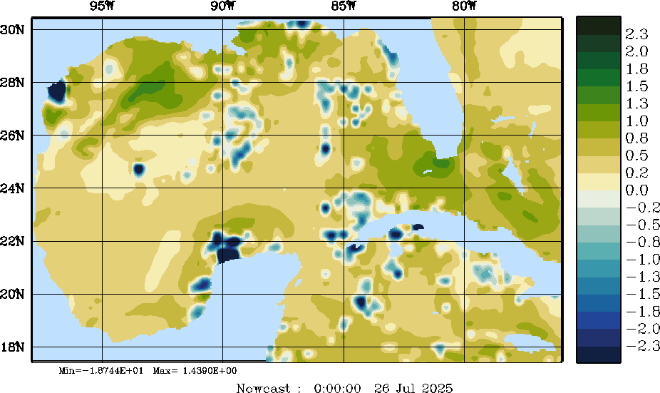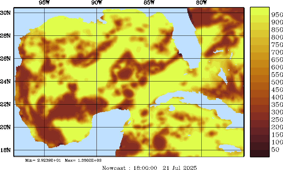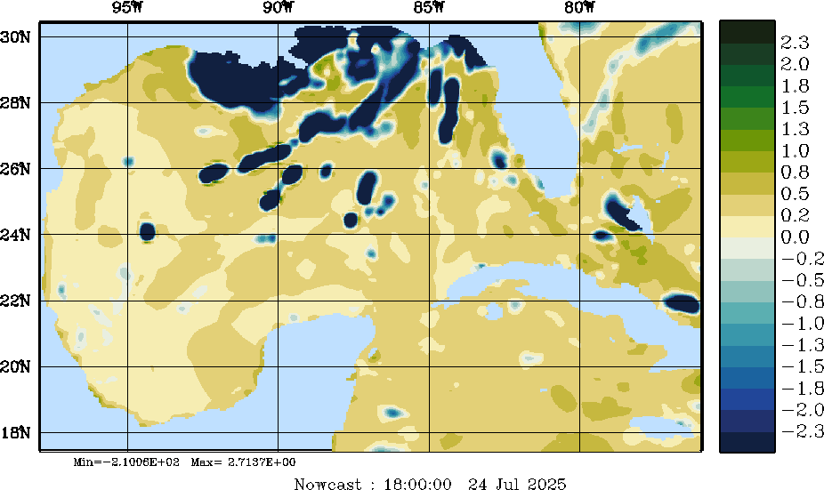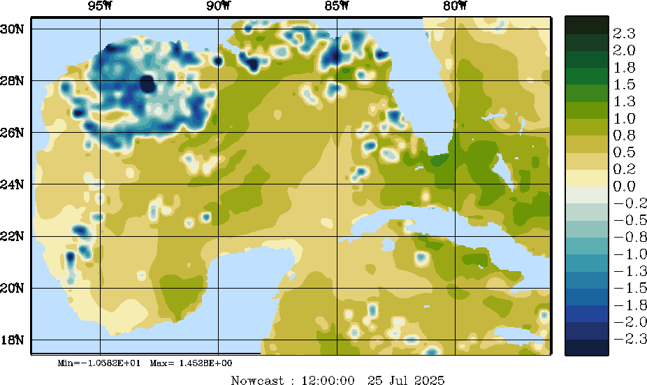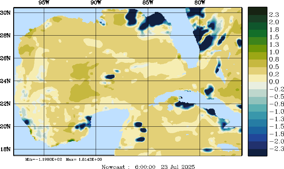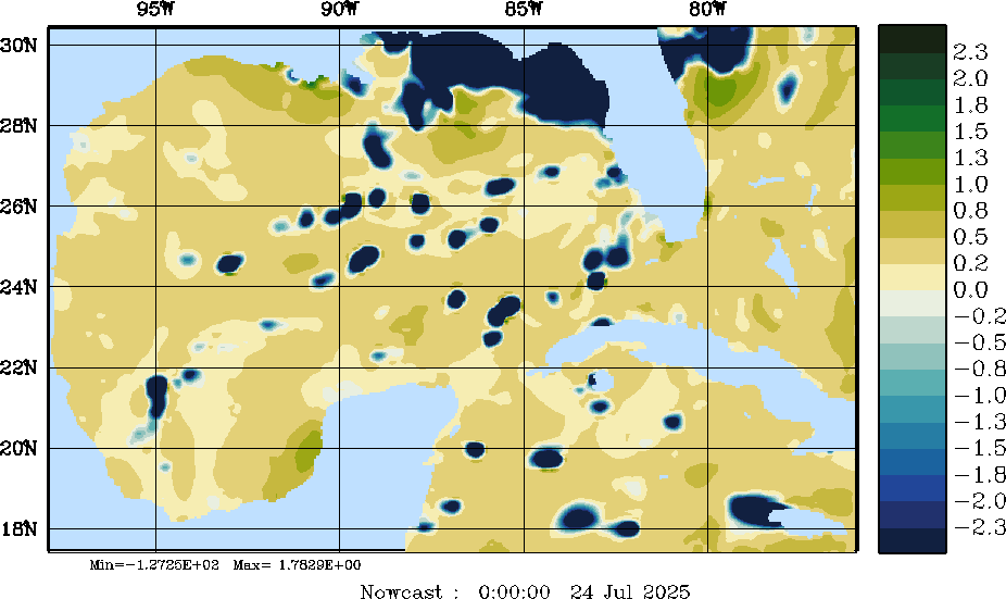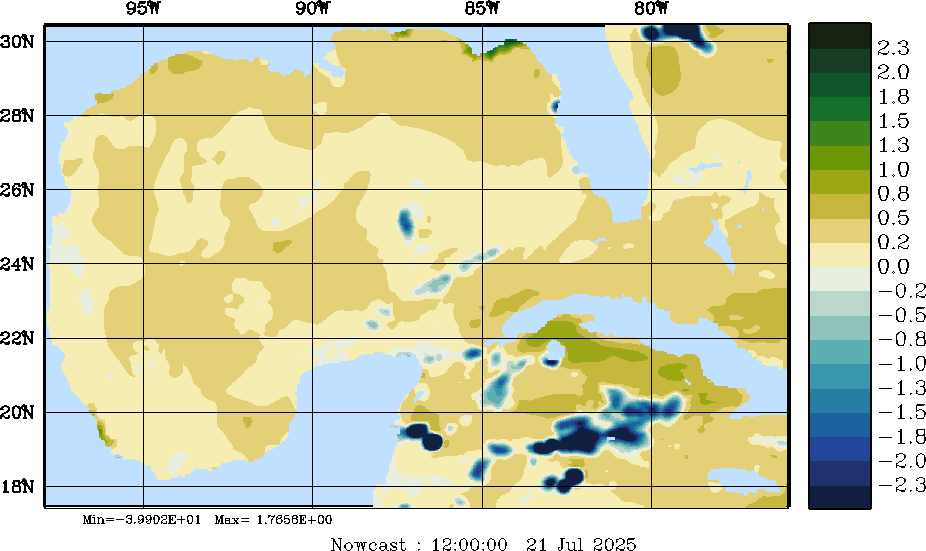 E - P Snapshots (cm/day); processed by MSEAS from merged NCEP fields |