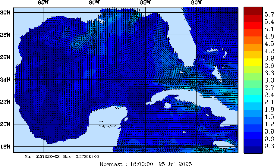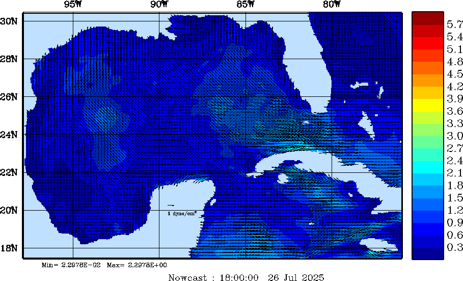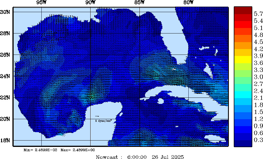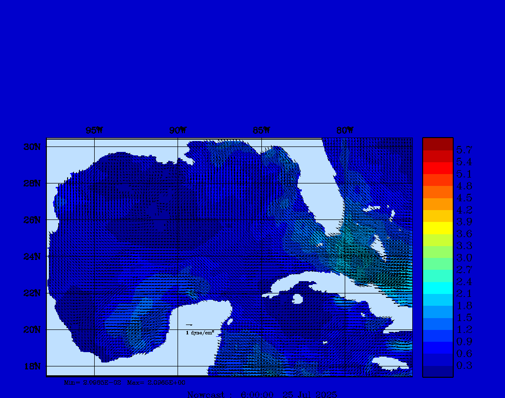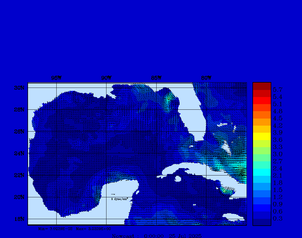 Wind Stress Snapshots (dynes/cm2); processed by MSEAS from merged NCEP fields |