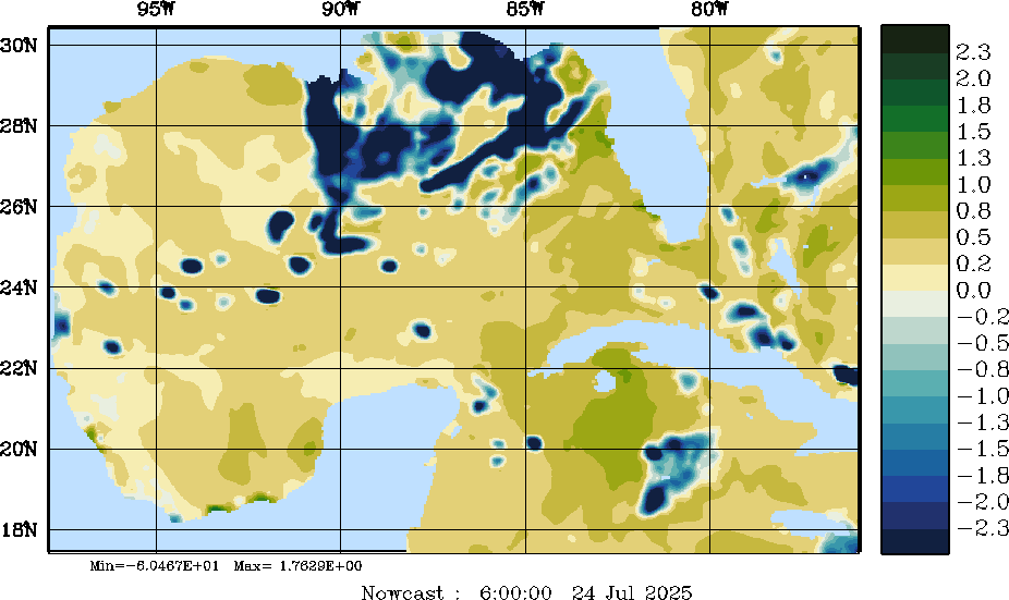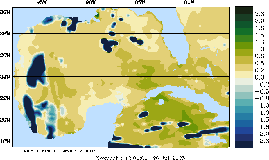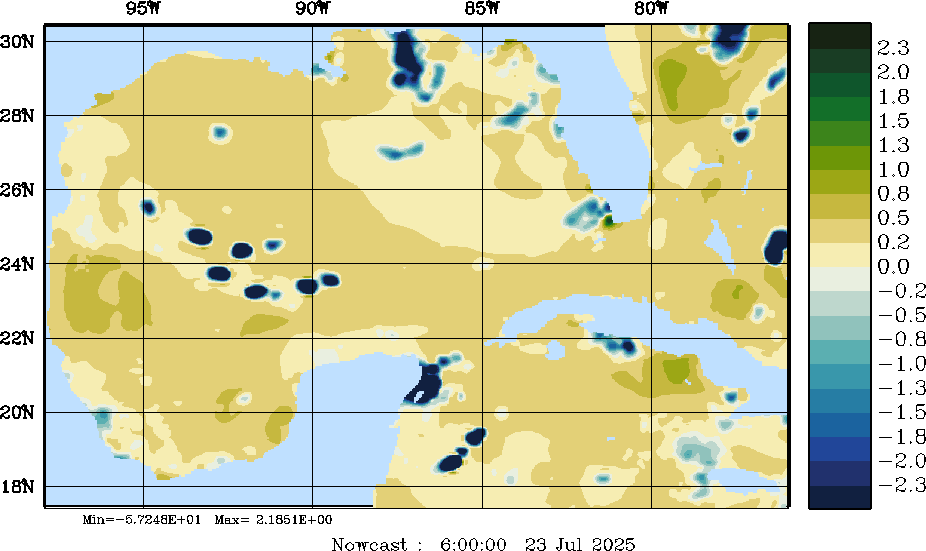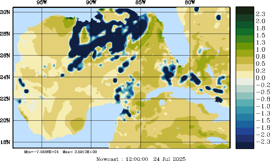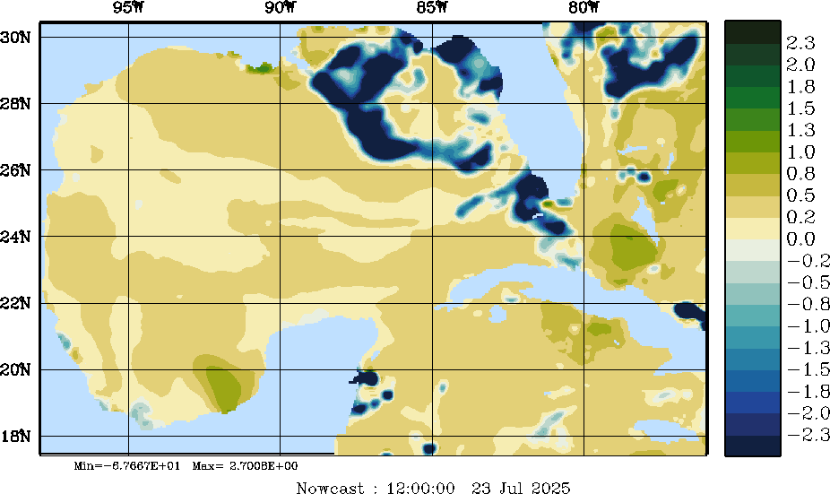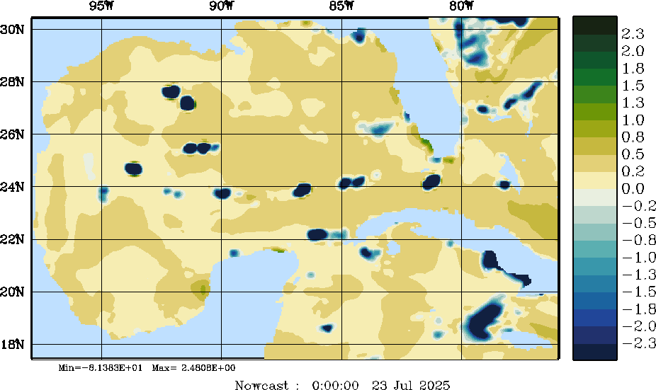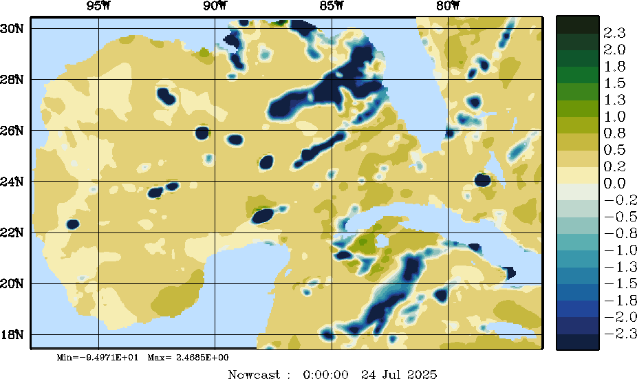 | E - P Snapshots (cm/day); processed by MSEAS from merged NCEP fields |