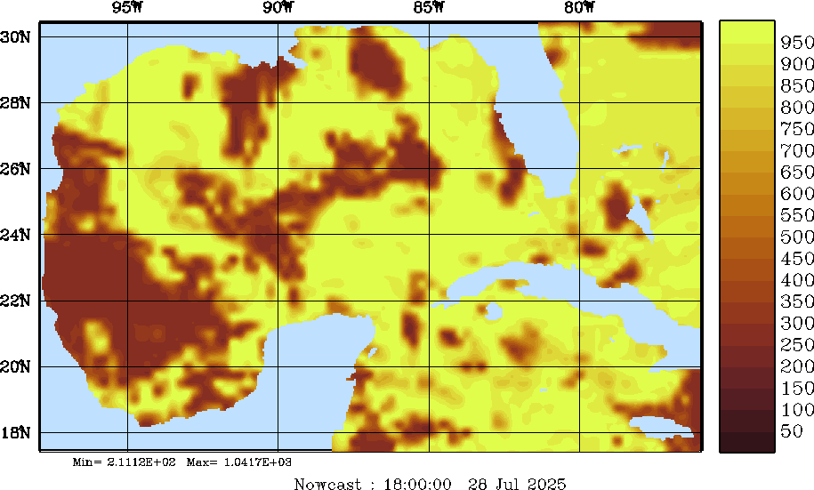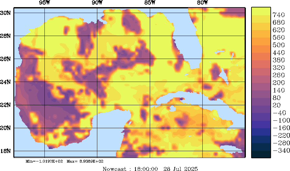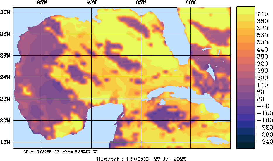| SW Radiation Snapshots (W/m2); processed by MSEAS from merged NCEP fields |