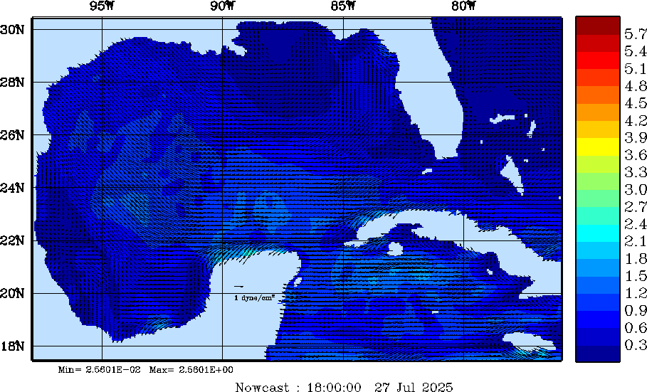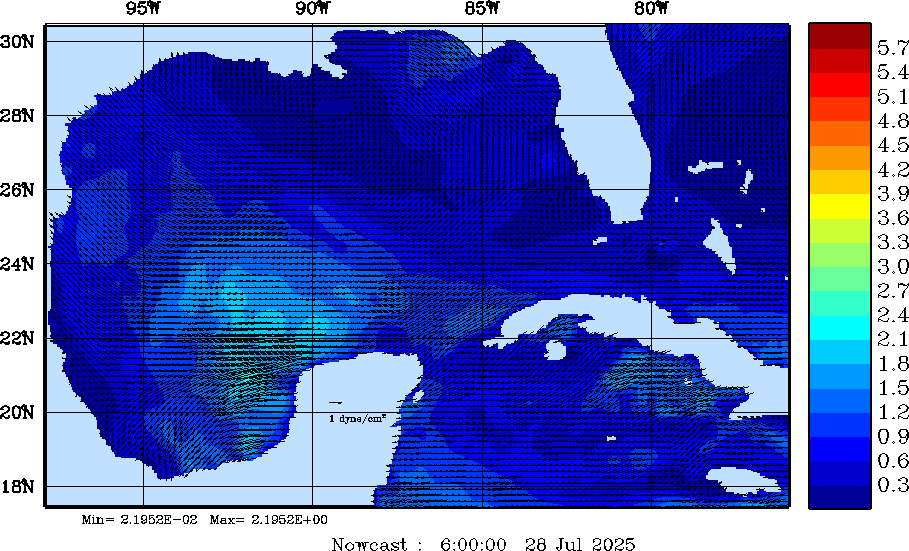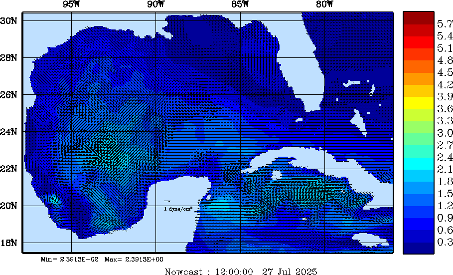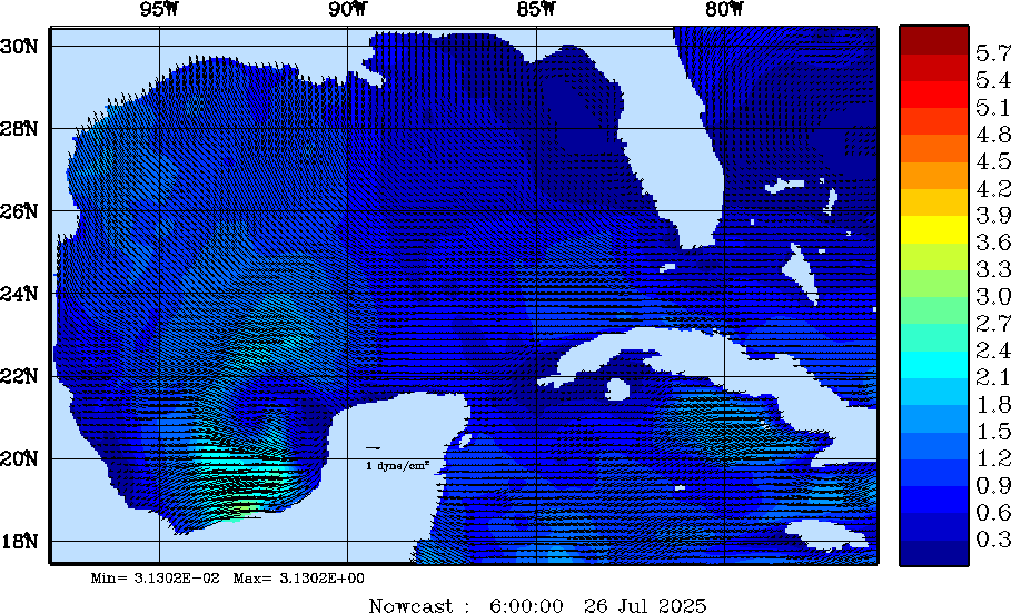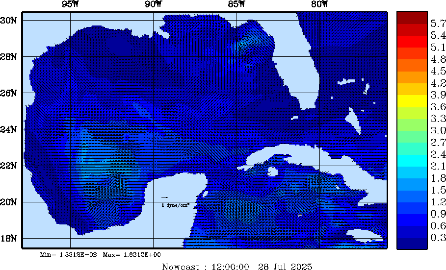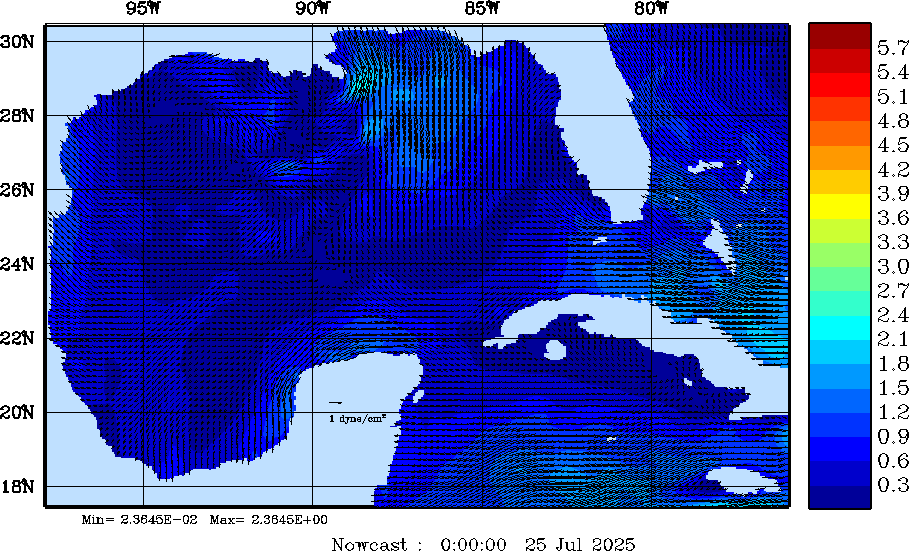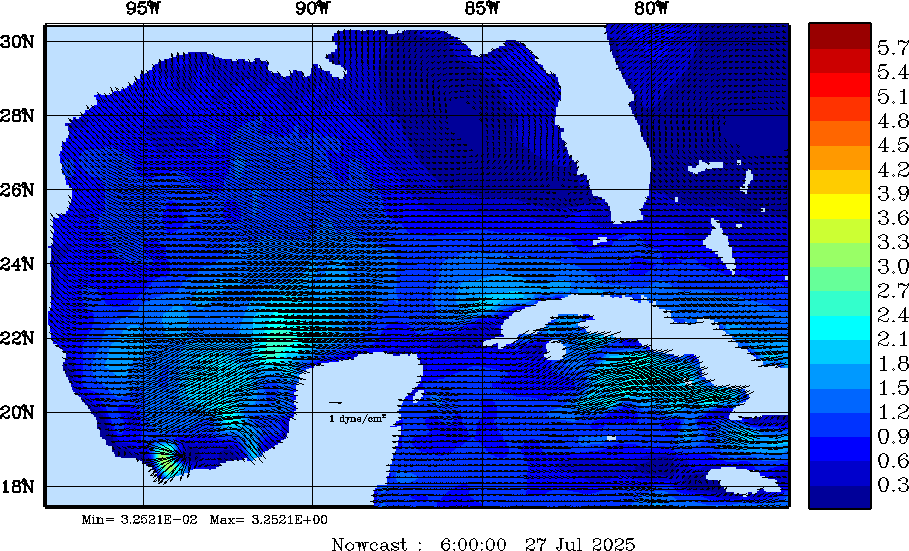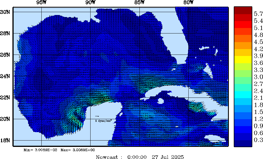 | Wind Stress Snapshots (dynes/cm2); processed by MSEAS from merged NCEP fields |